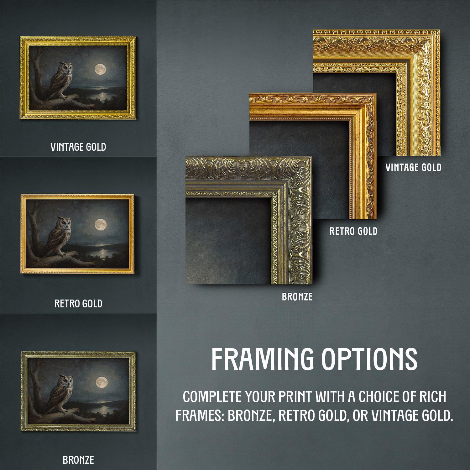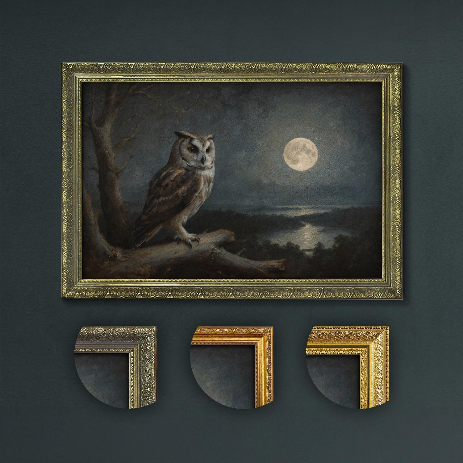 Discover the mystical owl under moonlight print that brings dark academia and gothic owl decor to life with enchanting nocturnal bird art and vintage style charm.