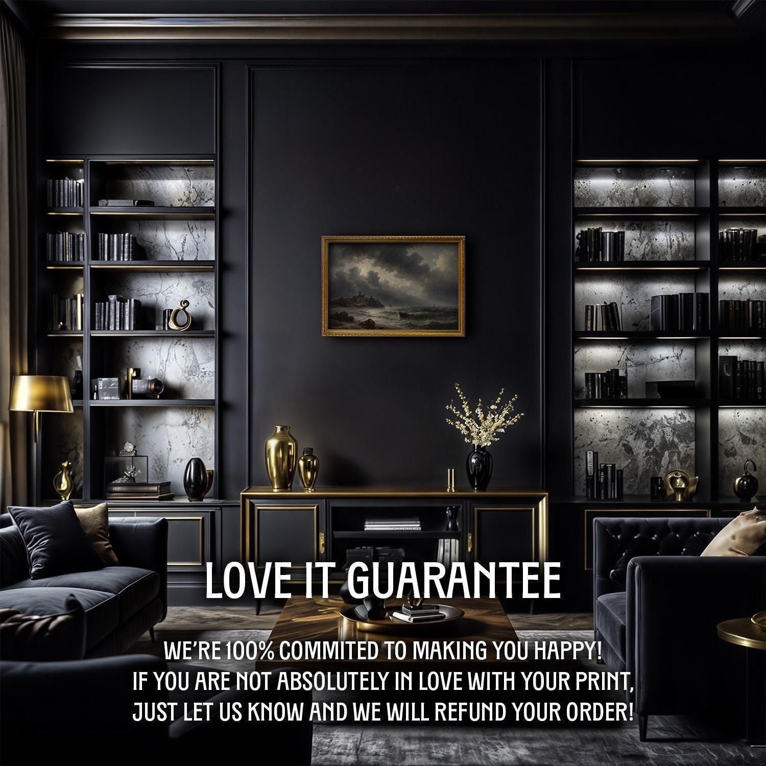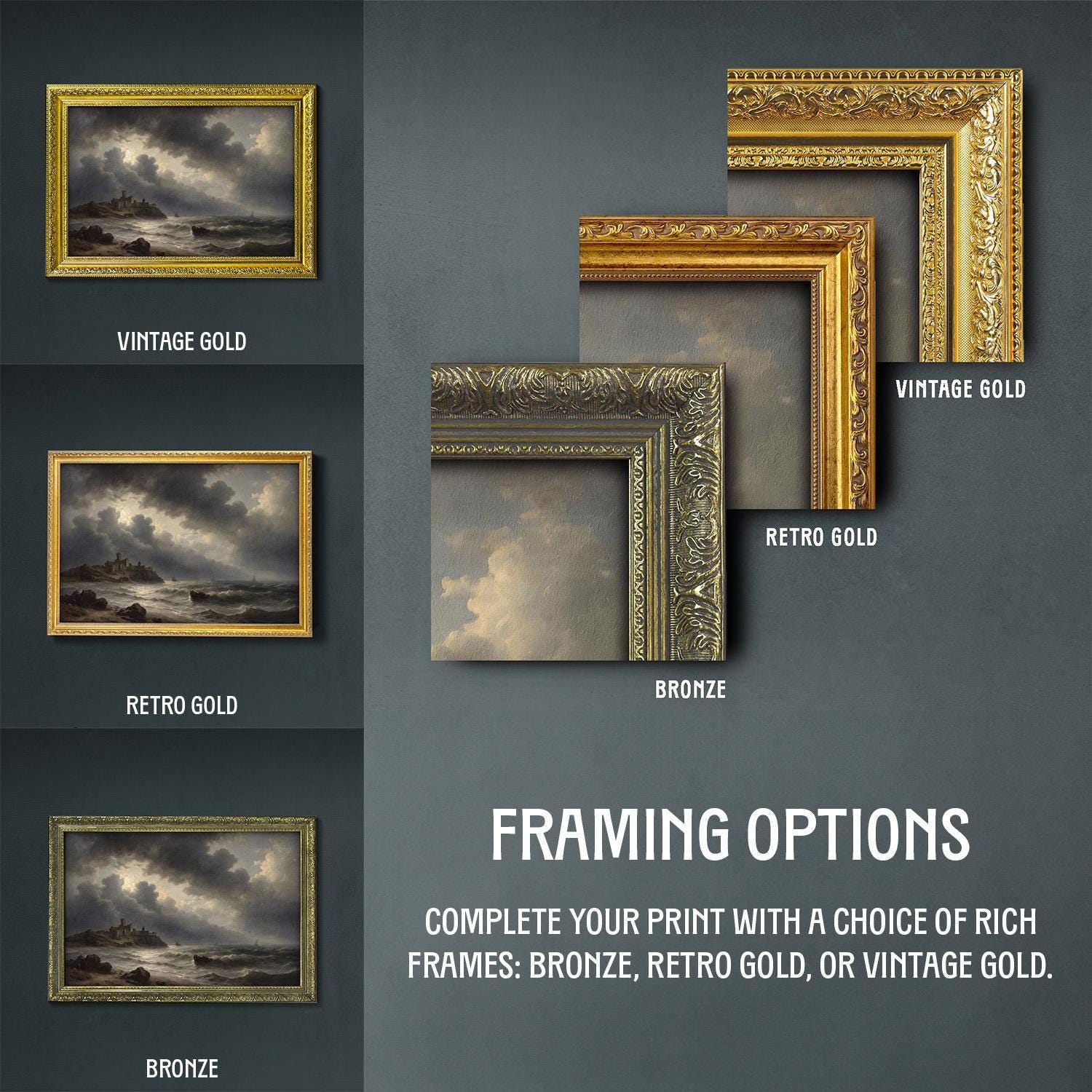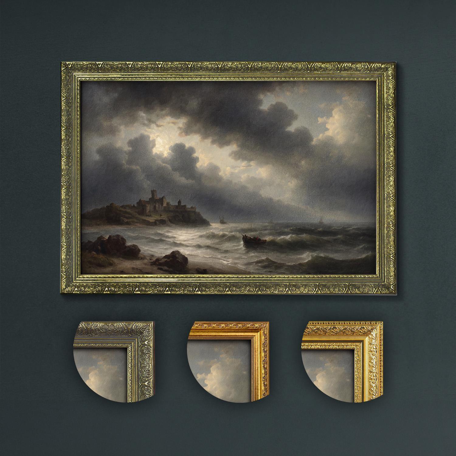 Immerse yourself in the stormy seaside castle art print, where dark academia decor meets a dramatic coastal landscape with rugged waves and a vintage nautical scene.