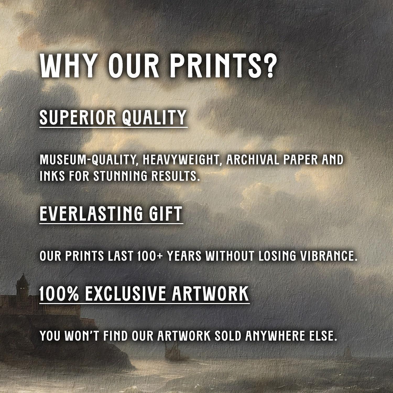 Our art prints are produced on museum-quality paper using archival inks to guarantee they last a lifetime without fading or losing color.