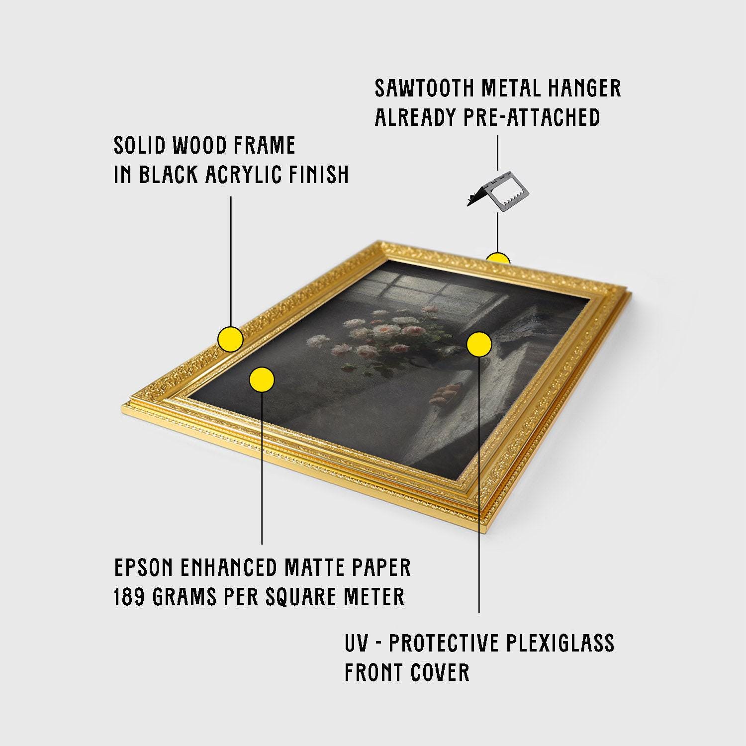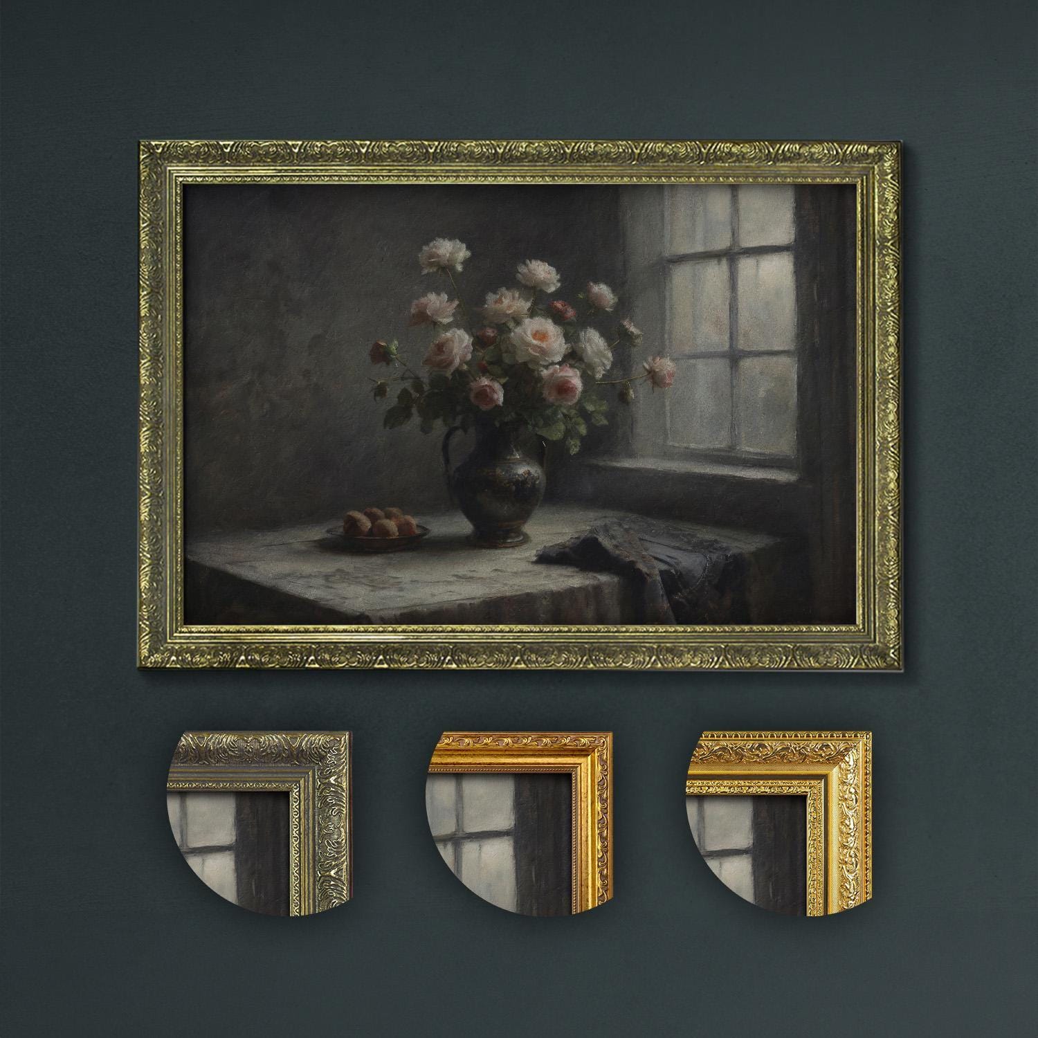 This exquisite vintage style roses art print captures a moody rose arrangement in stunning detail, perfect for lovers of classic rose art and romantic wall decor. Printed with museum-quality inks on luxurious archival paper, this still life roses piece ensures lasting vibrancy and elegance.