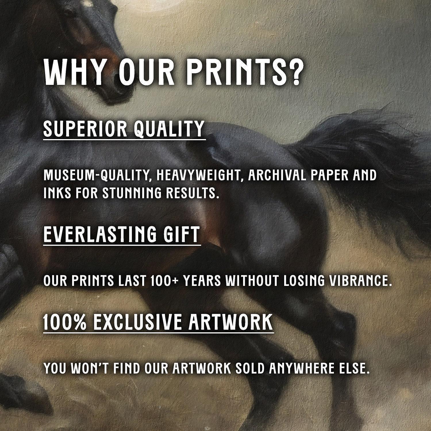 Our art prints are produced on museum-quality paper using archival inks to guarantee they last a lifetime without fading or losing color.