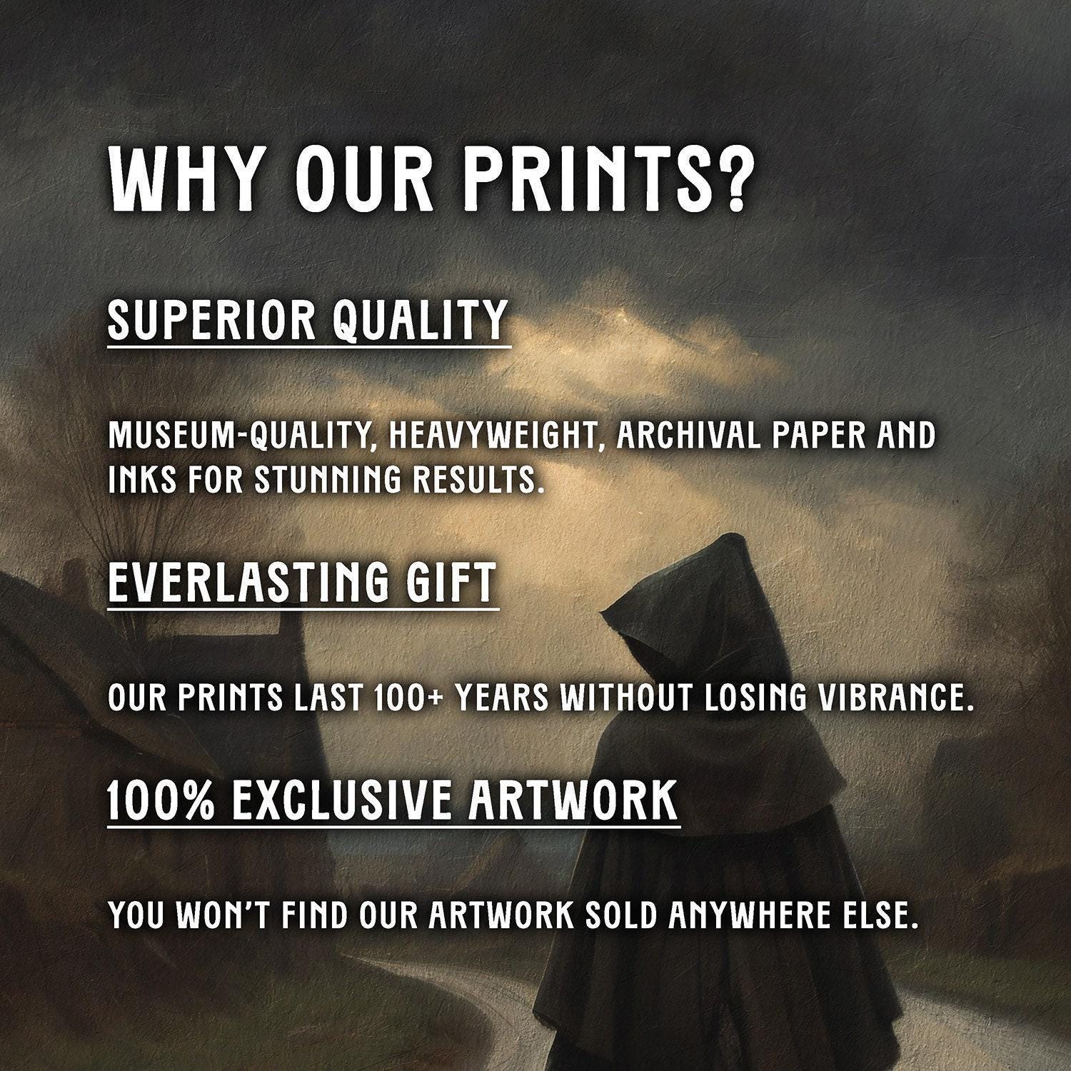 Our art prints are produced on museum-quality paper using archival inks to guarantee they last a lifetime without fading or losing color.