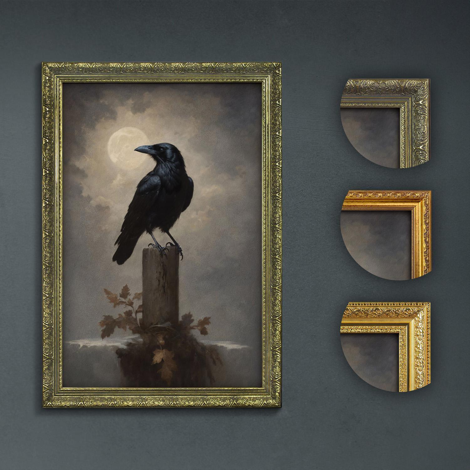 Immerse yourself in moody dark wall art that beautifully captures a raven and moon, perfect for dark academia decor and aesthetic witchy vibes.