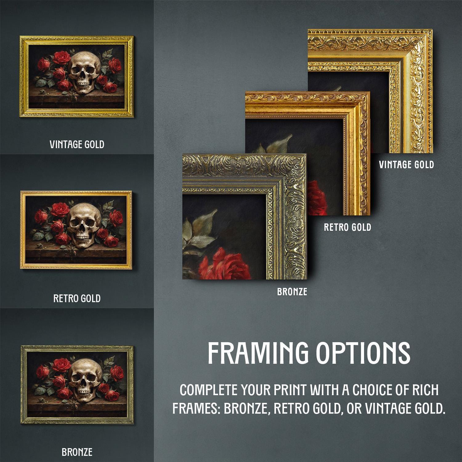 Discover the haunting beauty of Victorian skull and roses art, a perfect blend of gothic wall decor and romantic memento mori for dark academia lovers.