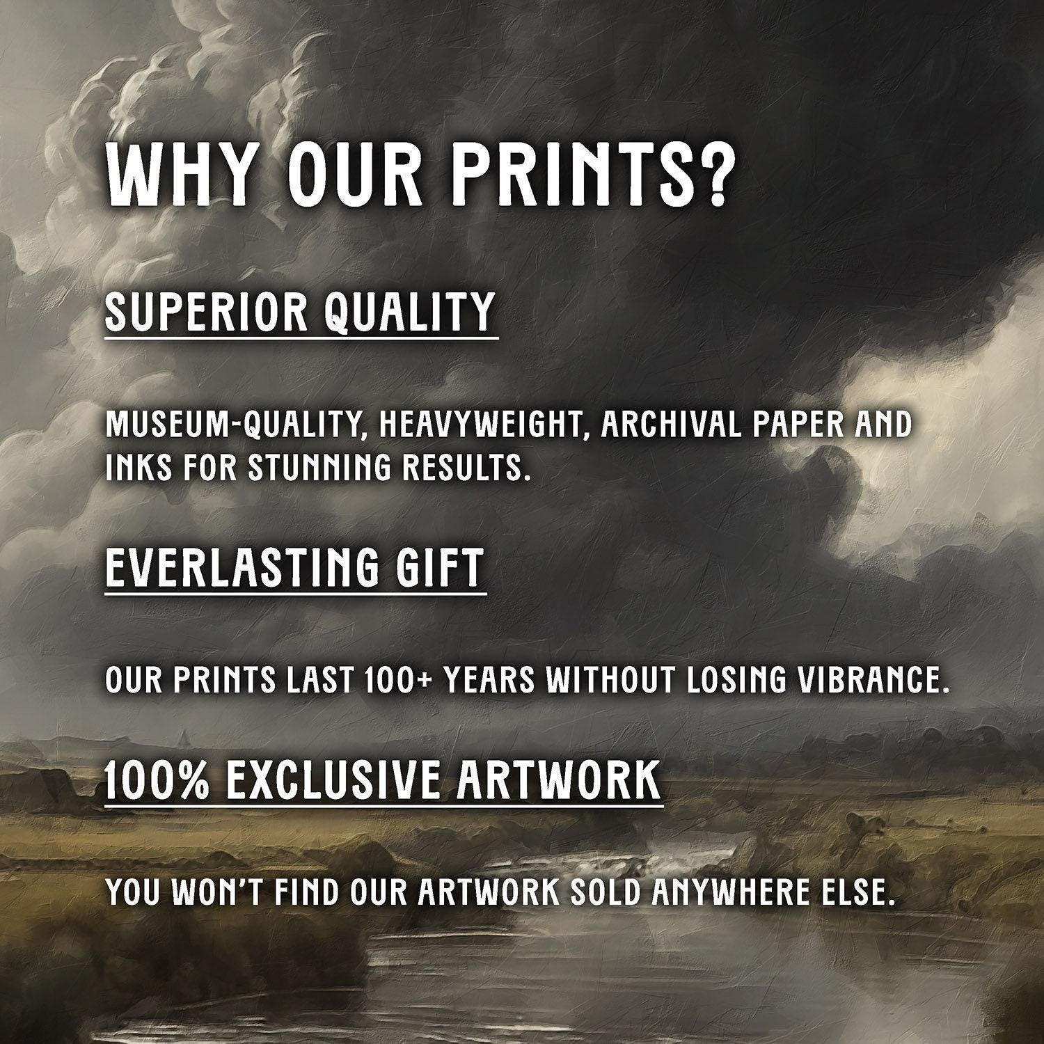 Our art prints are produced on museum-quality paper using archival inks to guarantee they last a lifetime without fading or losing color.