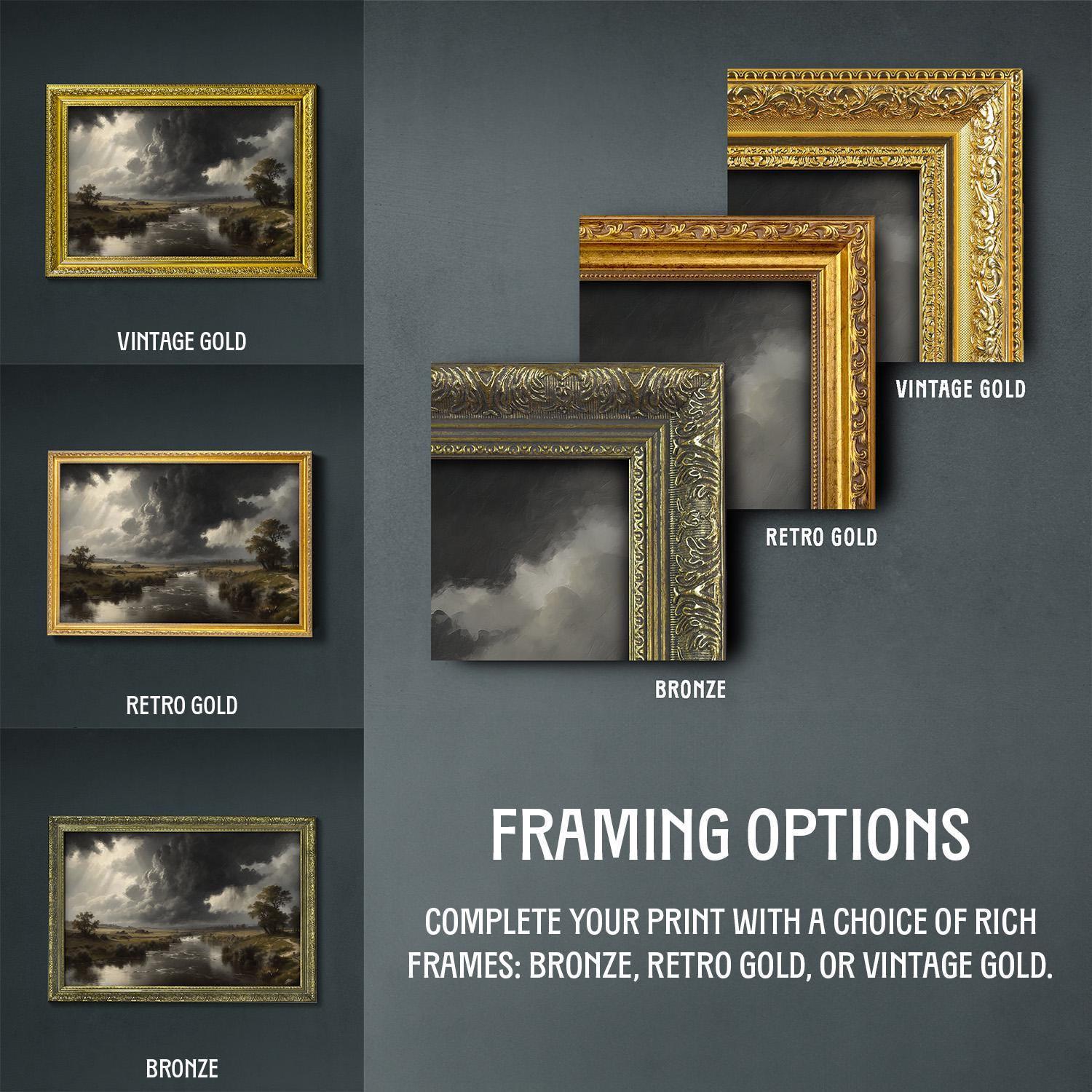 β’ Choice of bronze, retro gold, and vintage gold frame.