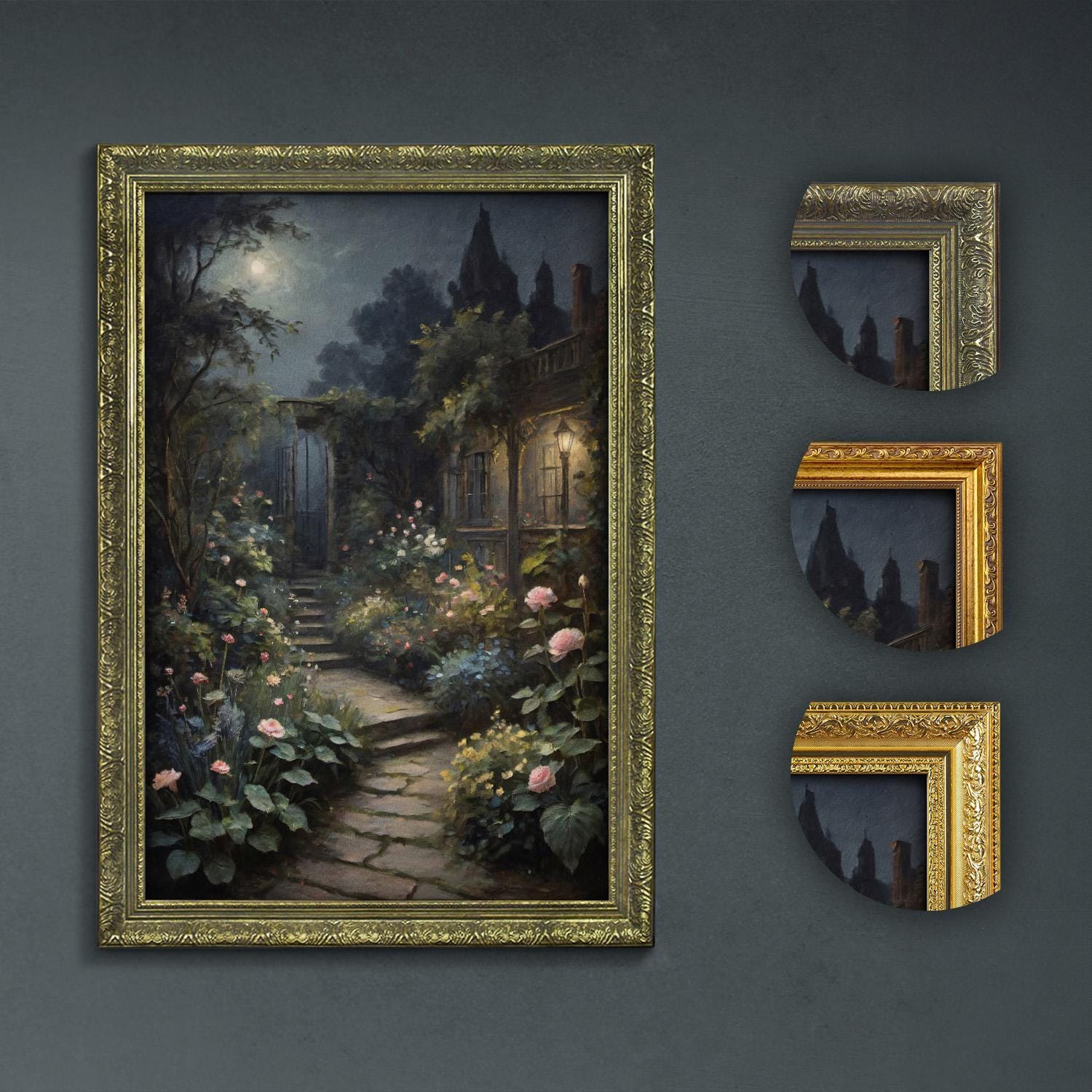 Step into a secret night garden with this moody dark wall art, perfect for dark academia decor and witchy vibes that inspire mystery and elegance.