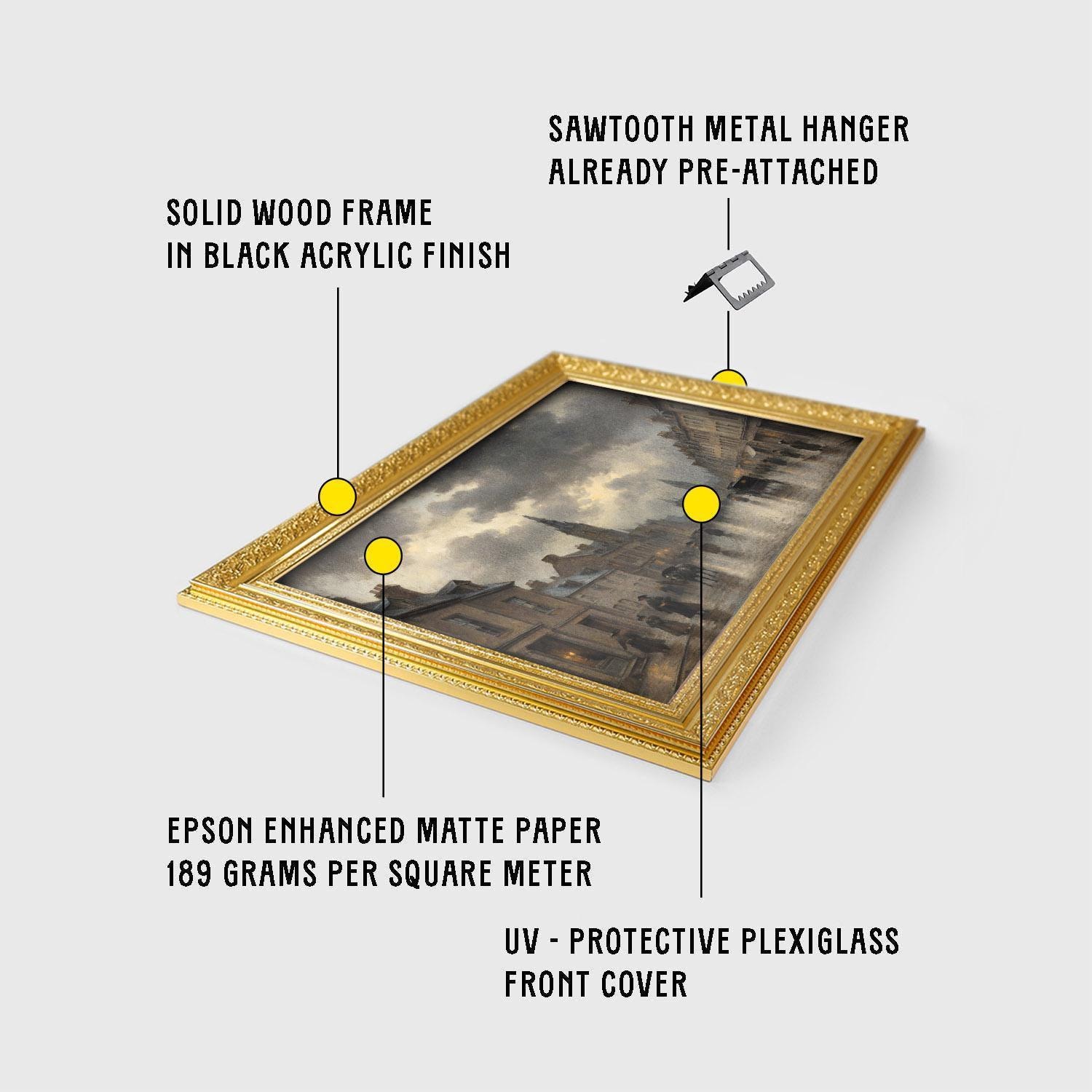 Transform your space with this captivating vintage town print that perfectly captures the moody ambiance of historic English buildings and antique city prints. Ideal for lovers of old town aesthetic and atmospheric townscapes, this artwork brings timeless elegance and nostalgic beauty to any room.