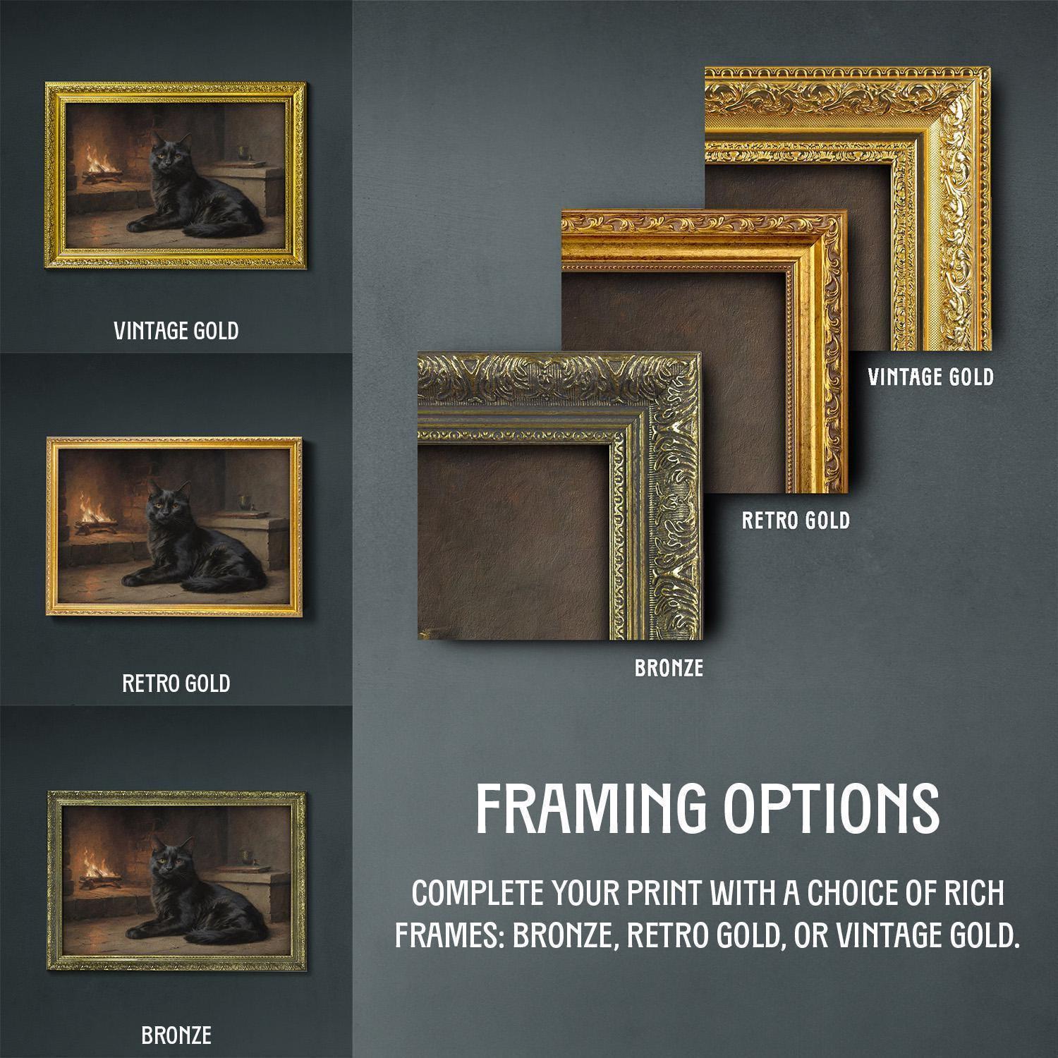 β’ Choice of bronze, retro gold, and vintage gold frame.