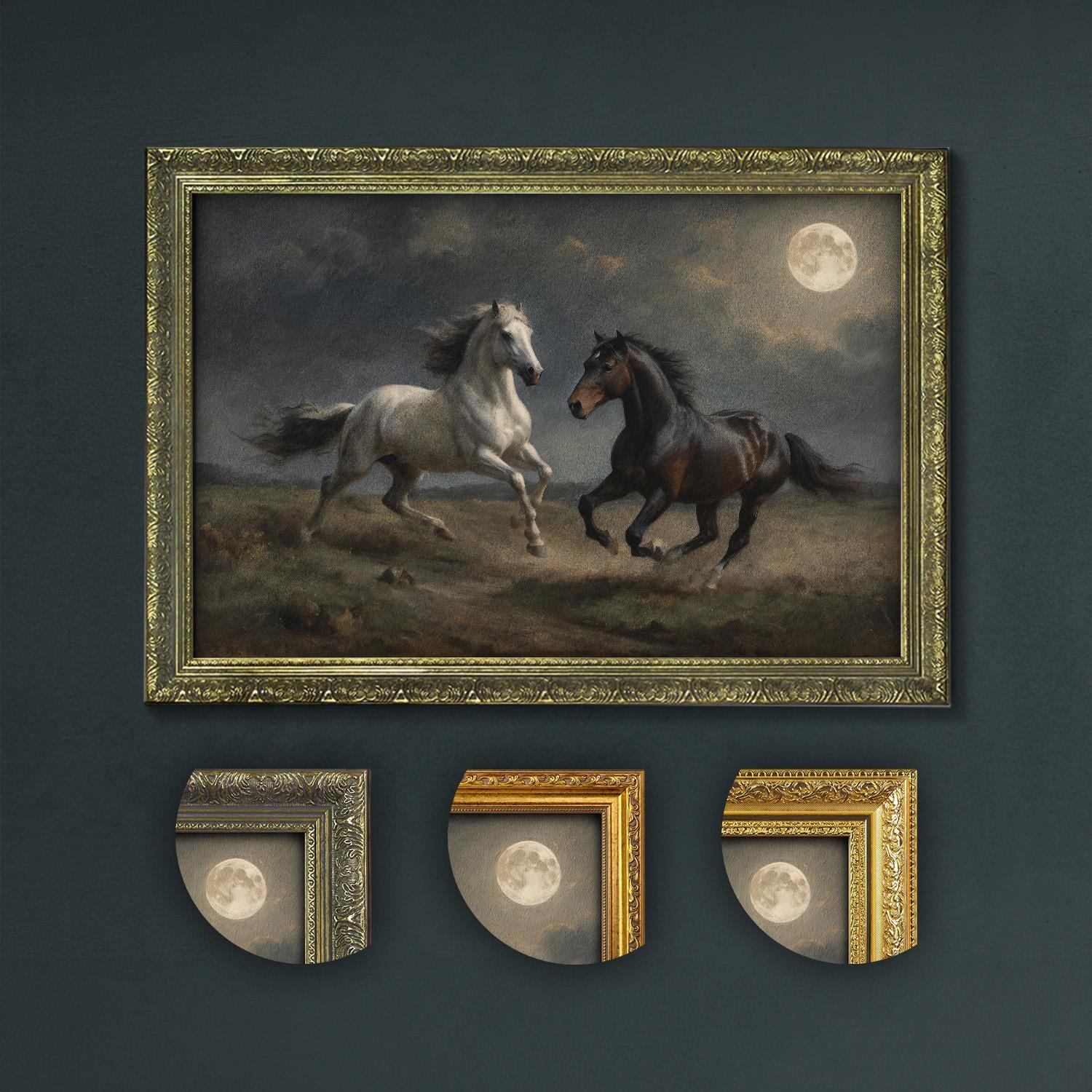 Experience the captivating allure of this mystical horses art, designed to bring an enchanting night scene into your home. Whether you're drawn to gothic style art or dark academia artful collections, this piece adds a unique touch of elegance and freedom.