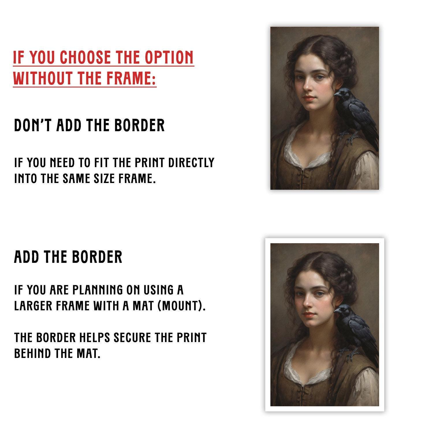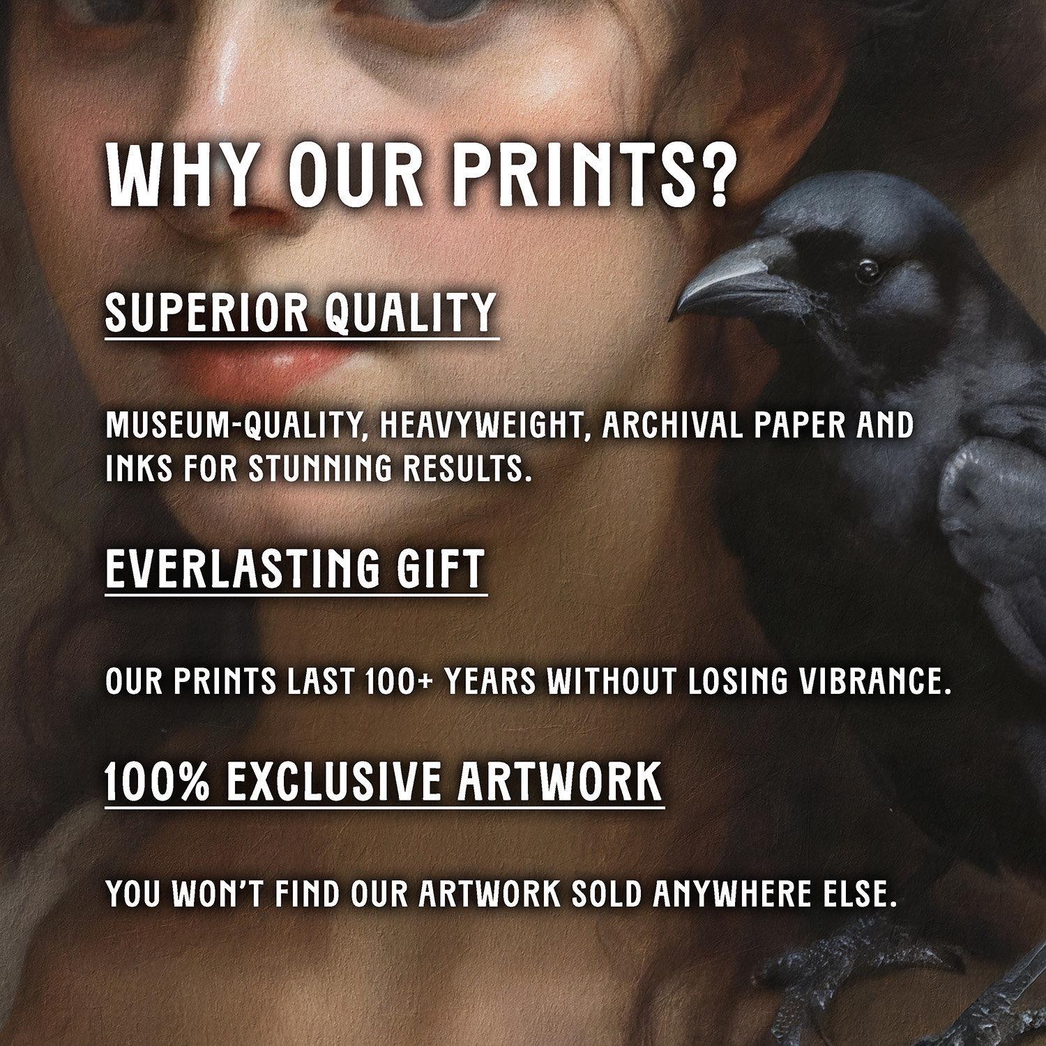 Discover the captivating charm of this Renaissance inspired woman and black crow portrait, a perfect blend of gothic wall decor and vintage elegance for your moody space.