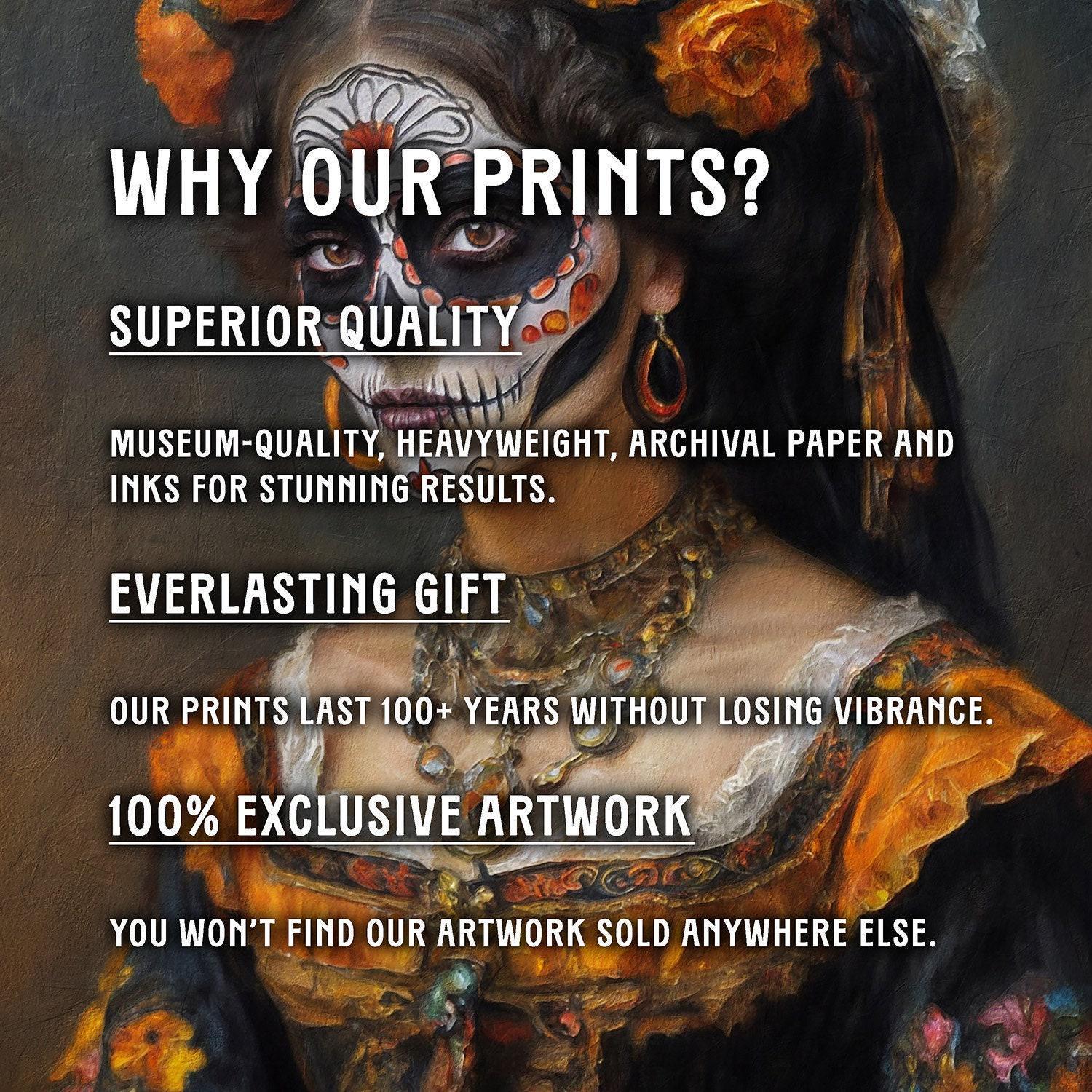 Our art prints are produced on museum-quality paper using archival inks to guarantee they last a lifetime without fading or losing color.
