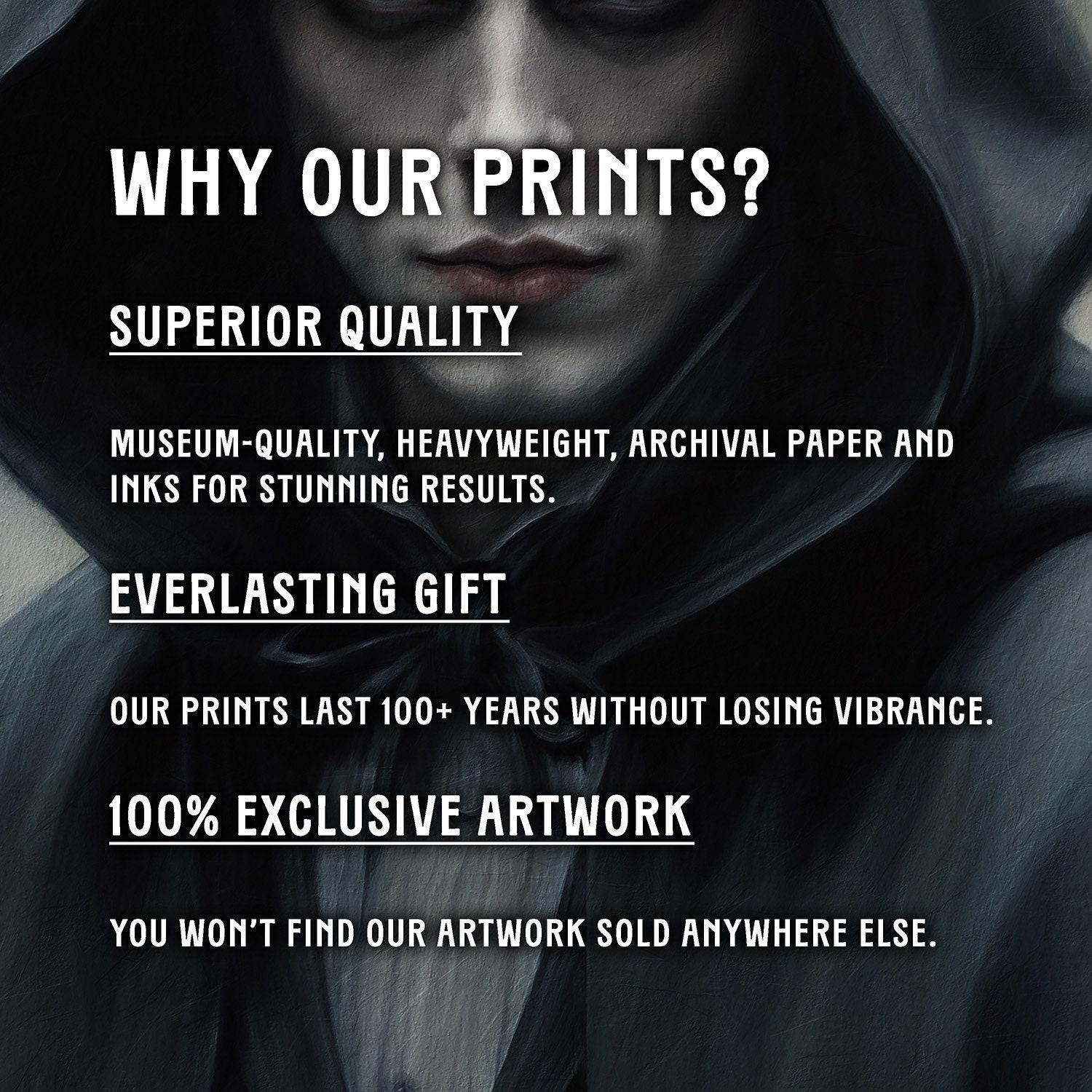 Our art prints are produced on museum-quality paper using archival inks to guarantee they last a lifetime without fading or losing color.