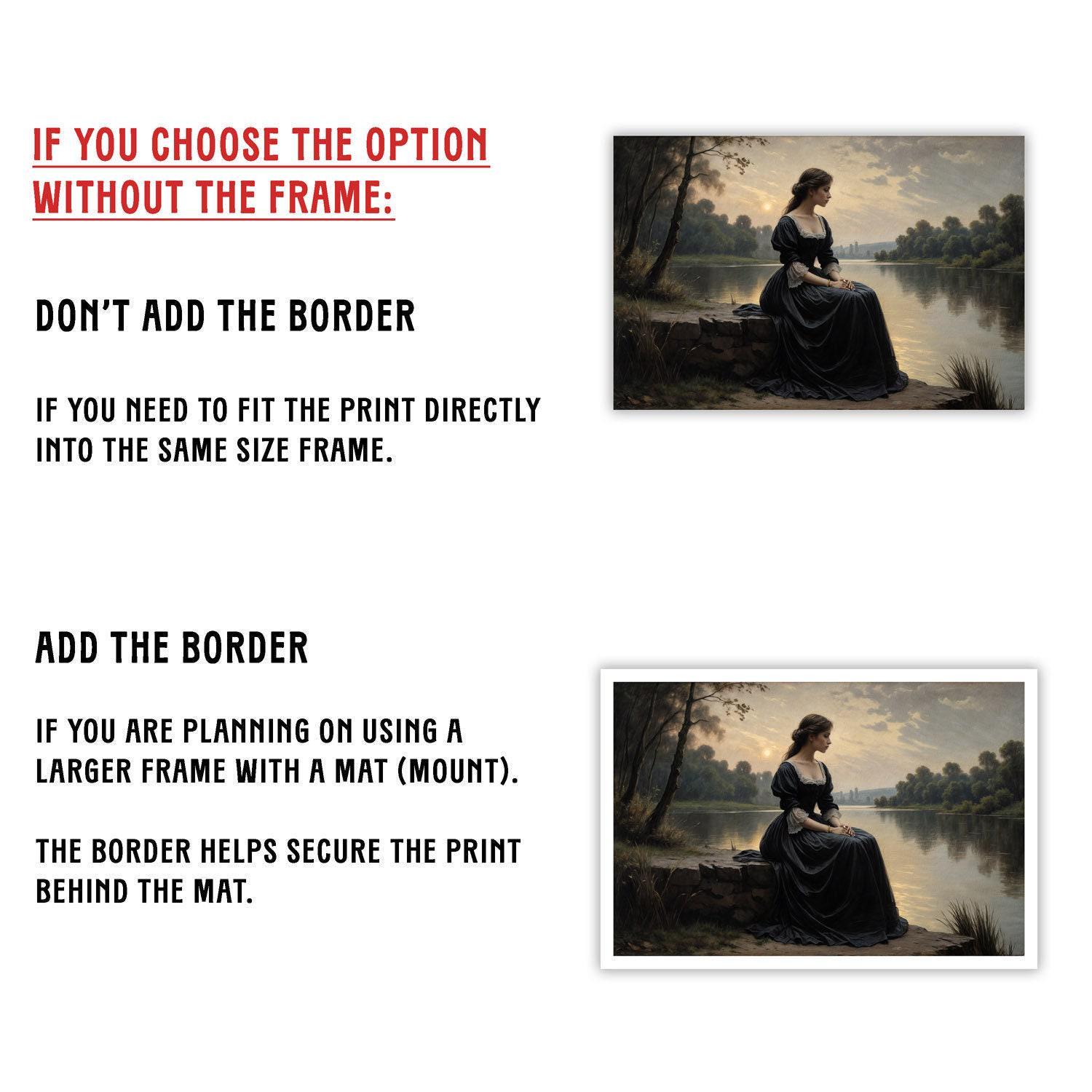 Discover the serene beauty of lakeside contemplation with this elegant Victorian lady art print, perfect for enhancing your dark academia decor and tranquil lake scene collection.