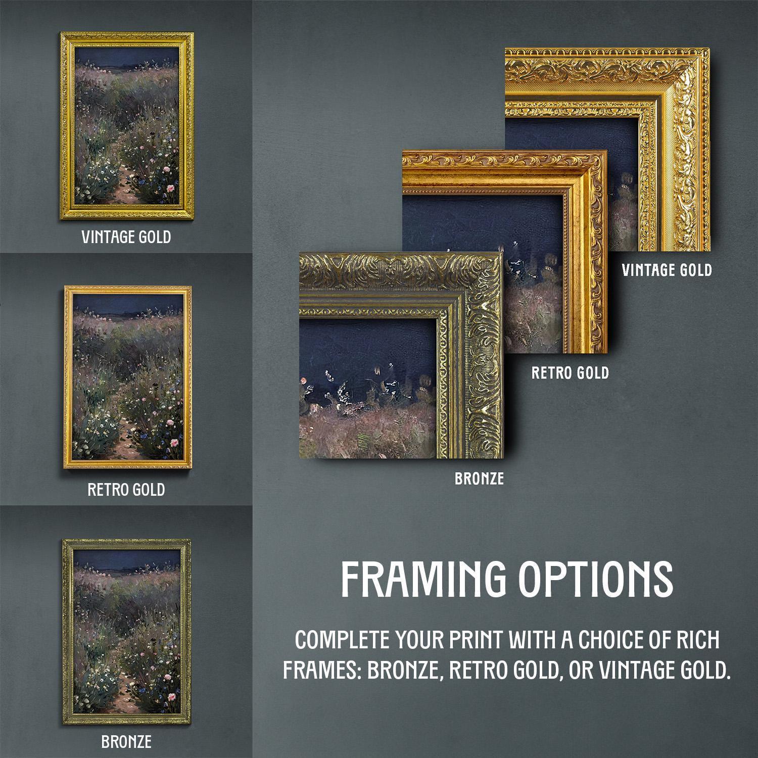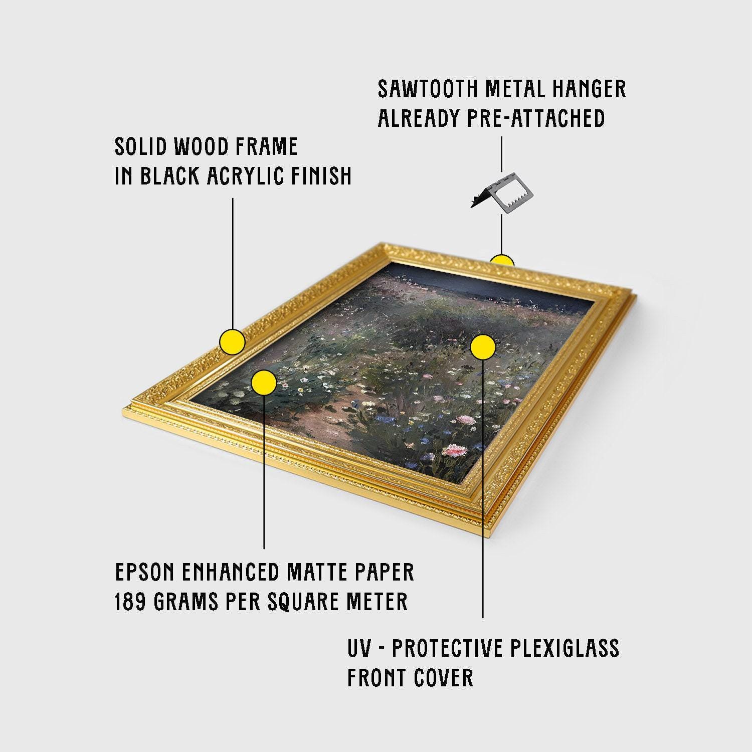 Discover a unique, textured floral art print that brings the beauty of a wildflower path and natural scenery into your space with timeless elegance and rustic allure.