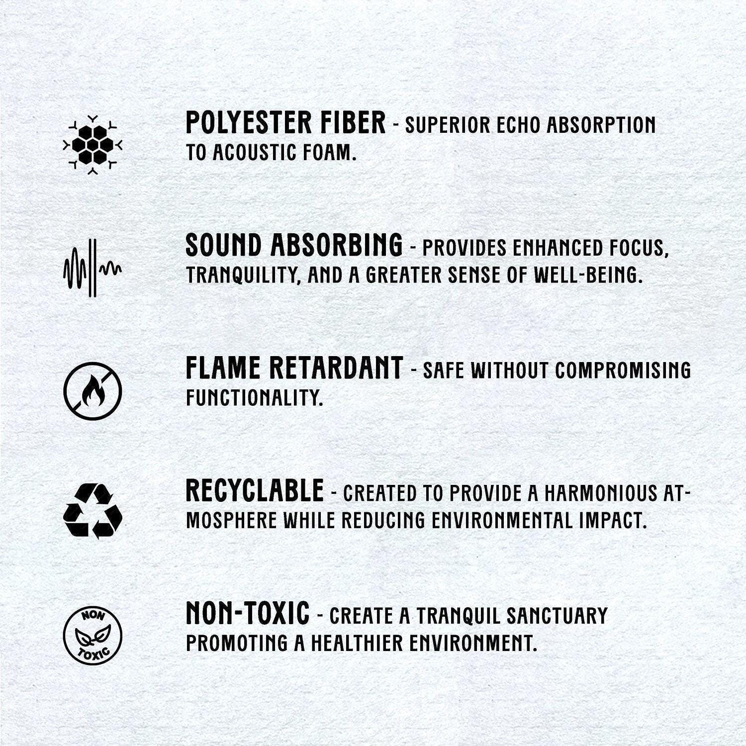 β’ ππ‘π©ππ₯π’π‘π ππ‘π§ππππ¬ ππ₯πππ‘πππ¬: Oursound-absorbing panels are made from recyclable materials, contributing to eco-friendly building practices and reducing environmental impact.