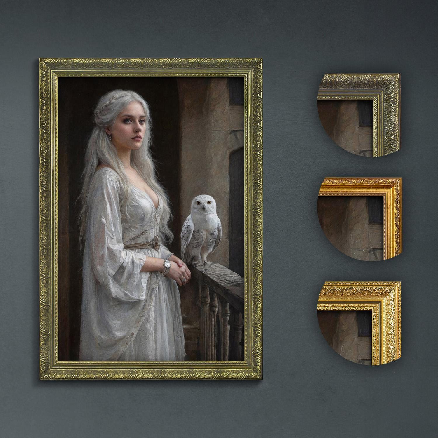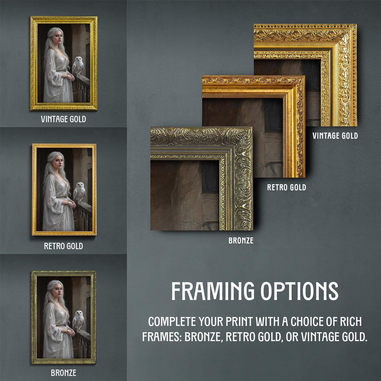 Discover the enchanting allure of this princess and snowy owl art print, a perfect blend of dark academia art and medieval lady charm that invites you into a world of noble mystery. The majestic owl print perches gracefully, evoking moonlit castle scenes and mystical room decor that transform any space with its regal presence. Crafted with an eye for detail, this piece brings an air of timeless elegance and enchanted wall art to your home.