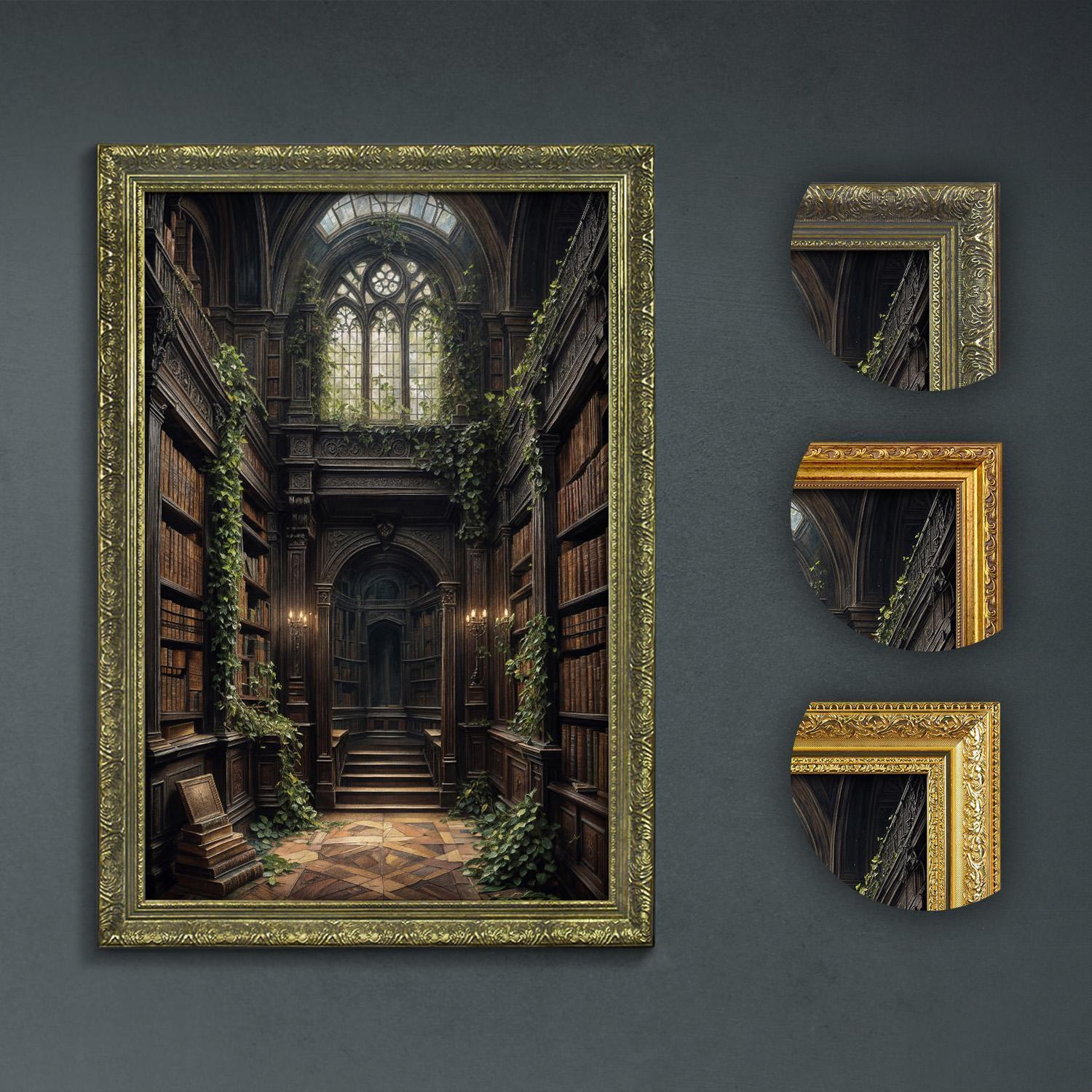 Step into the enchanting world of dark academia with this gothic decor moody print, a vintage-style library scene perfect for your home gallery accent or literary gift.