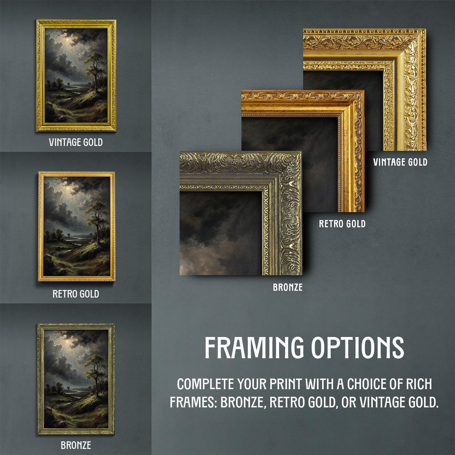 This artful print gift captures a serene valley scene printed on luxurious archival paper using museum quality ink, ensuring vibrant colors and lasting beauty. Choose from vintage gold frame, bronze frame art, or retro gold print options to complement your dark aesthetic decor with scholarly wall art charm.
