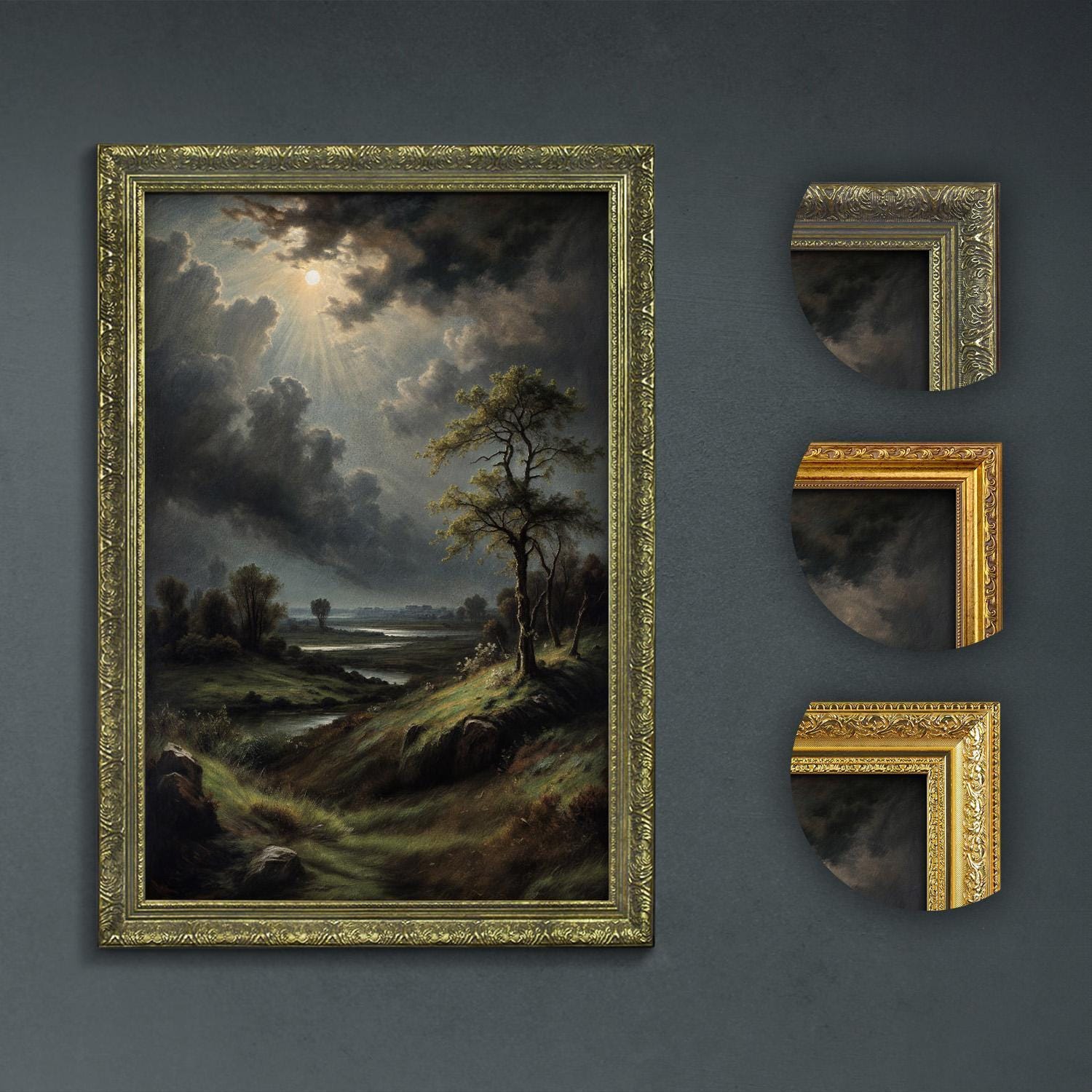 Immerse your space in moody dark wall art featuring a valley on a gloomy day, perfect for lovers of dark academia decor and nostalgic home decor.