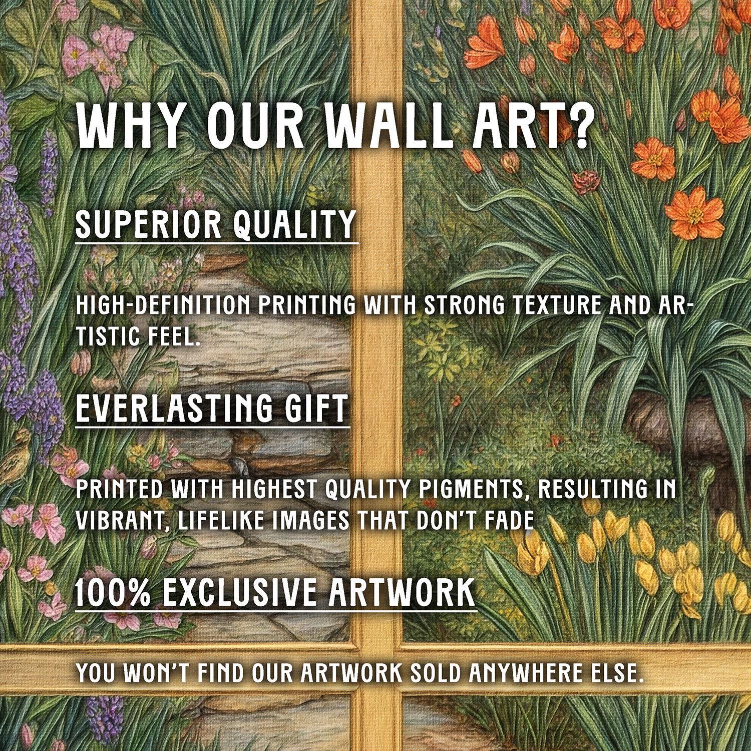 Step into a tranquil world with this lush flower decor that captures the essence of a peaceful nature art scene. Inspired by serene garden paths, this botanical wall art invites vibrant garden print colors into your living space, creating a calming and refreshing atmosphere. Each piece is thoughtfully crafted to bring the beauty of a home garden artwork directly to your walls.