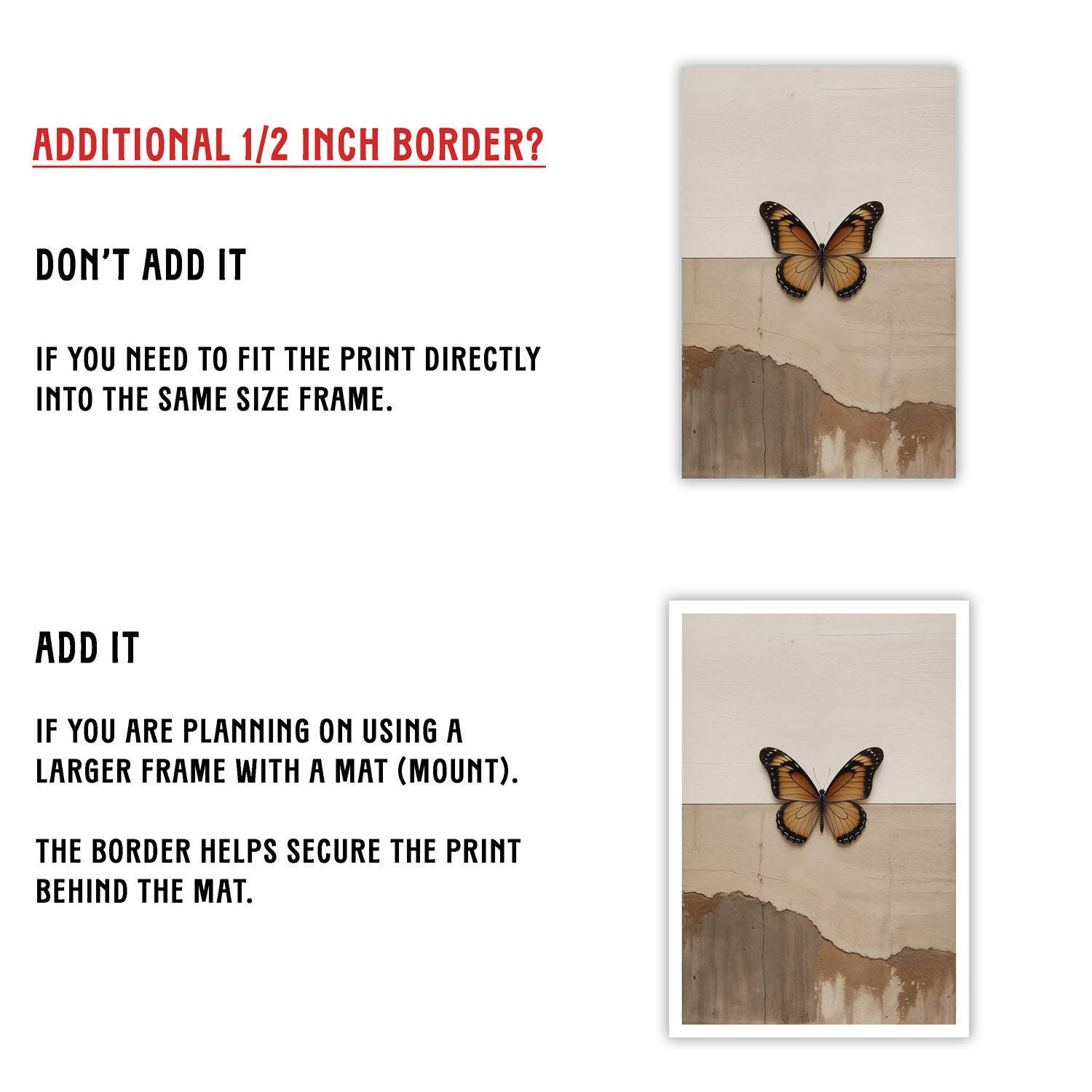 β’ Optional 1/2 inch border for easy framing.