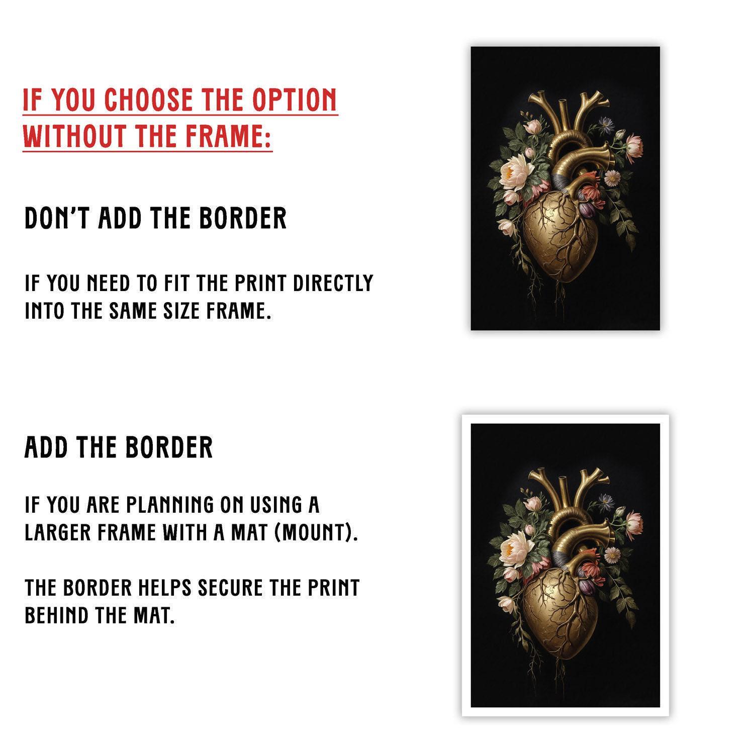 Elevate your living space with this striking moody decorative art, featuring a shimmering human heart intertwined with intricate gold flowers. Choose from elegant bronze, retro gold, or vintage gold frames to add nostalgic wall art vibes and scholarly charm to any room.