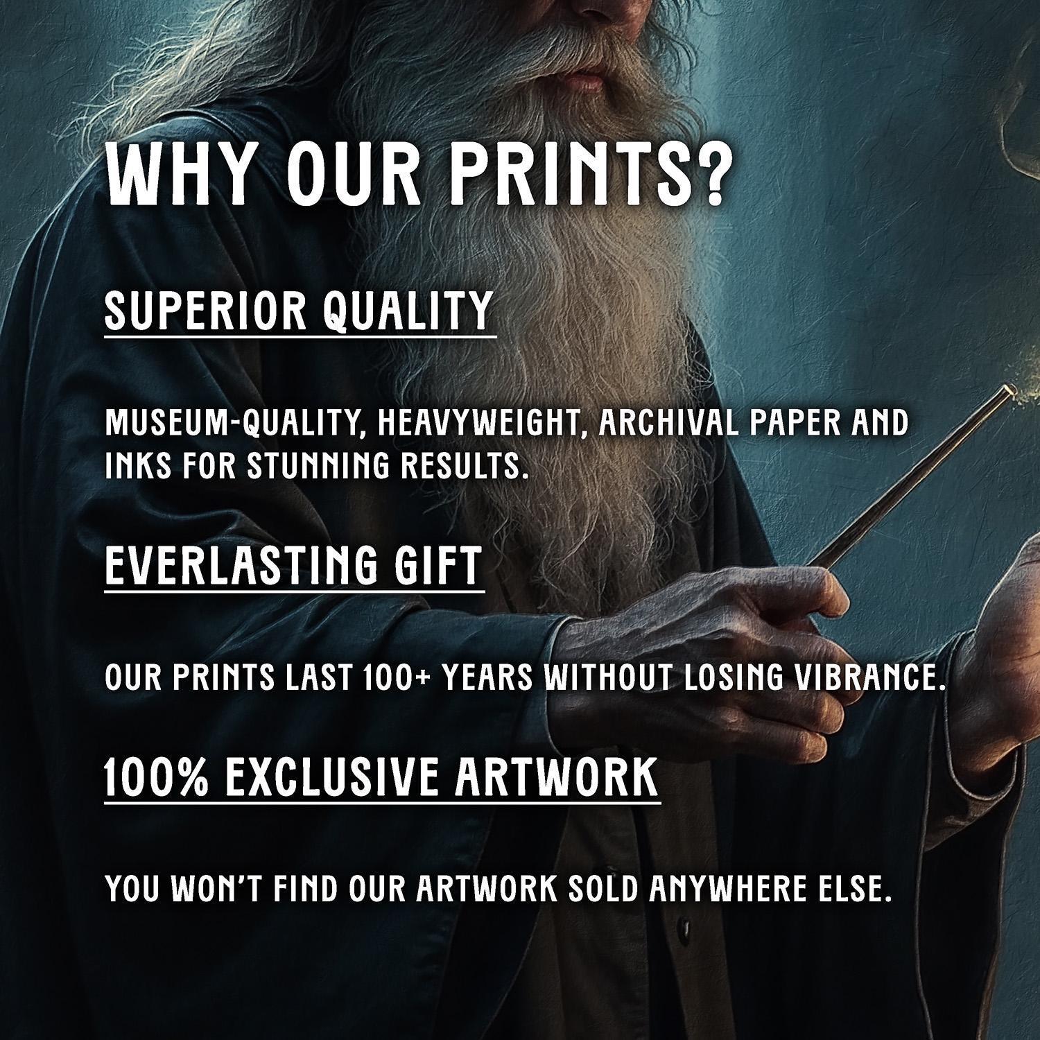 Our art prints are produced on museum-quality paper using archival inks to guarantee they last a lifetime without fading or losing color.