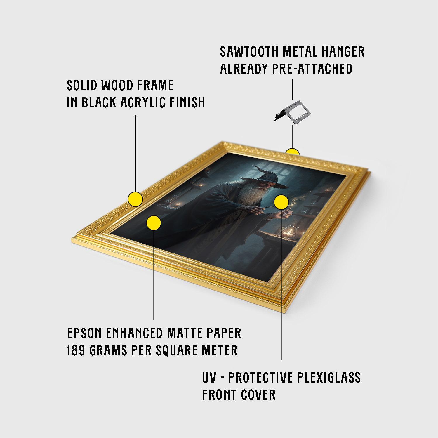 This captivating artwork features an elderly mage wielding a wand amid candle light art, perfect for anyone drawn to vintage style magic and spell casting art. Crafted with museum-quality inks on luxurious archival paper, this print promises lasting beauty and rich colors.