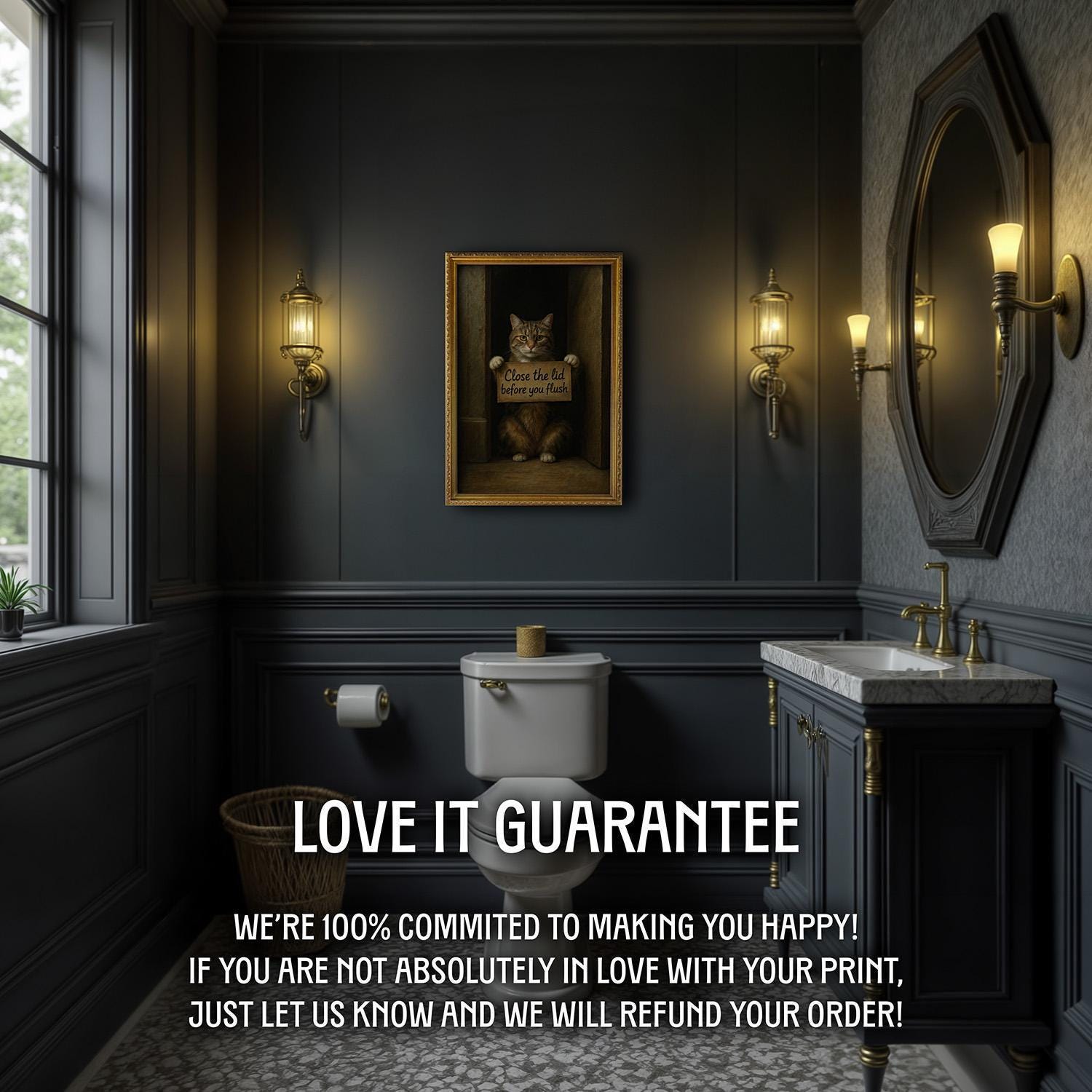 Add a whimsical touch to your bathroom with this charming bathroom cat poster featuring a funny close lid signβperfect quirky restroom art for dark academia decor lovers.