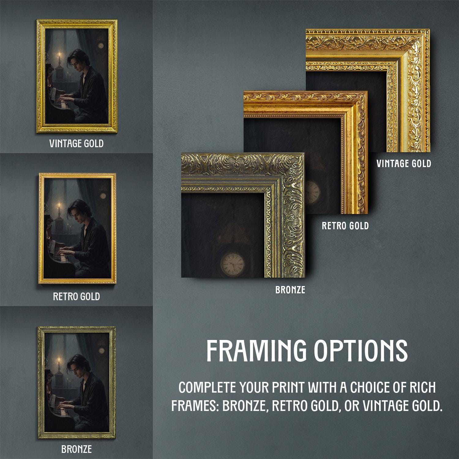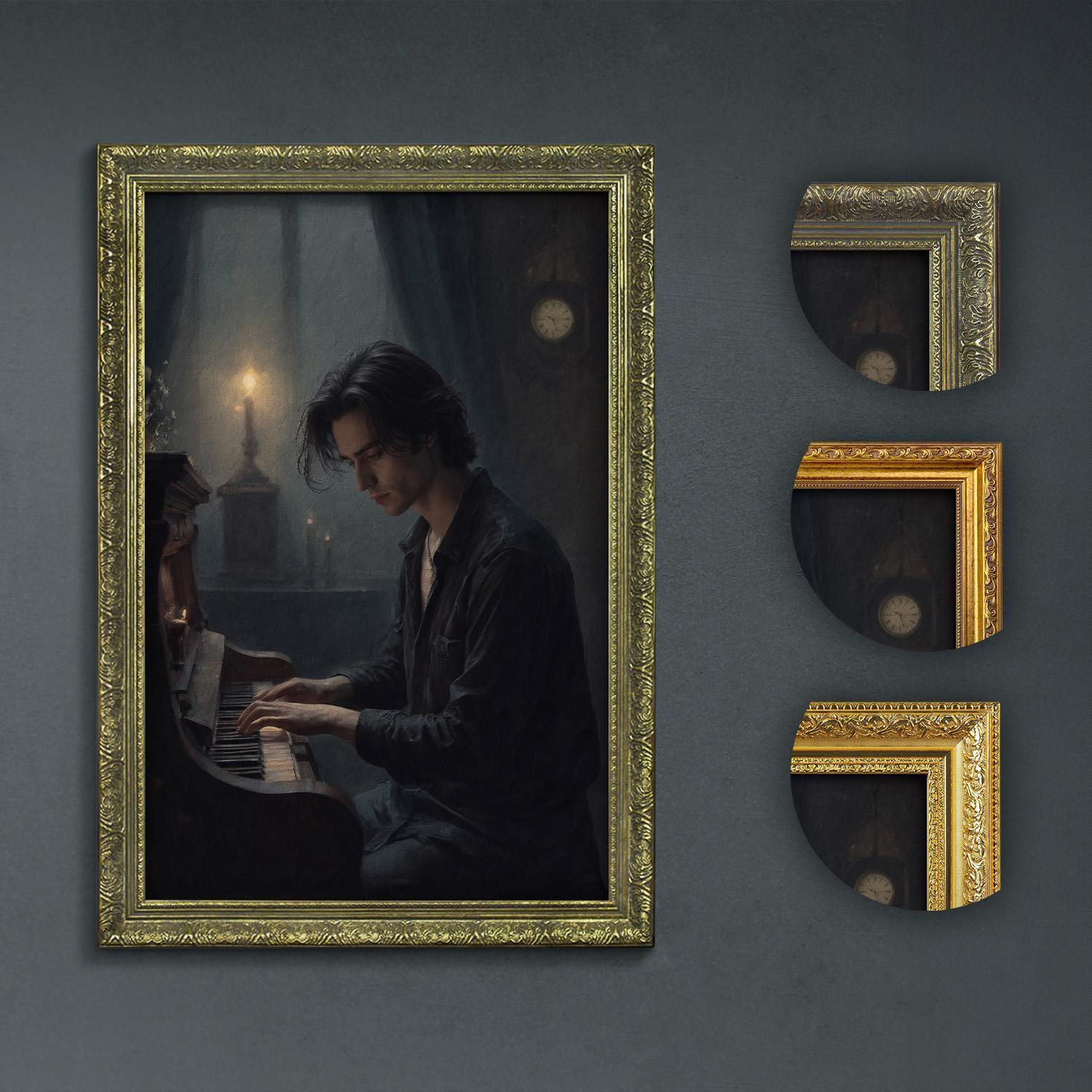 Immerse yourself in moody dark wall art featuring a pianist playing piano, perfect for enriching your dark academia decor with elegant music vibes and nostalgic charm.
