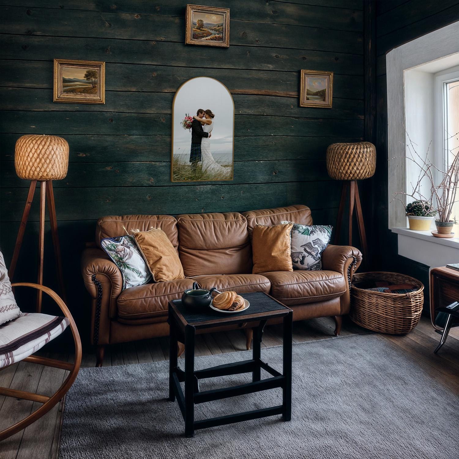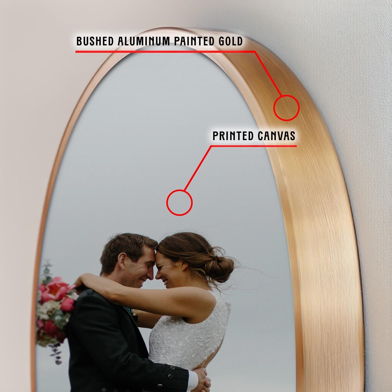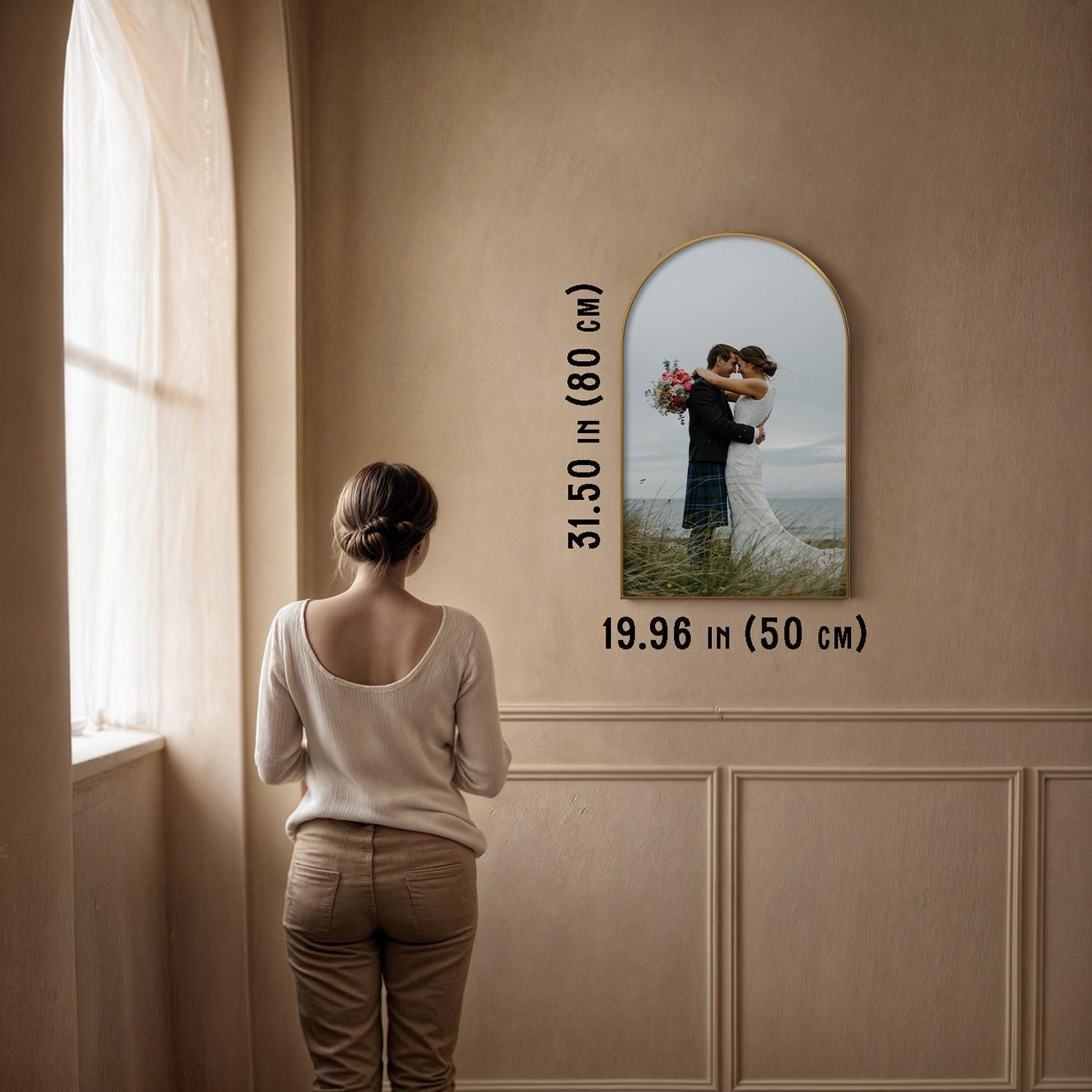 Elevate your decor with our stunning arched canvas print showcasing your photo or any image you choose. This canvas comes with a frame made of brushed gold aluminum, adding an air of timeless sophistication to any space. Perfect for those who appreciate unique wall art.