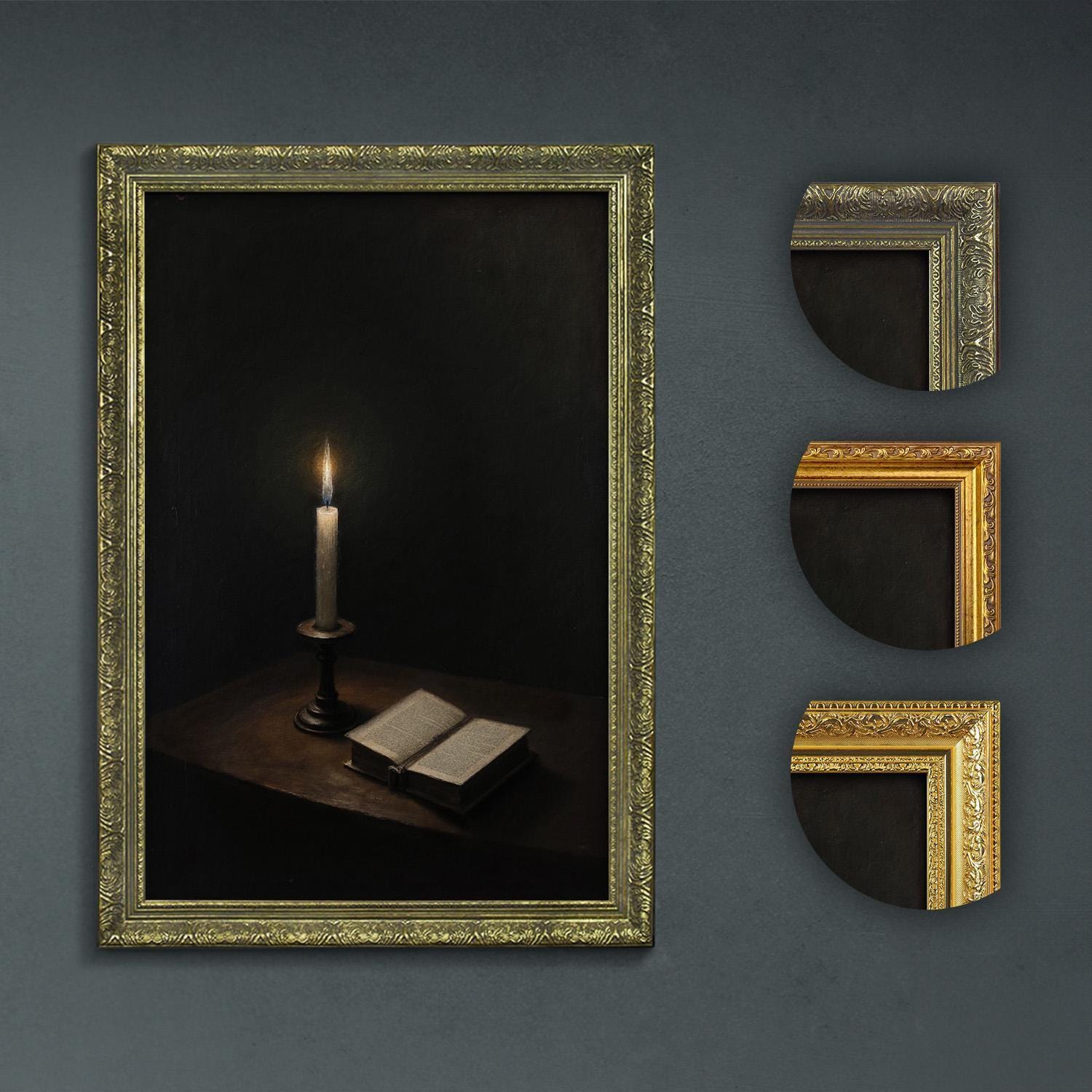 Transform your space with this dark academia candlelight art print, a perfect blend of moody home decor and elegant wall frame for book lovers and writers.