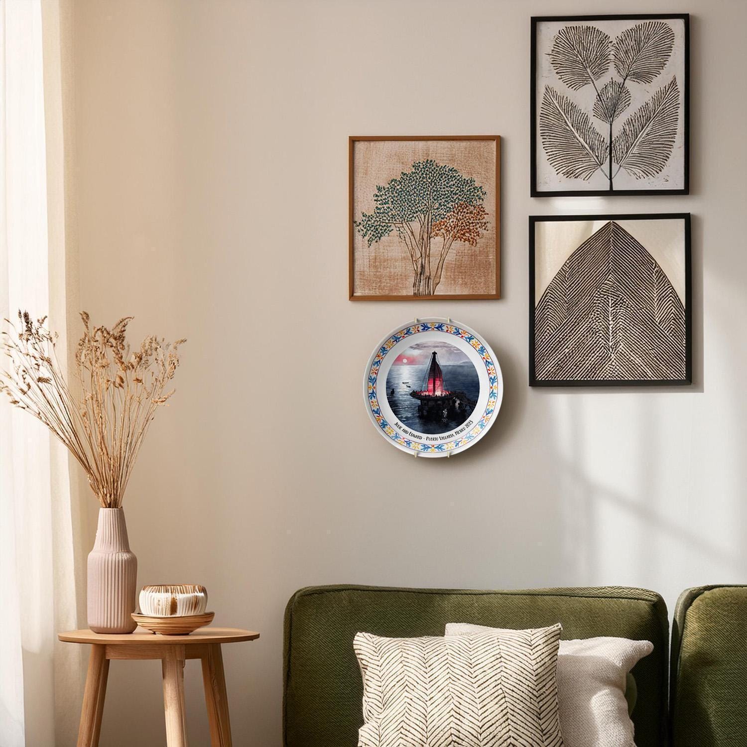 This plate comes with a sturdy black display stand and a hook, allowing you to showcase it effortlessly on a shelf, table, or wall. Its timeless design makes it a thoughtful gift for birthdays, weddings, anniversaries, or any special occasion. Whether creating a statement piece for your own space or giving a one-of-a-kind present, this ceramic plate combines functionality with artistic flair.