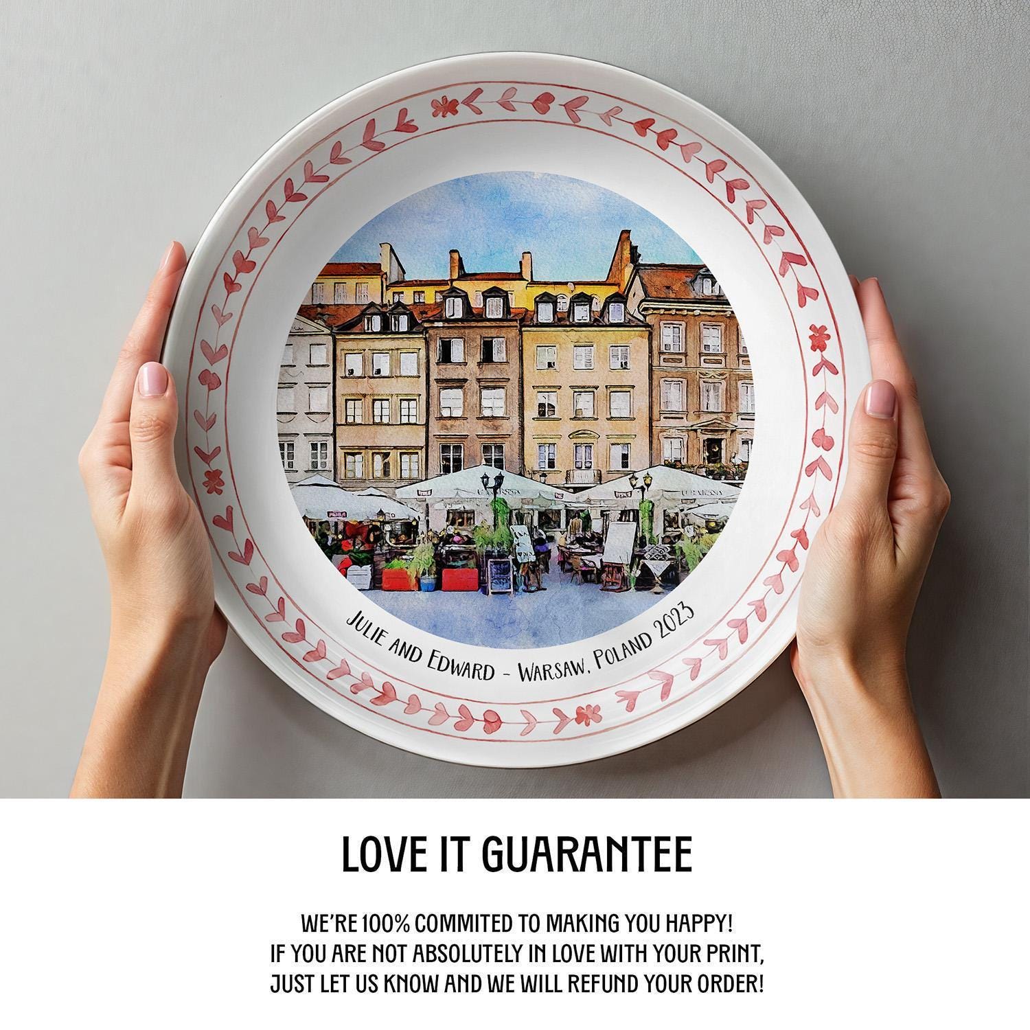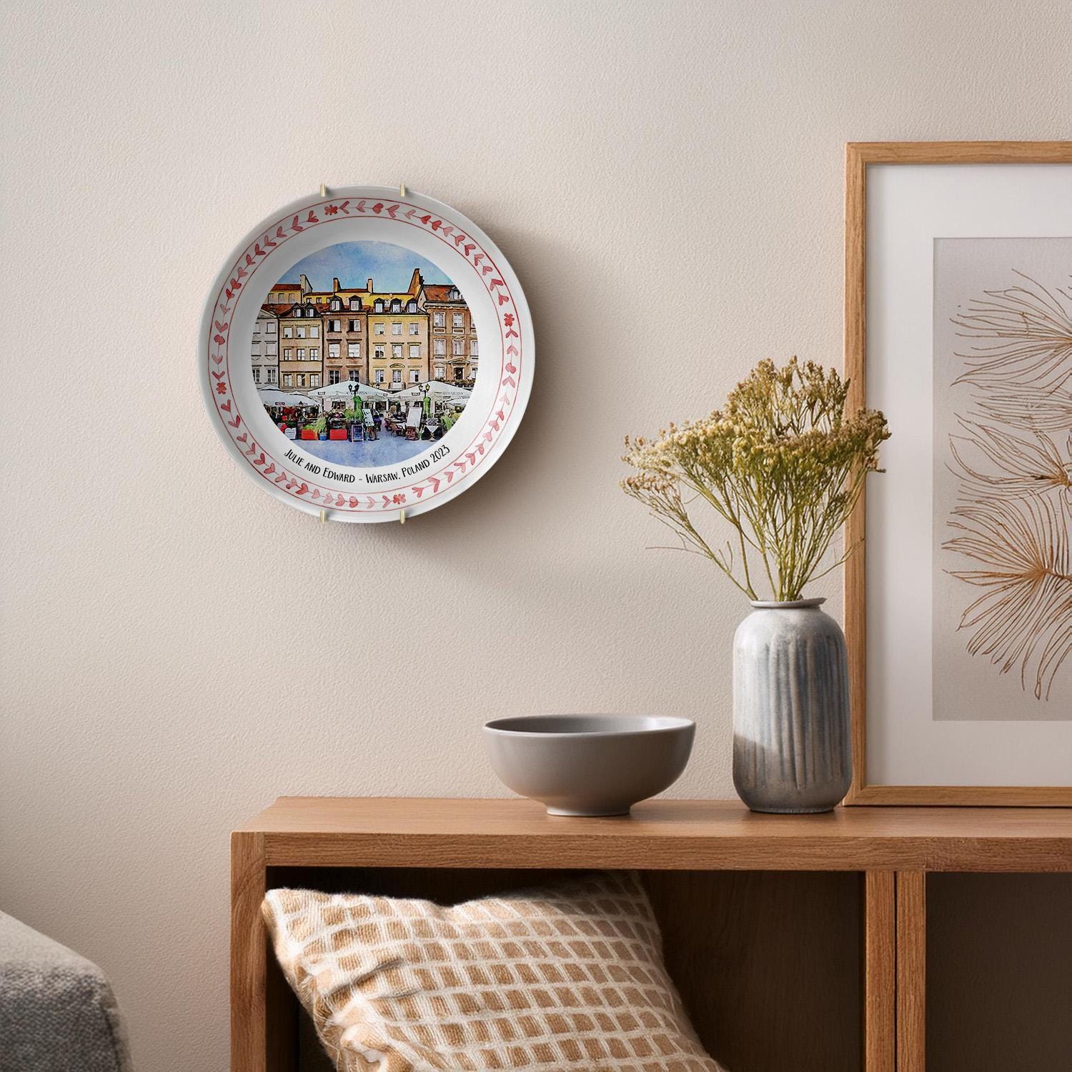 Step into the charm of Warsaw with this exquisite ceramic plate, capturing the historic market square in delicate watercolor hues. Designed as a unique Warsaw gift, it blends artistic elegance with practical decor, perfect for those who cherish Polish decor plate treasures. Whether displayed on your wall or shelf, this piece invites a touch of travel memory plate nostalgia into your home.