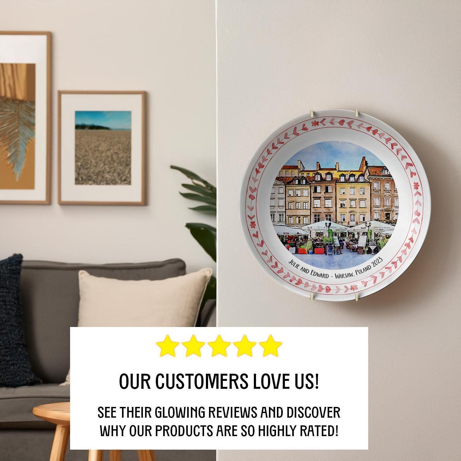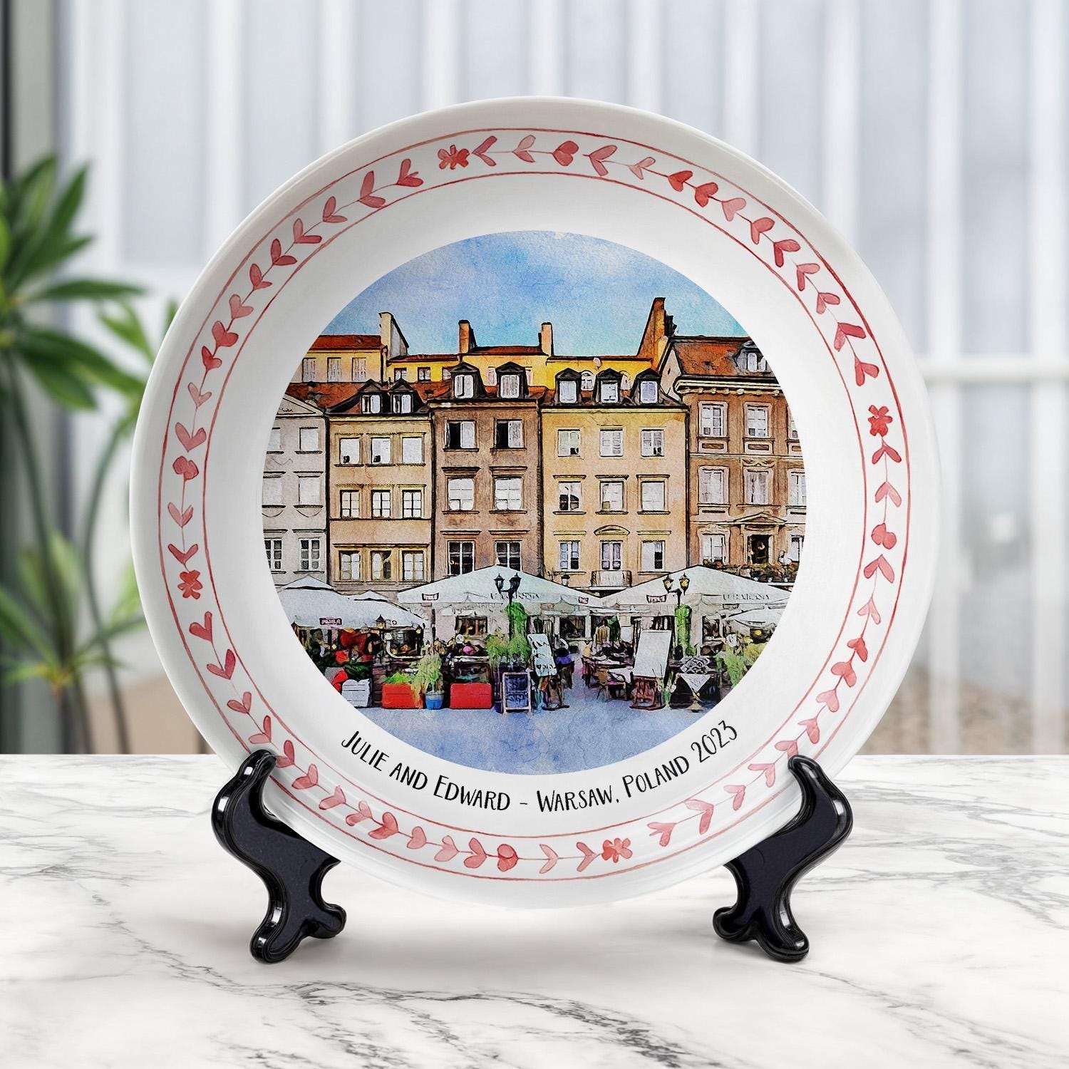 Step into the charm of Warsaw with this exquisite ceramic plate, capturing the historic market square in delicate watercolor hues. Designed as a unique Warsaw gift, it blends artistic elegance with practical decor, perfect for those who cherish Polish decor plate treasures. Whether displayed on your wall or shelf, this piece invites a touch of travel memory plate nostalgia into your home.