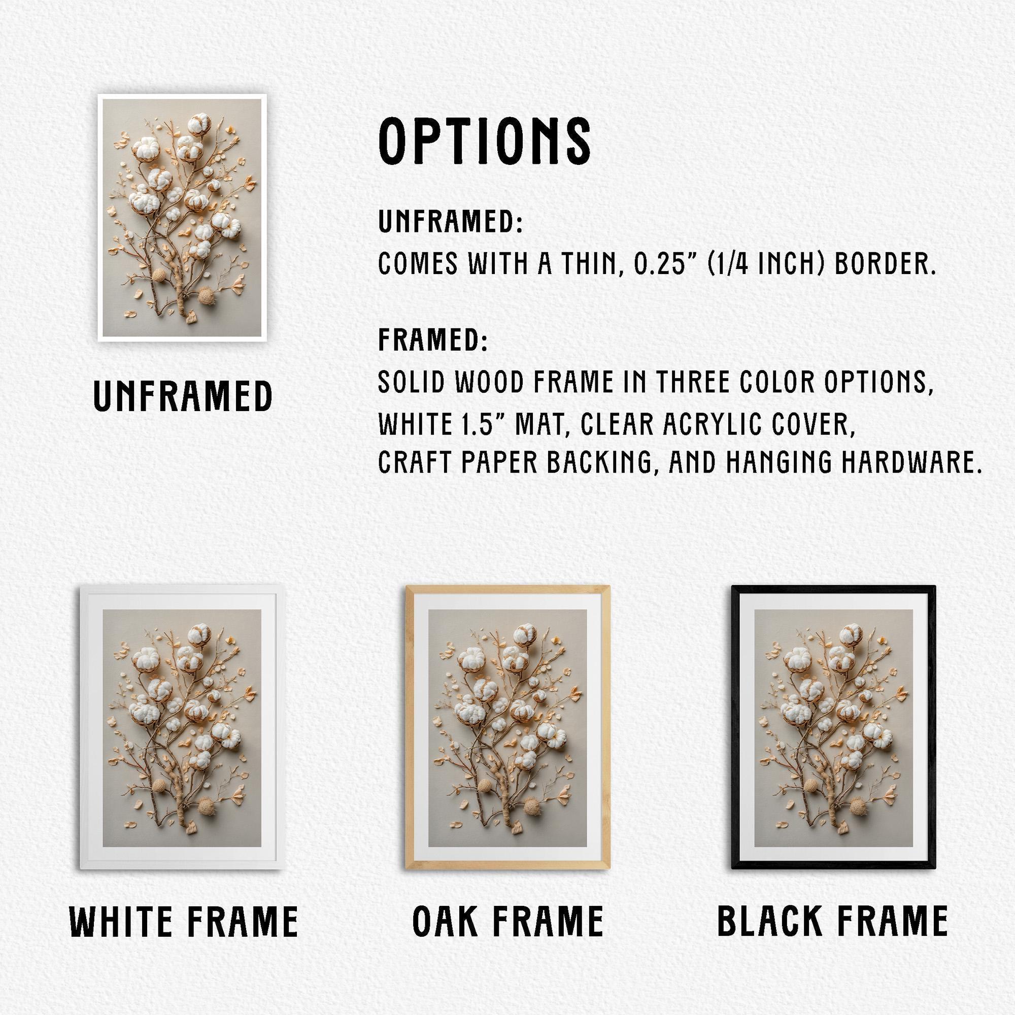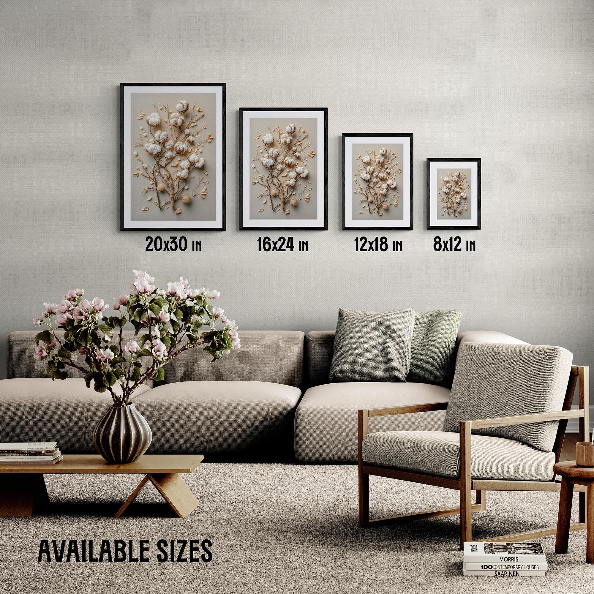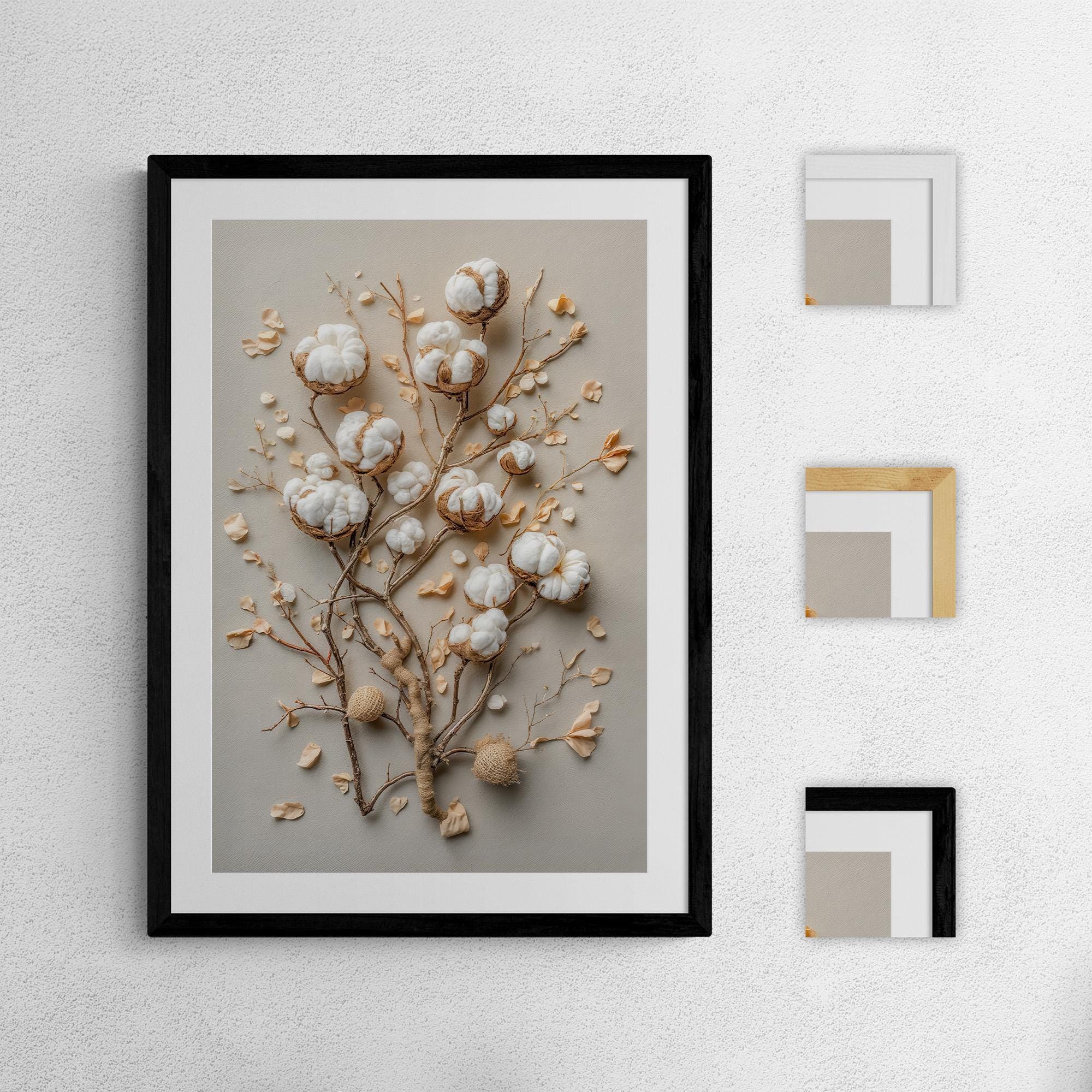 Discover the serene beauty of nature with this cotton flower botanical print, designed to bring a calm, minimalist vibe to your space. Inspired by Japandi decor art, this piece combines neutral floral print tones and a subtle faux texture poster effect that adds depth and warmth without overwhelming your room. Perfect for enhancing beige room decor or creating a soft wall decor statement, itβs an ideal choice for nature lovers seeking modern floral art with a 3D look.