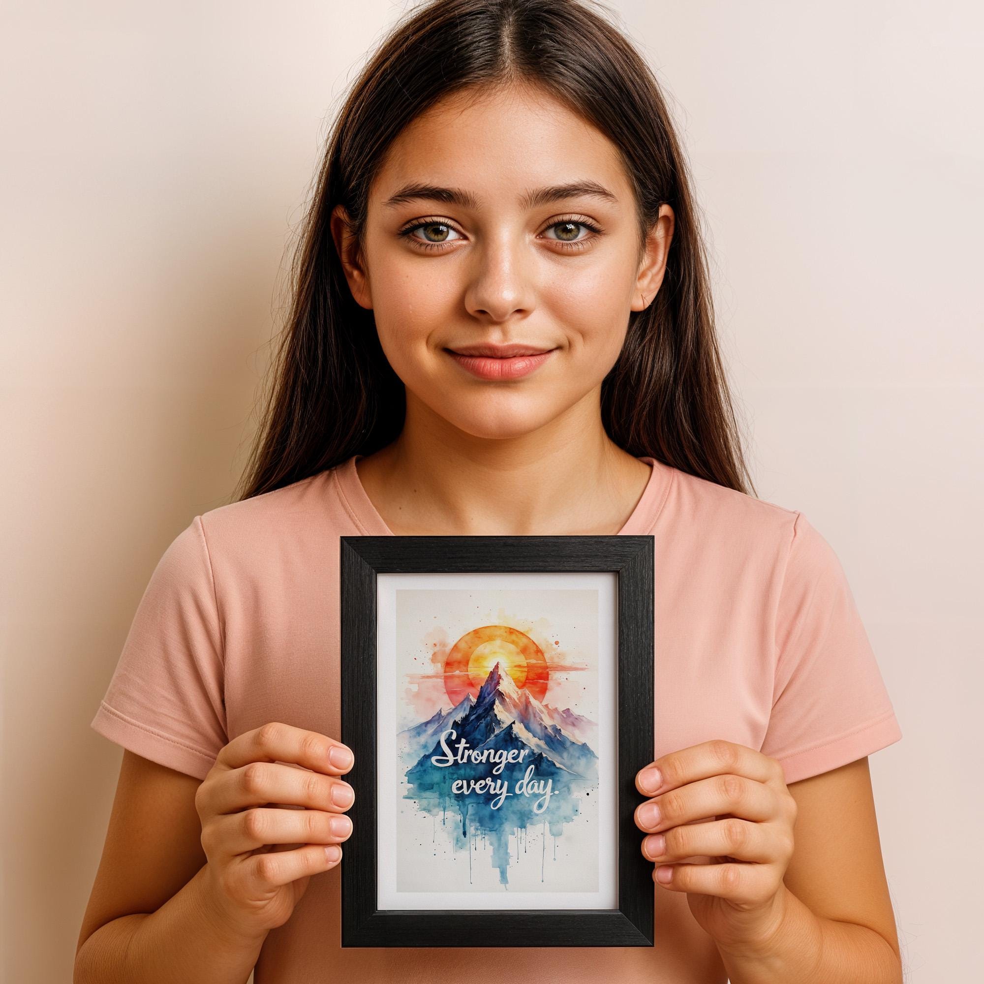 Every day is a new chance to climb higher and embrace growth with this mountain wall art that captures the serene beauty of a sunrise over watercolor mountains. This affirmation print inspires positivity and resilience, making it a perfect daily motivation art piece for your home or office. Crafted with care, it blends nature quote art and uplifting messages to brighten any space.