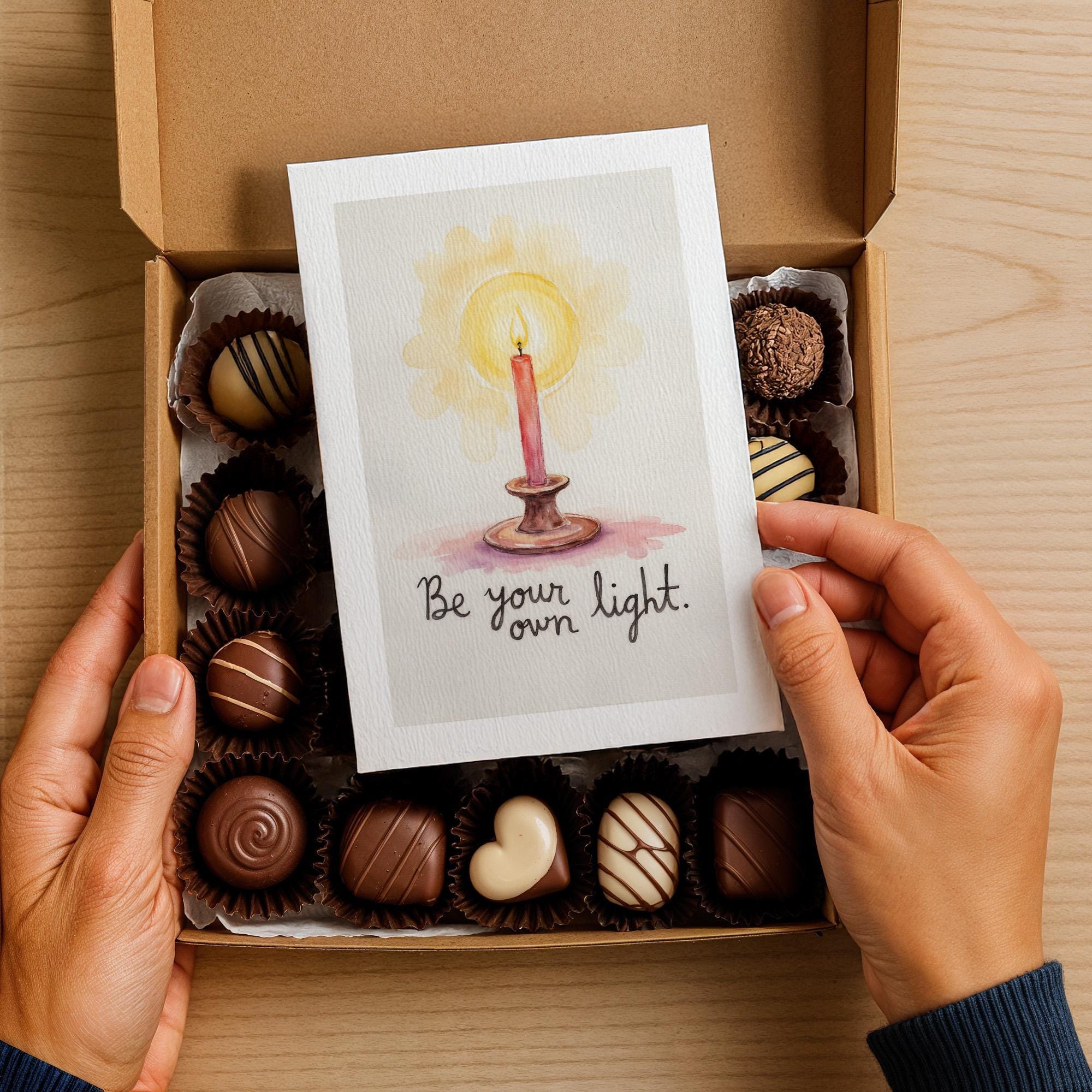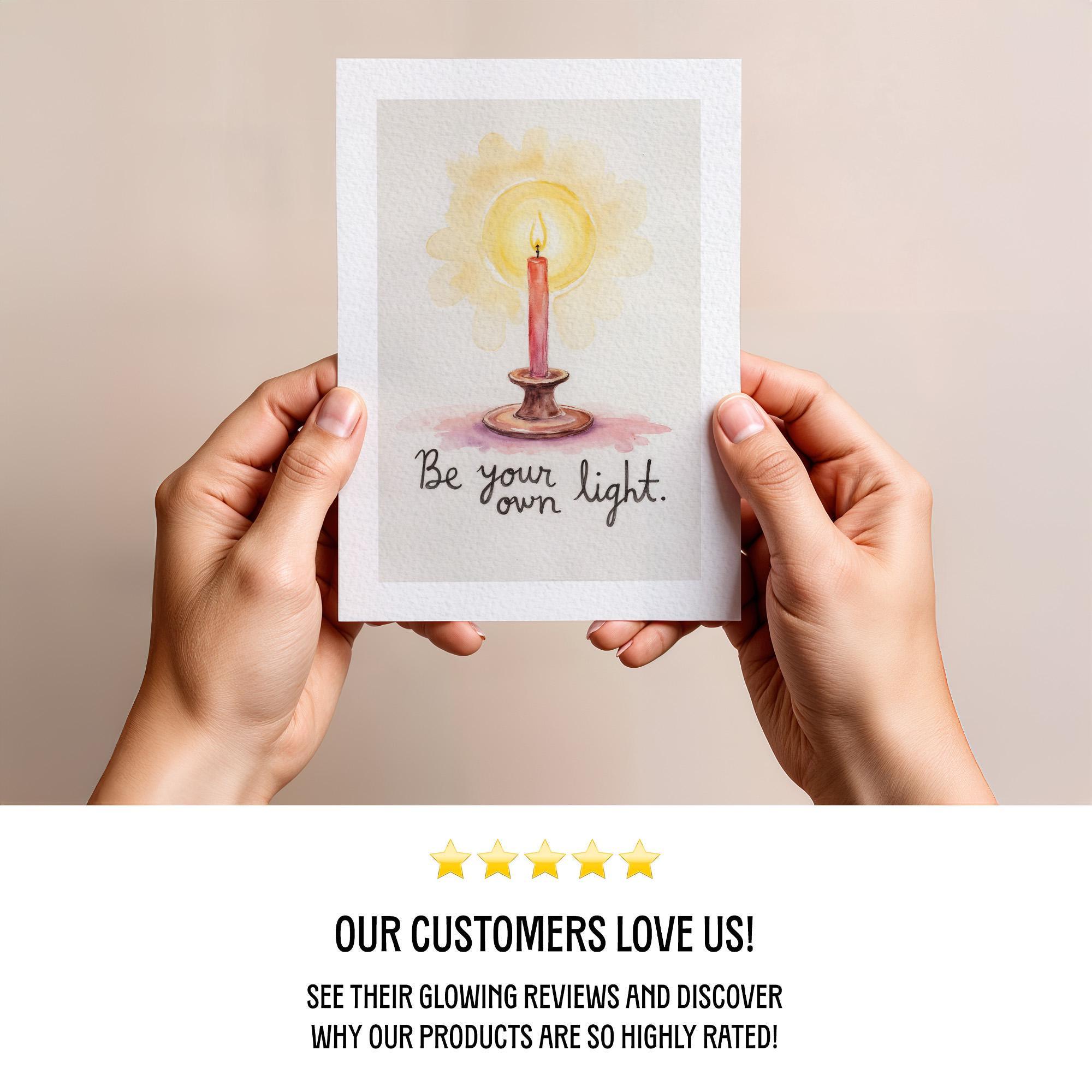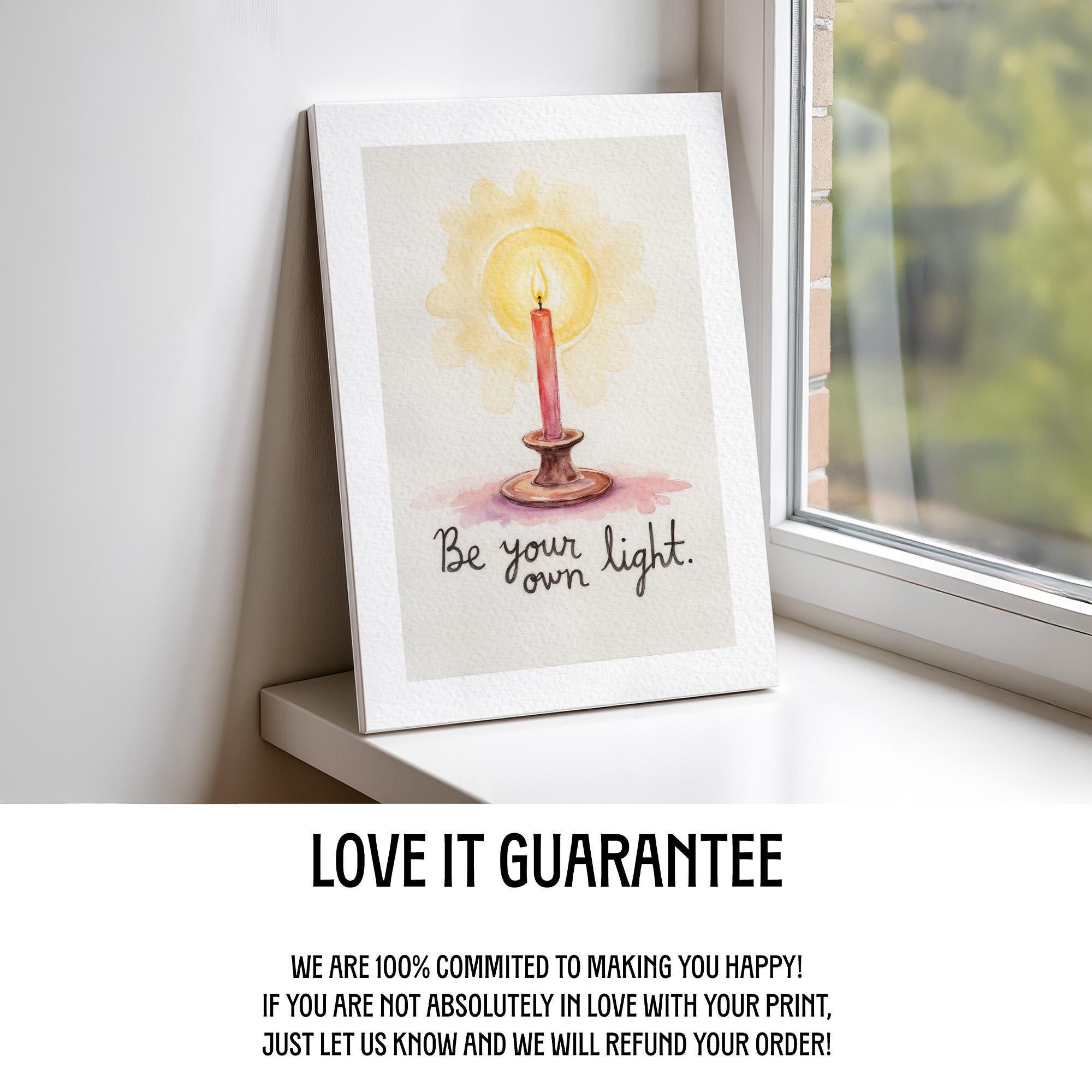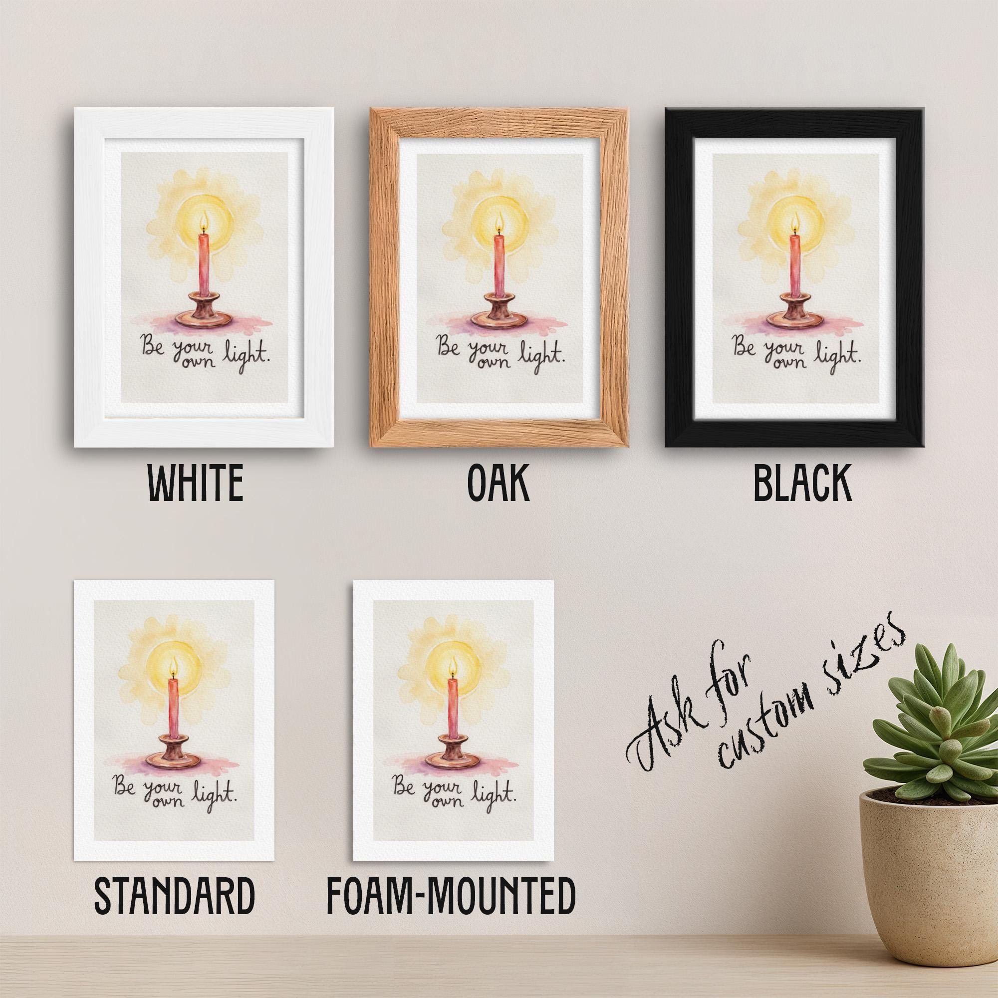 Discover a daily dose of inspiration with this motivational print that beautifully captures the essence of self growth through its delicate watercolor quote art. Featuring a softly glowing candle, this affirmation wall art serves as a gentle reminder to "be your own light," filling your space with warmth and positivity. Perfect as a mindfulness gift or uplifting addition to your spiritual home decor, it invites calm and encouragement into any room.