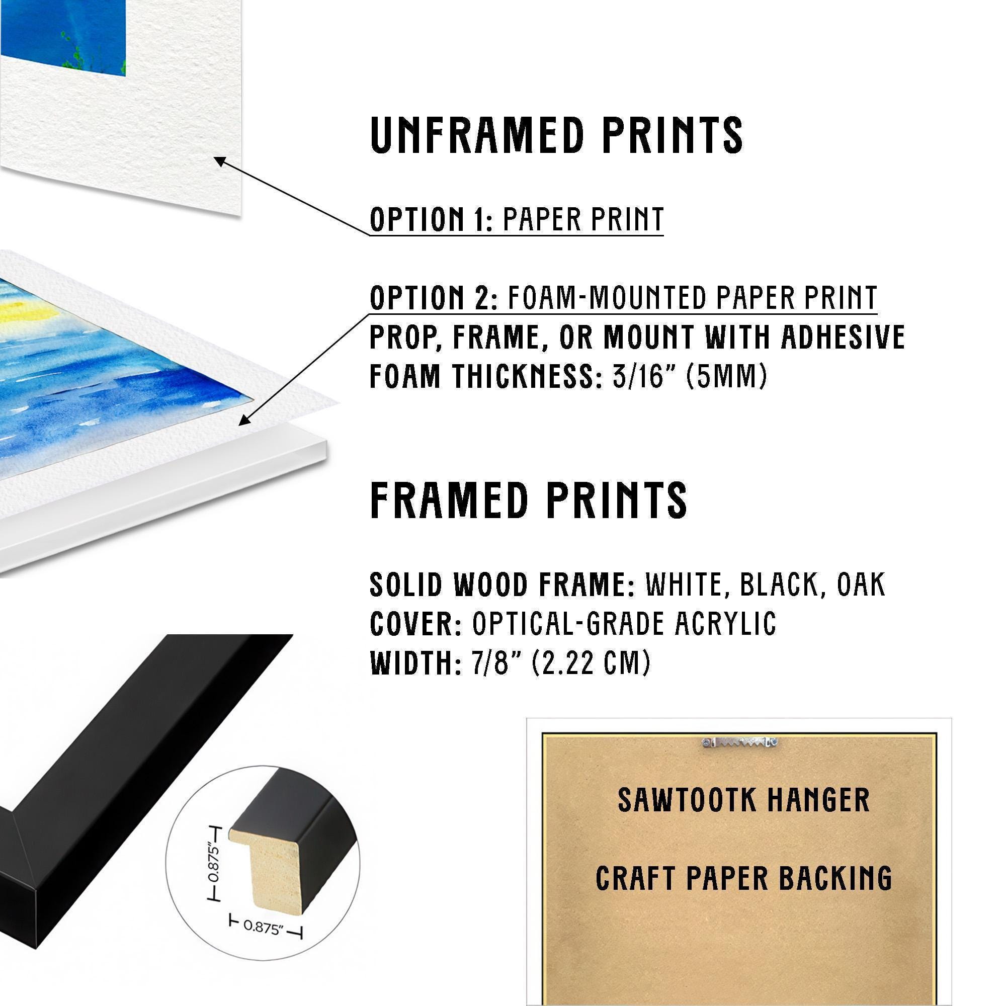 โ Available as unframed, foam-mounted, or framed (3 frame colors: oak, white, black)