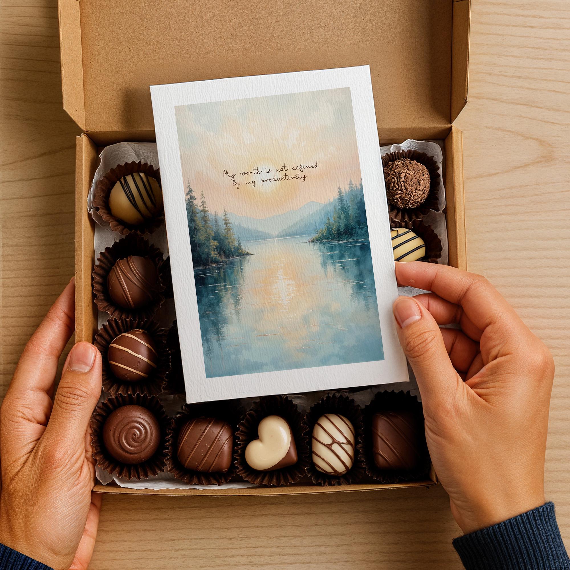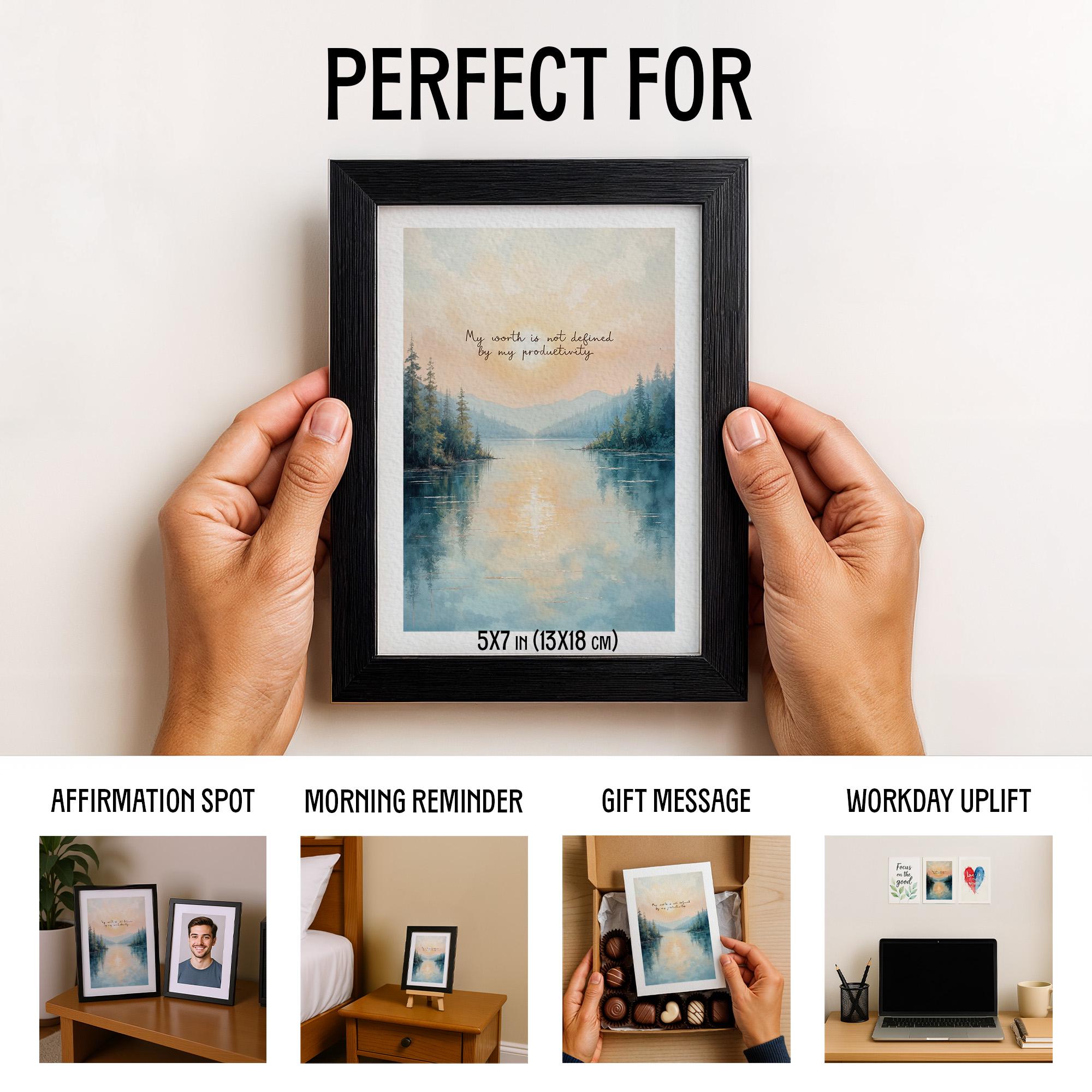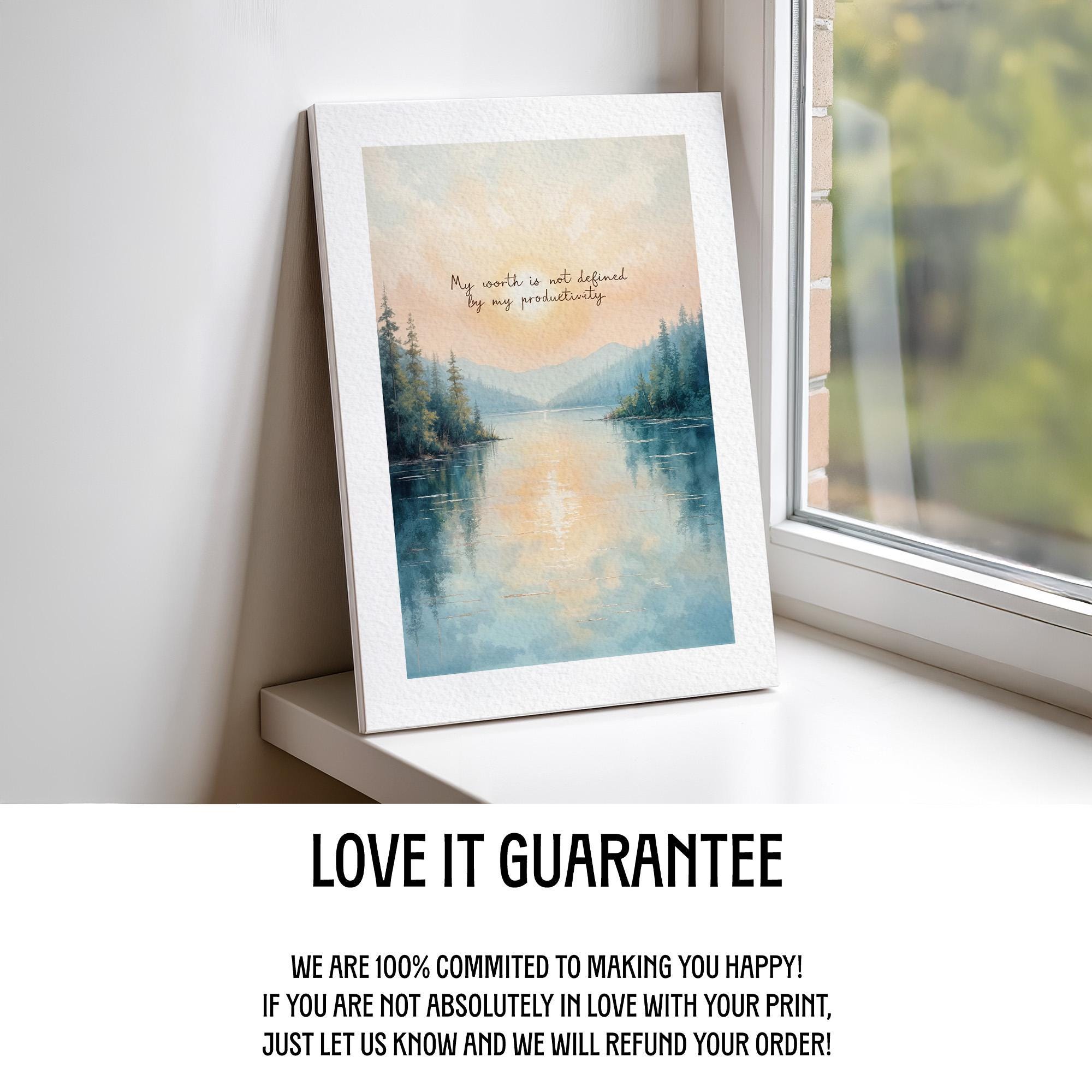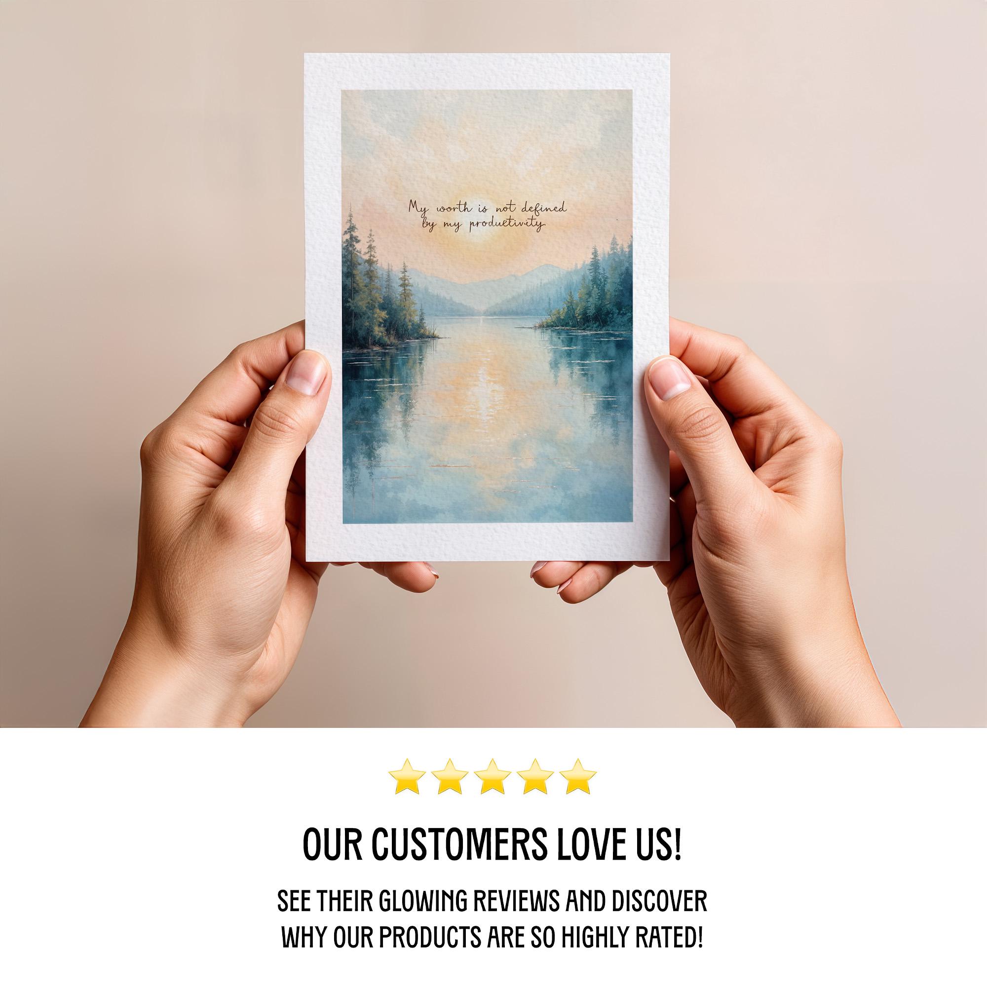Step into a moment of calm with this serene mountain lake print, crafted to bring a peaceful balance to your space. This nature wall art serves as a gentle self worth reminder, encouraging mindfulness and uplifting your spirit each day. Perfect as calming bedroom art or a thoughtful gift, it inspires healing and positivity in any environment.