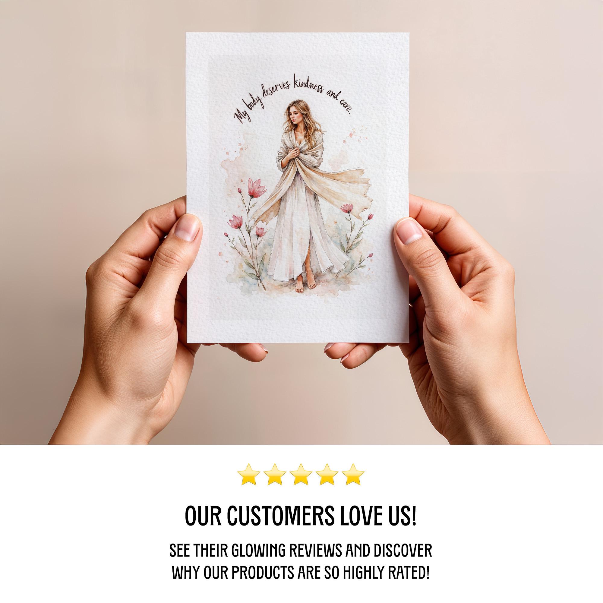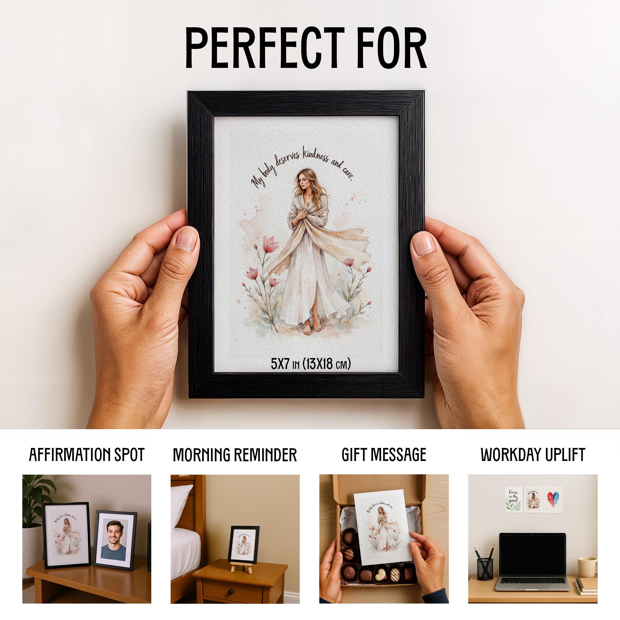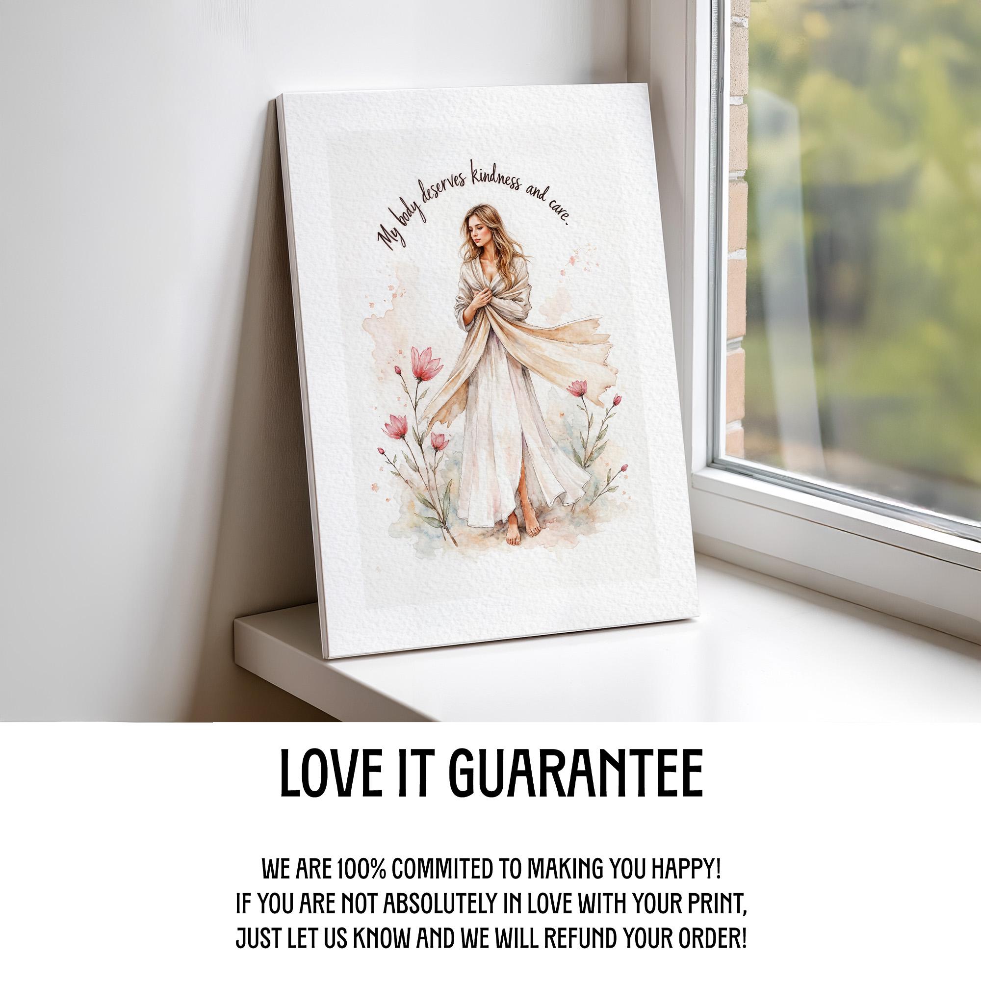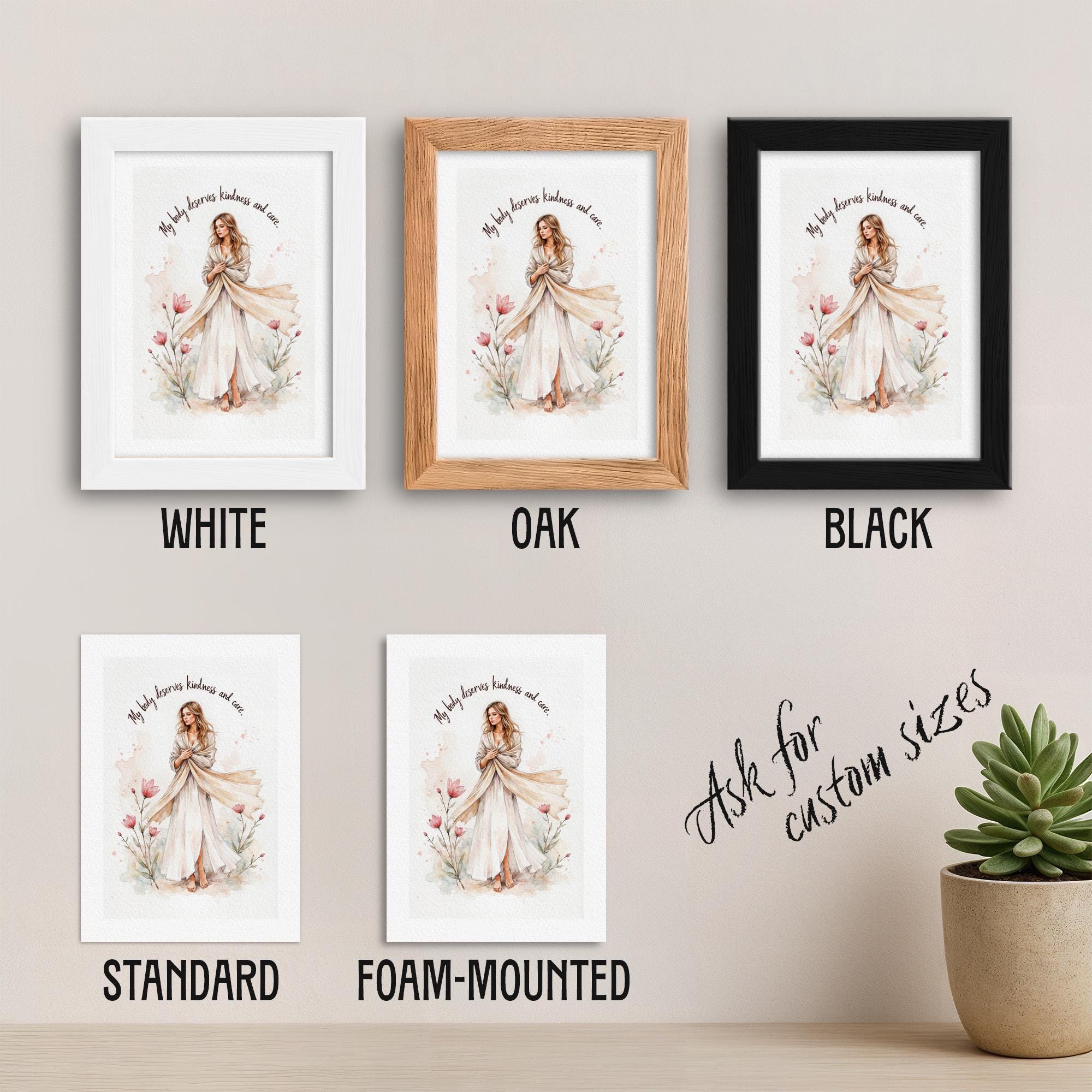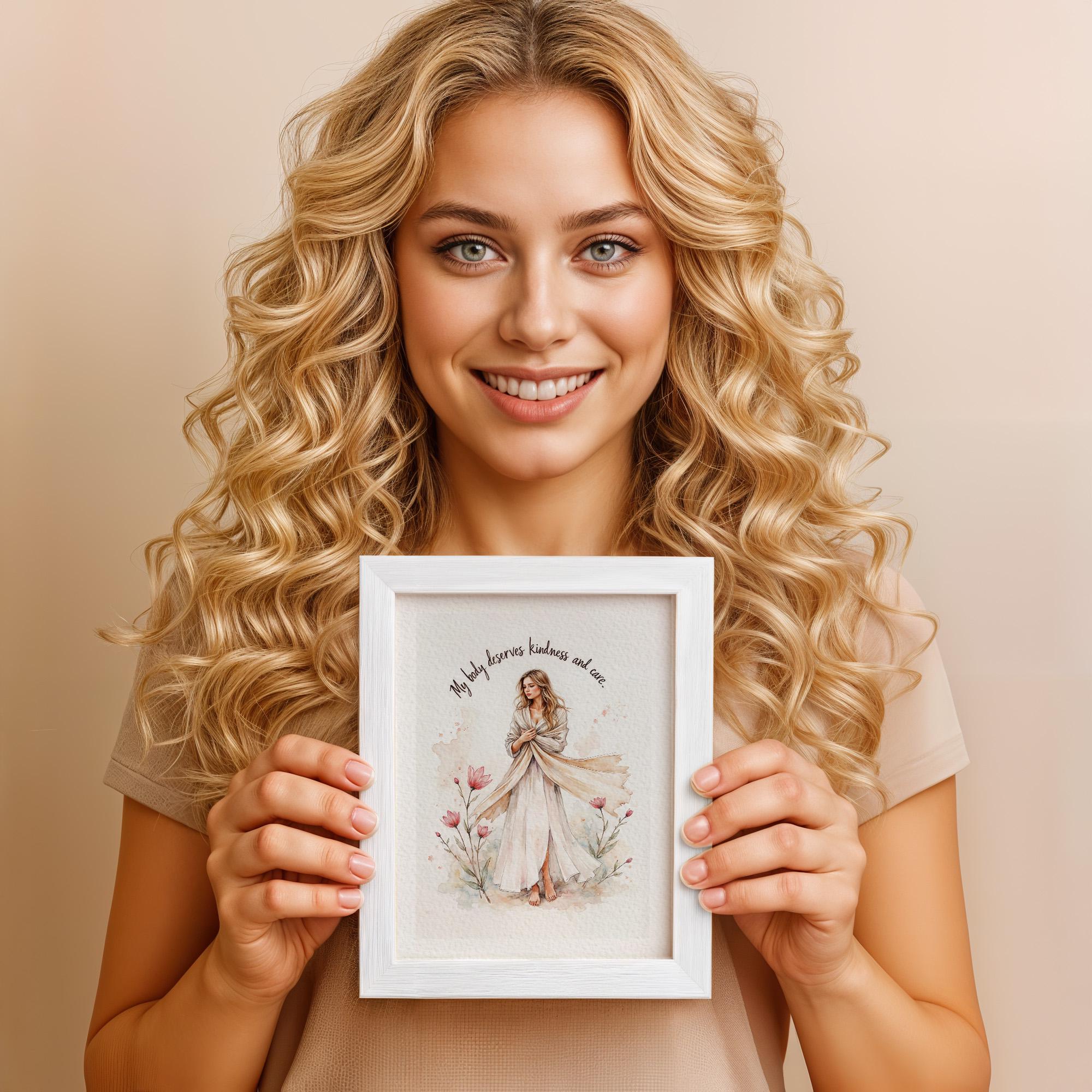 Embrace a moment of calm and empowerment with this body positive wall art, thoughtfully designed to inspire self-love and kindness. Featuring a serene watercolor woman art, this healing art print gently reminds you that your body deserves compassion every day. Perfect for any wellness wall print collection, it brings a peaceful, uplifting energy to your space.
