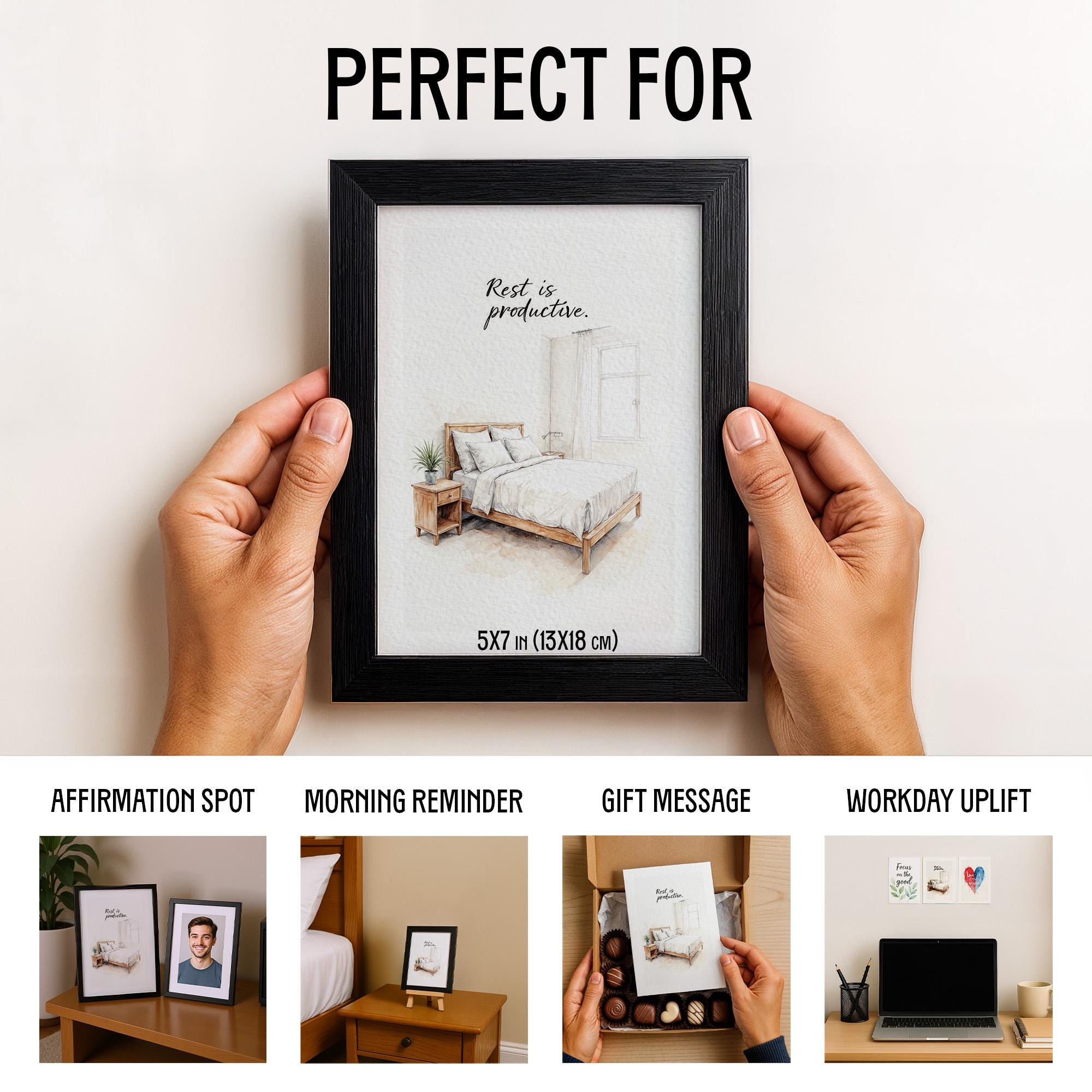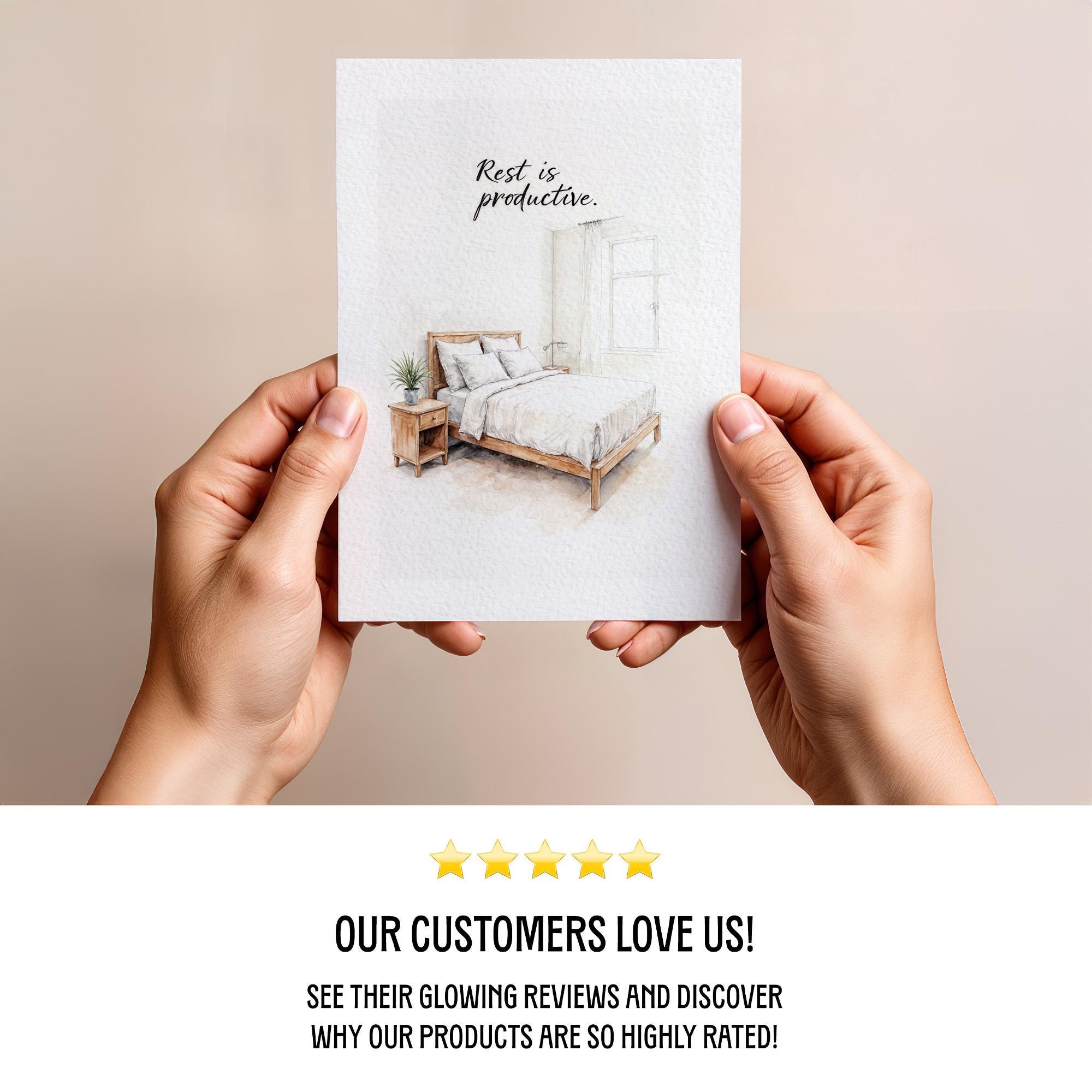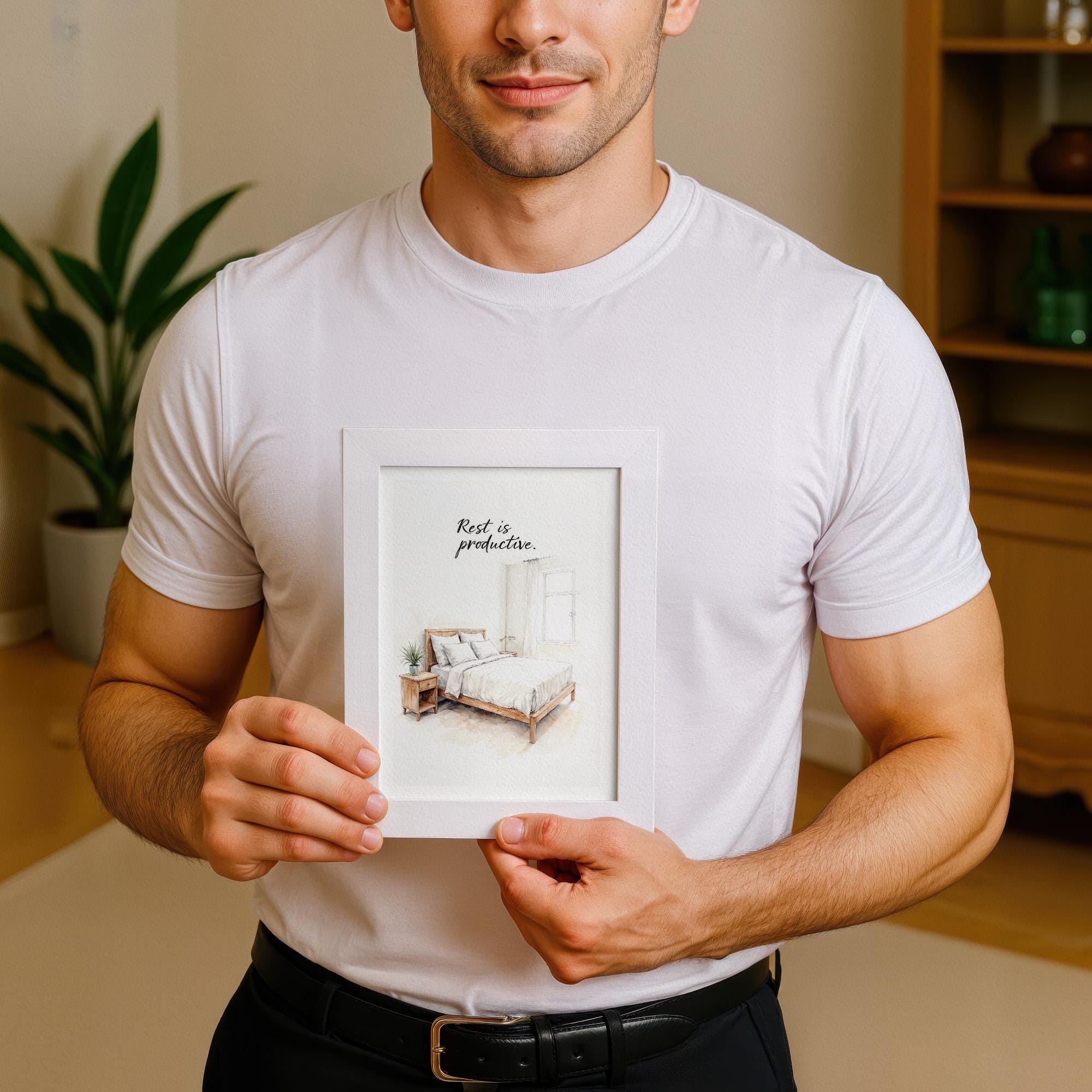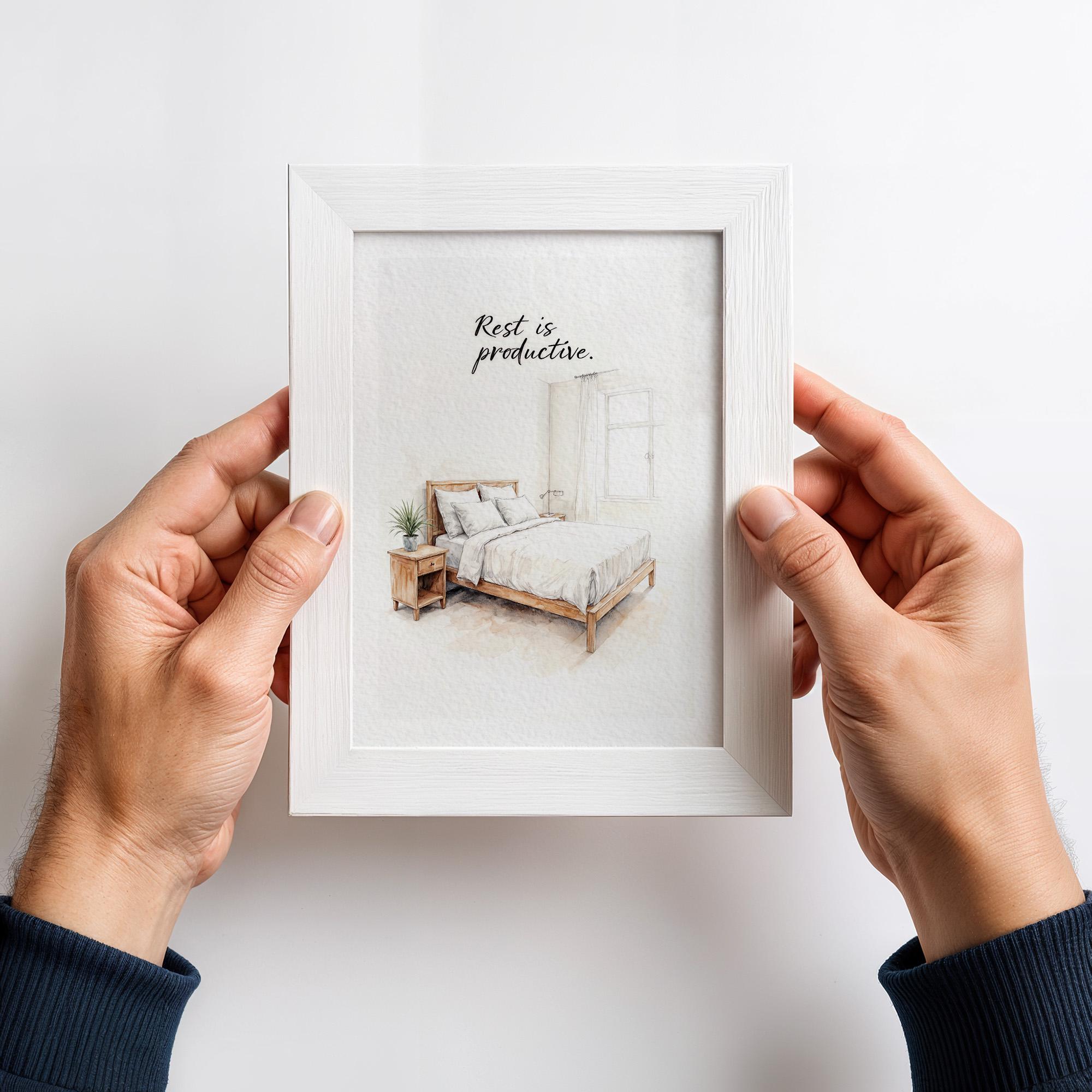 Transform your bedroom into a sanctuary of calm with this peaceful wall art featuring the empowering self care quote, "Rest is productive." This mindful living print blends soothing watercolor tones that inspire daily wellness and create an uplifting atmosphere. Perfect for those seeking healing sleep decor, it gently encourages you to embrace rest as an essential part of your self-care routine.