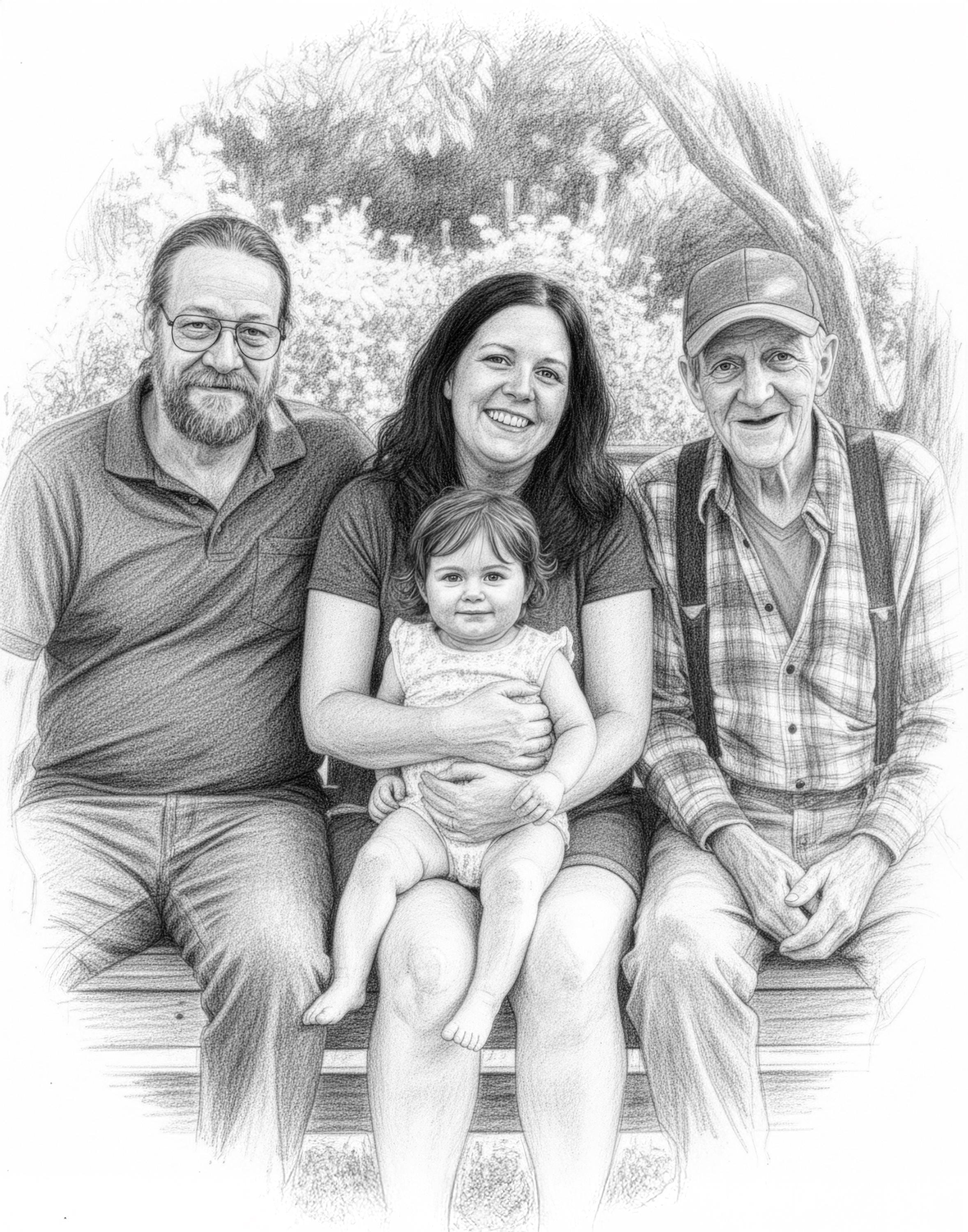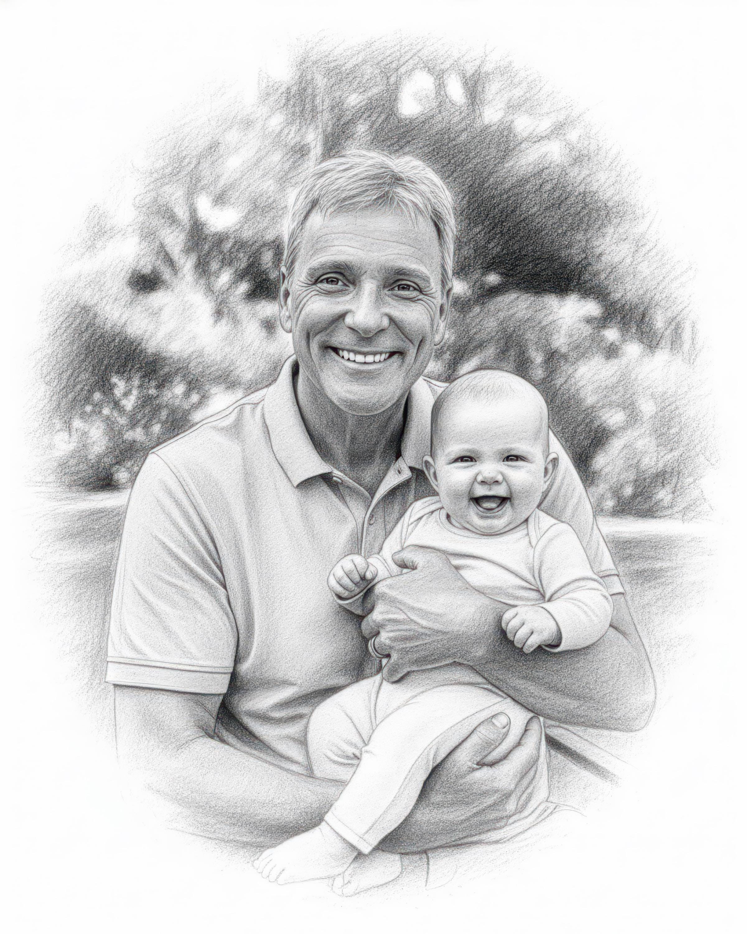 Celebrate the timeless bond between grandparent and baby with this heartfelt photo merge keepsake, designed to capture warmth and memories in a unique digital art download. This personalized portrait blends your chosen photos into a beautiful black and white pencil drawing style, evoking a sense of nostalgia and love. Perfect as a family keepsake or memorial tribute art, each piece is crafted with care to honor those special connections.