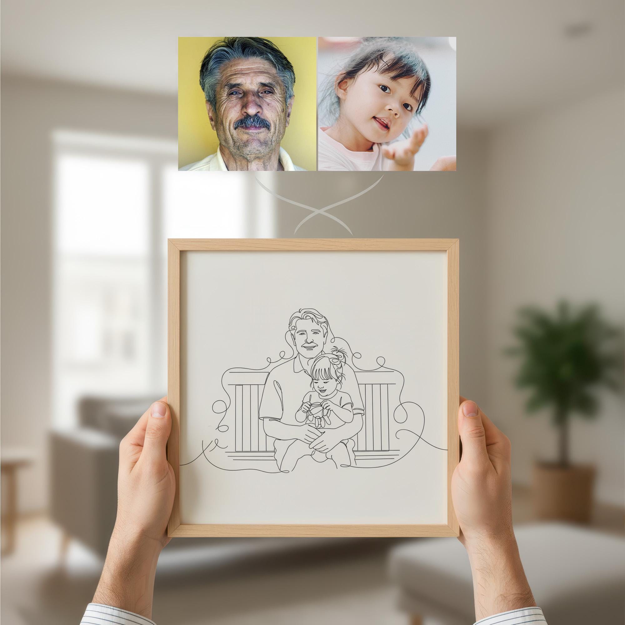 Celebrate the enduring bond between generations with this custom one line portrait, a heartfelt tribute that beautifully blends grandparent art and minimalist drawing into a timeless keepsake. Inspired by the delicate connection shared between grandparents and grandchildren, this digital portrait captures their love in a simple yet deeply emotional style. Perfect as a memorial gift or family keepsake, it transforms your cherished photos into elegant custom line art that honors your loved ones.