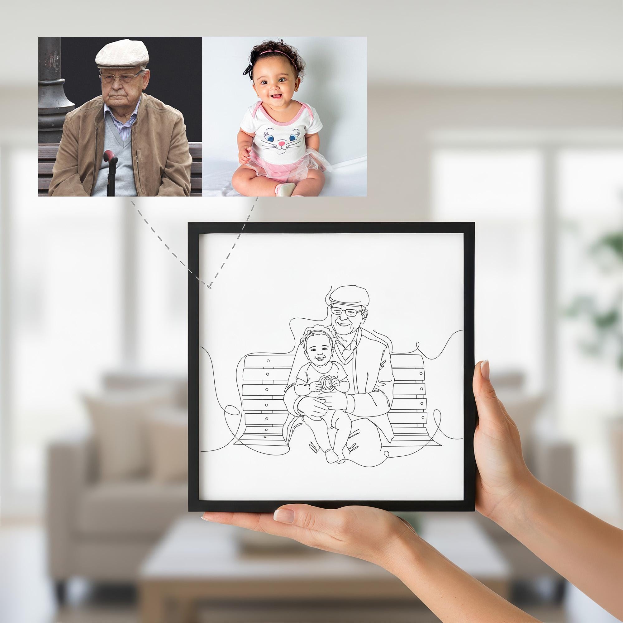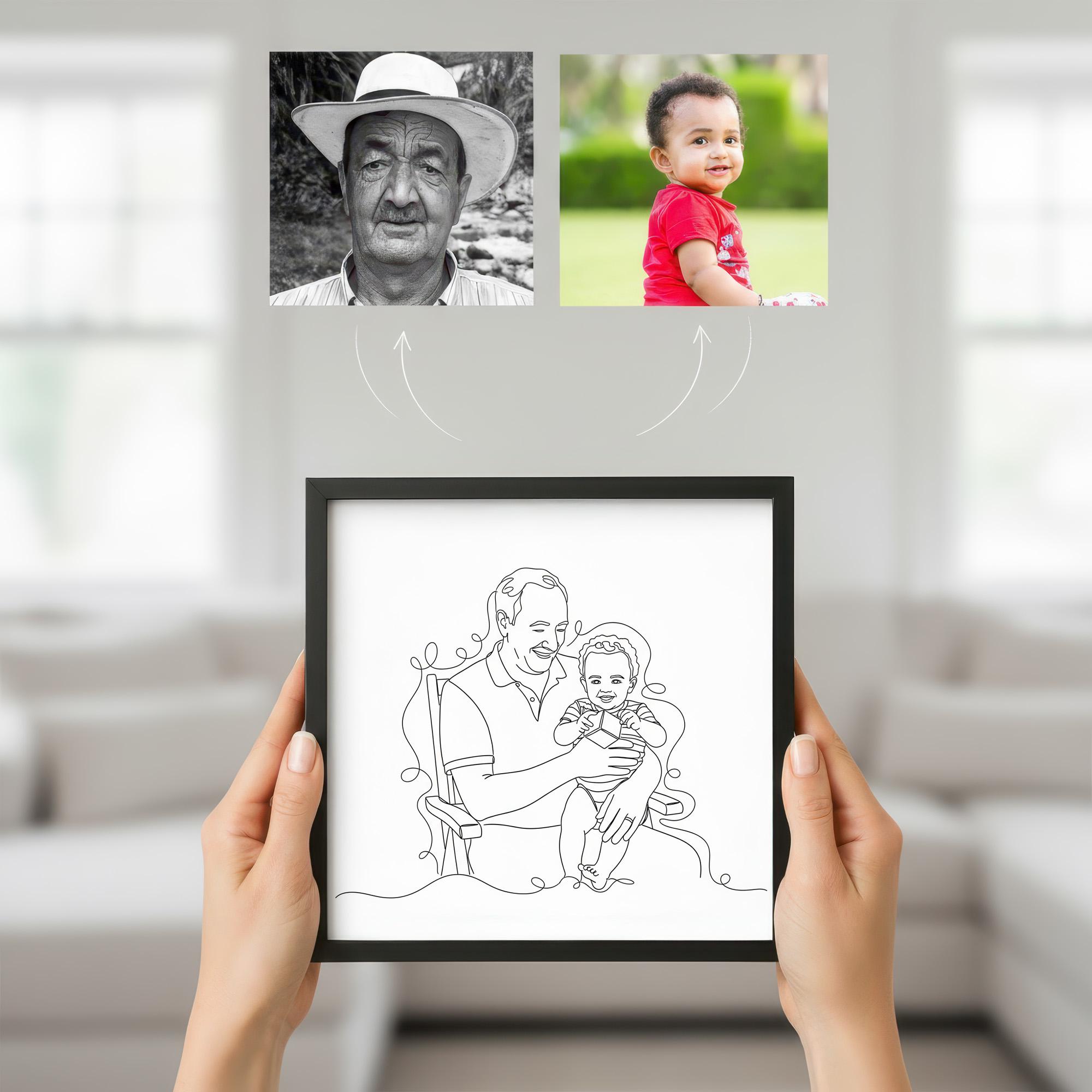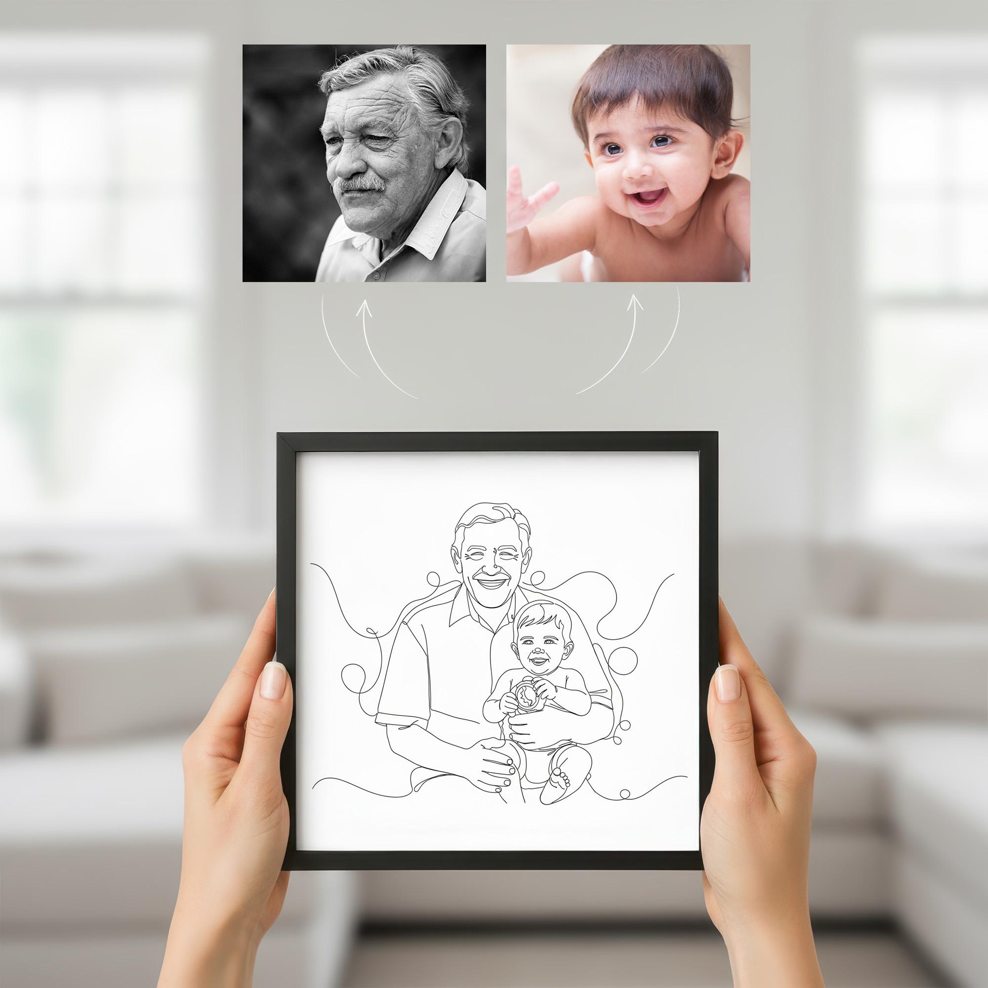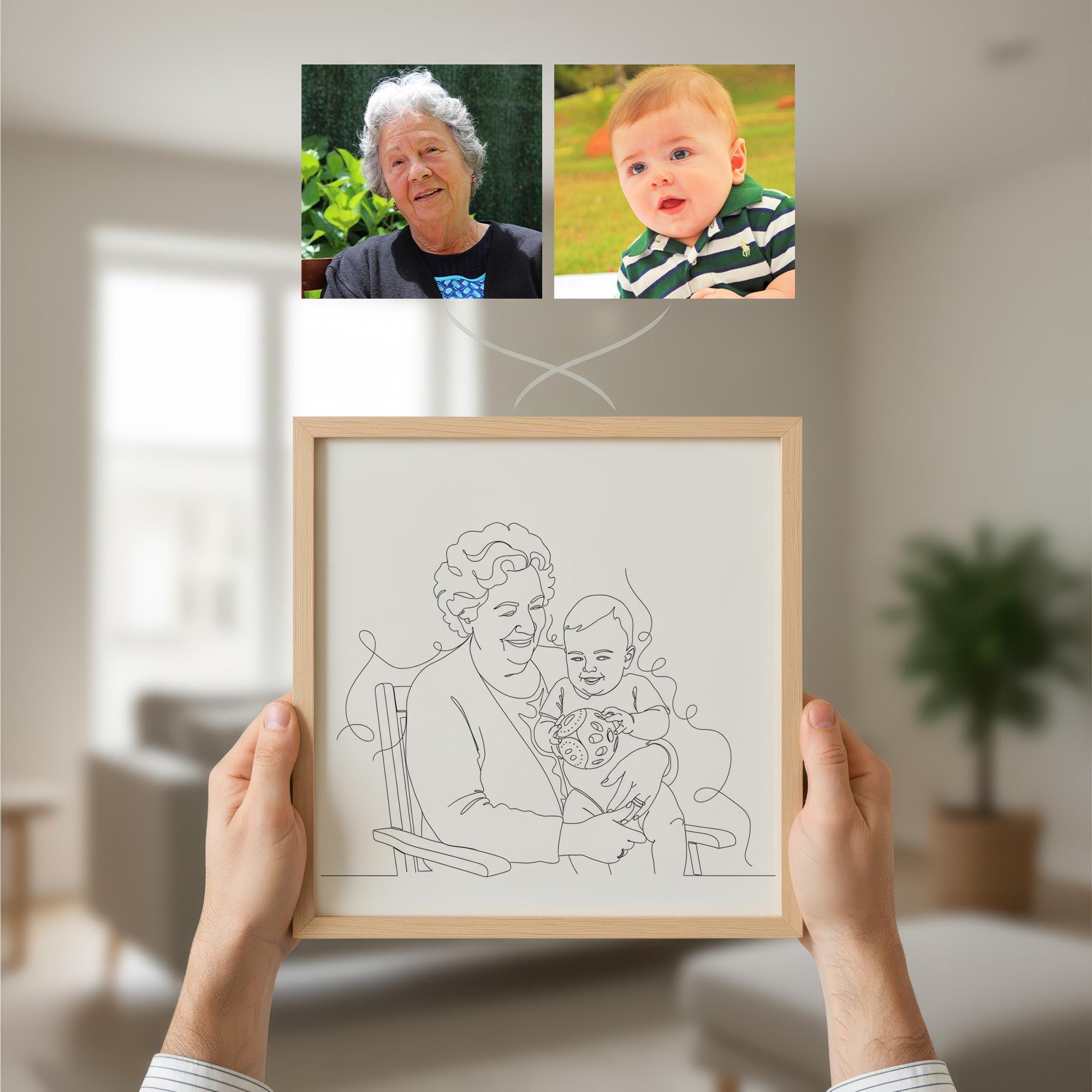 Celebrate the enduring bond between generations with this exquisite custom line art, thoughtfully designed as a memorial gift or family keepsake. This minimalist drawing captures the heartfelt connection between grandparent and grandchild in a timeless digital portrait, blending simplicity with deep emotion. Perfect for honoring loved ones, this digital artwork brings together the essence of remembrance art, grandparent art, and custom line art in one elegant piece.