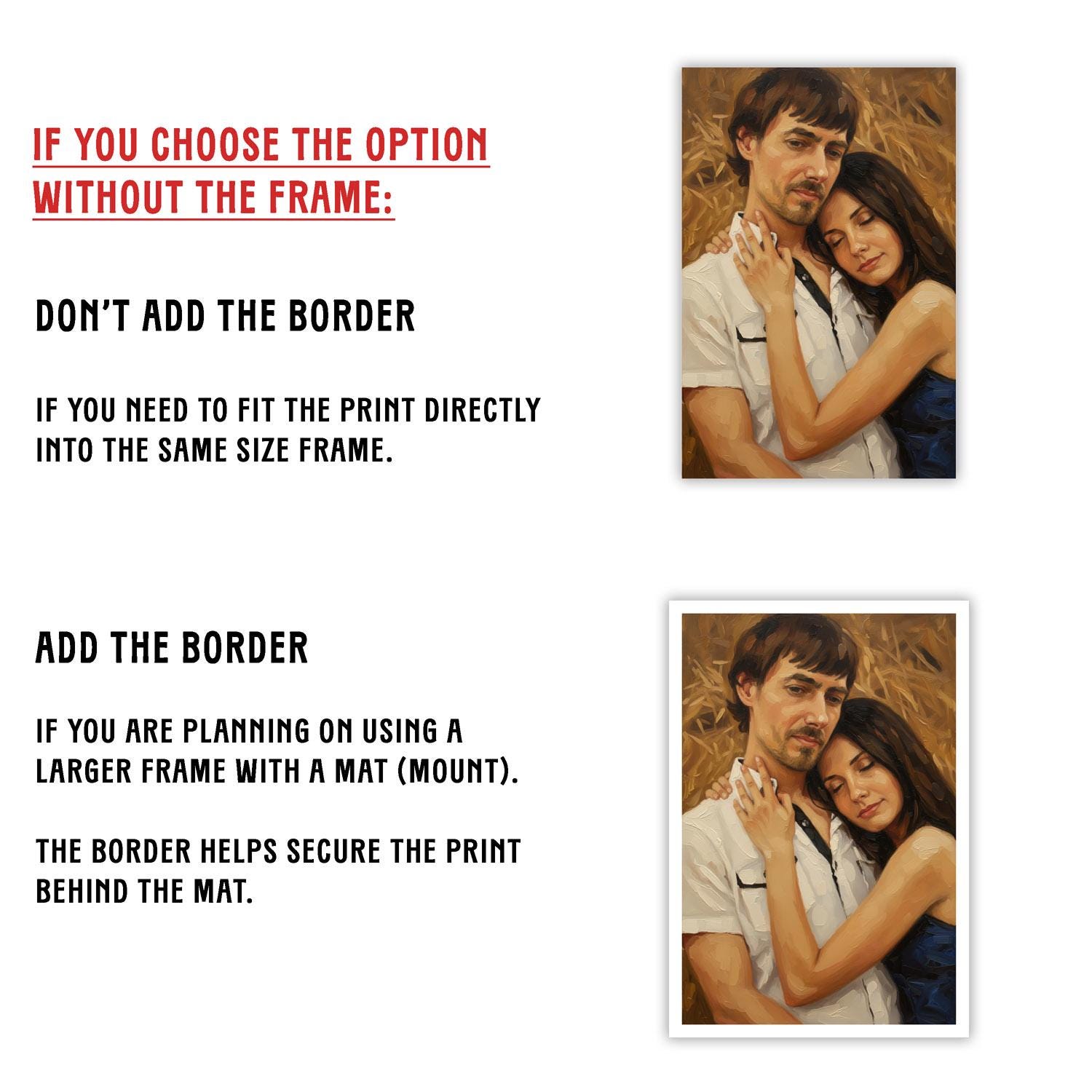 โ Select the size and frame, and share your vision for the mood, colors, or scene in the personalization box. Alternatively, you can give me complete artistic freedom to interpret your photo.