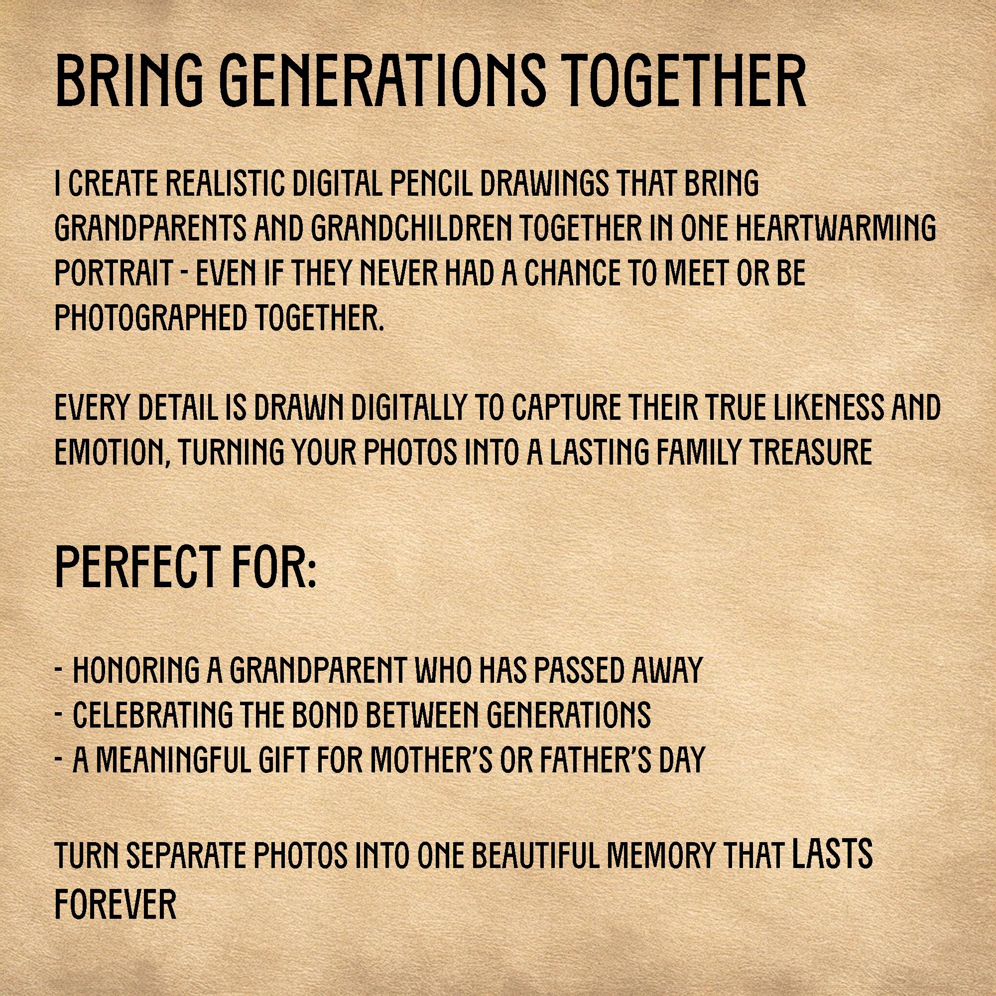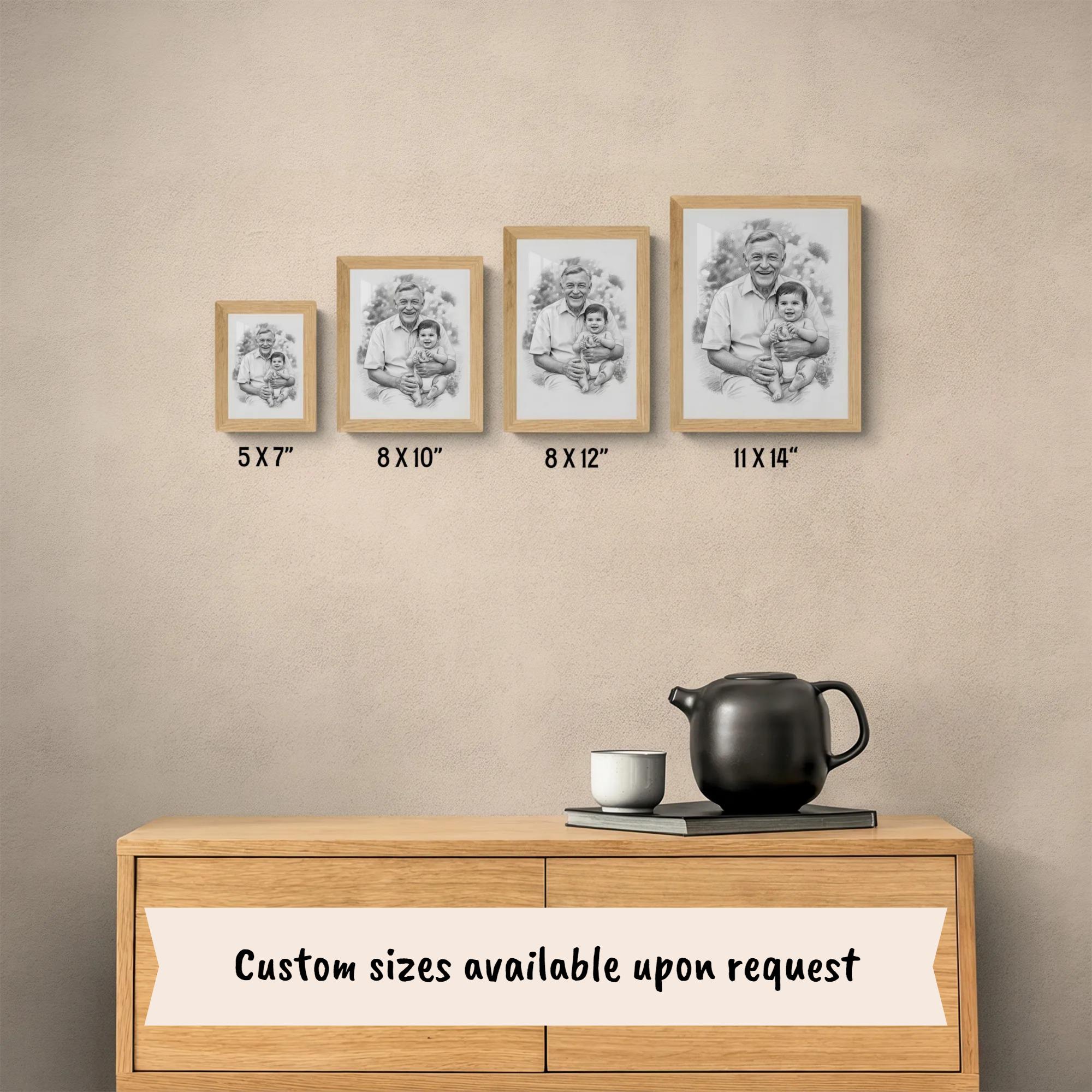 Thereโs something deeply moving about capturing the special connection between grandparent and grandchild, and this custom pencil print transforms your cherished photos into a timeless family memorial gift. Each delicate digital sketch is crafted to celebrate generations, making it a perfect heritage wall decor that honors love and legacy. Inspired by heartfelt moments, this pencil art print brings warmth and elegance to any home.