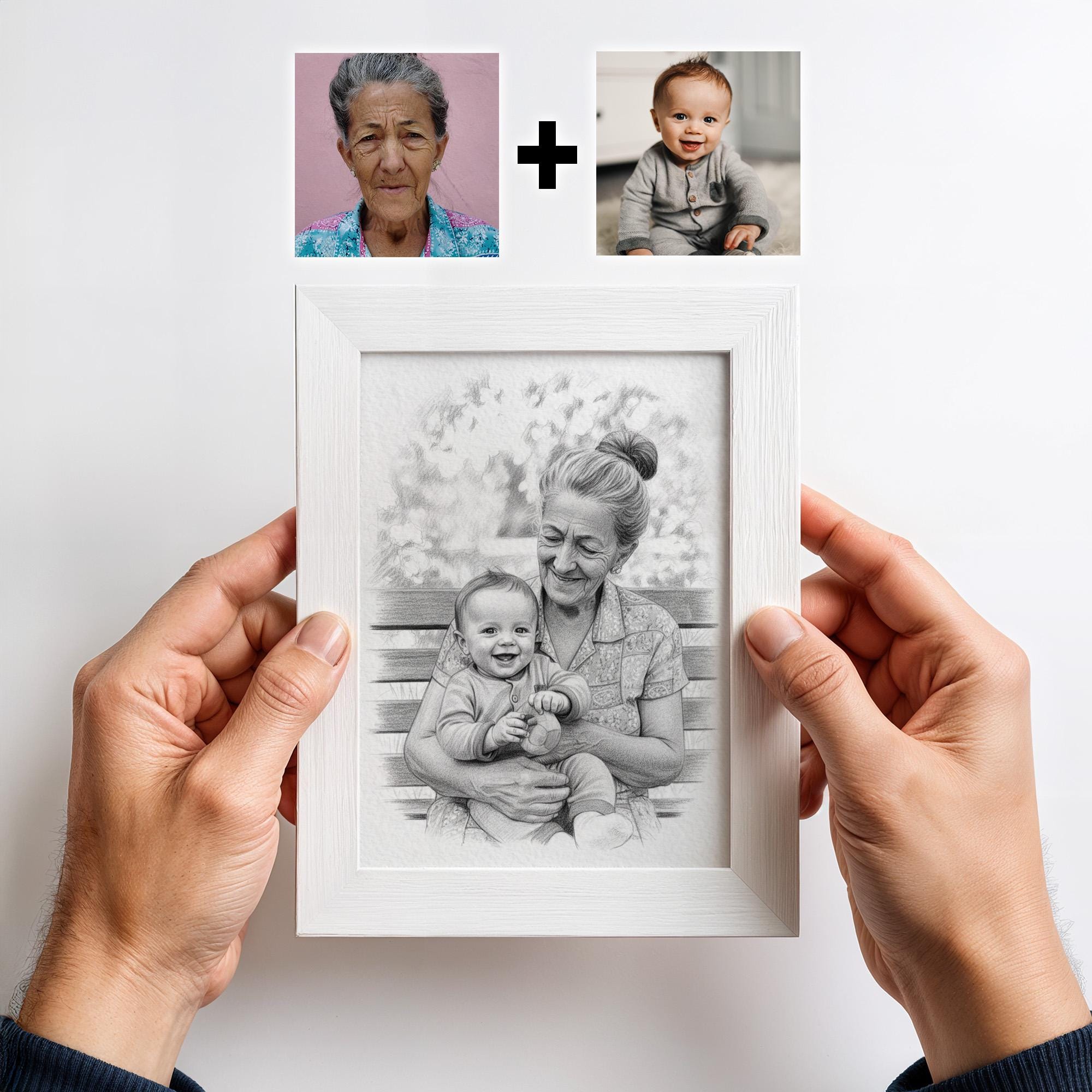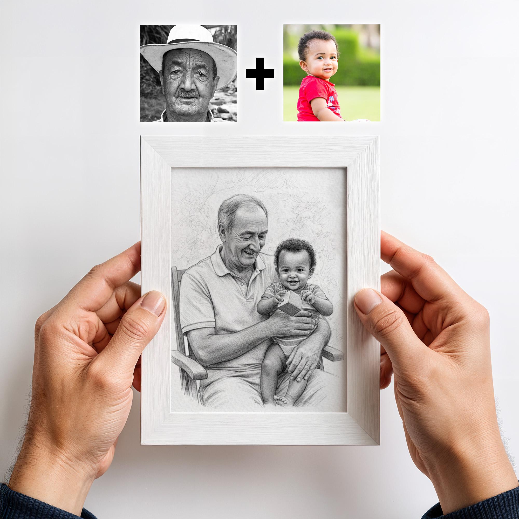 Capturing the timeless bond between grandparent and grandchild is a heartfelt journey, and this custom pencil art print brings that connection to life with delicate precision. Inspired by cherished family moments, each digital sketch transforms your photos into a seamless tribute, perfect as a family memorial gift or a unique heritage wall decor. This elegant piece celebrates generations with a blend of artistry and emotion that makes every glance meaningful.