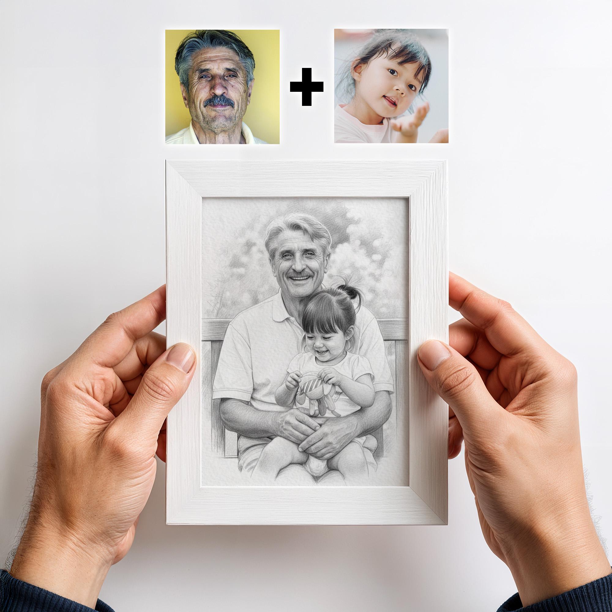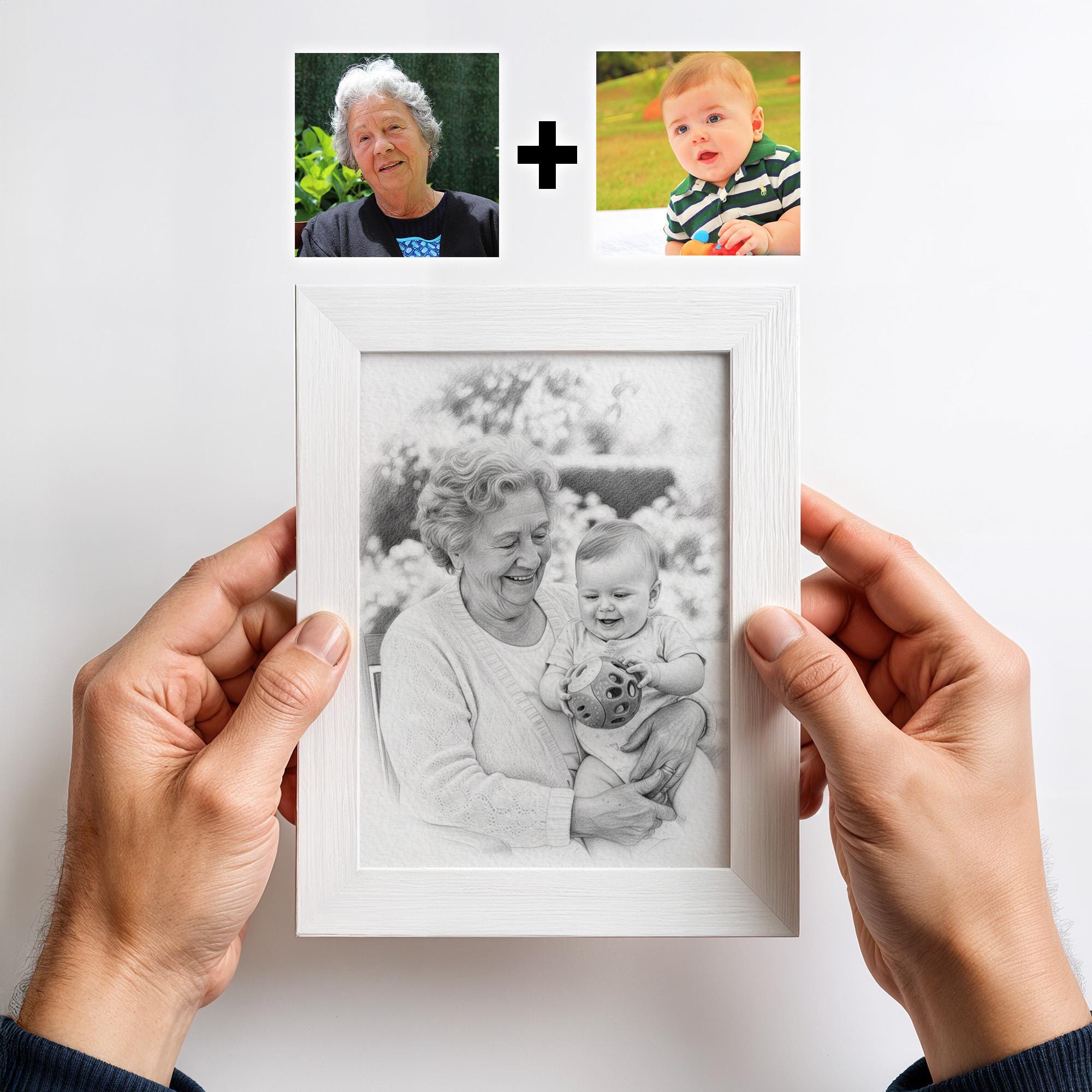 Capturing the timeless bond between generations, this custom family gift transforms your cherished photos into a stunning pencil style art print. Each piece is crafted on thick museum quality paper, ensuring your heritage memory art stands the test of time. Whether honoring a beloved grandparent or celebrating a special occasion, this 5x7 inch print framed elegantly makes a heartfelt keepsake.